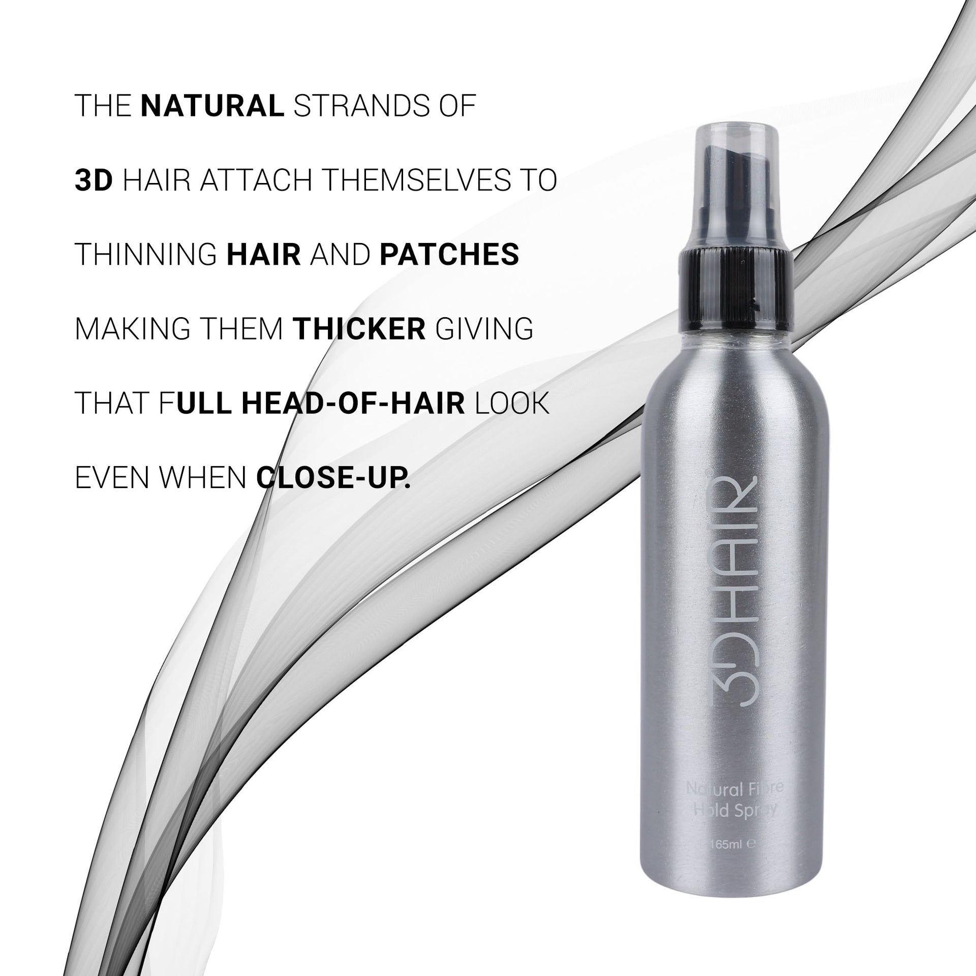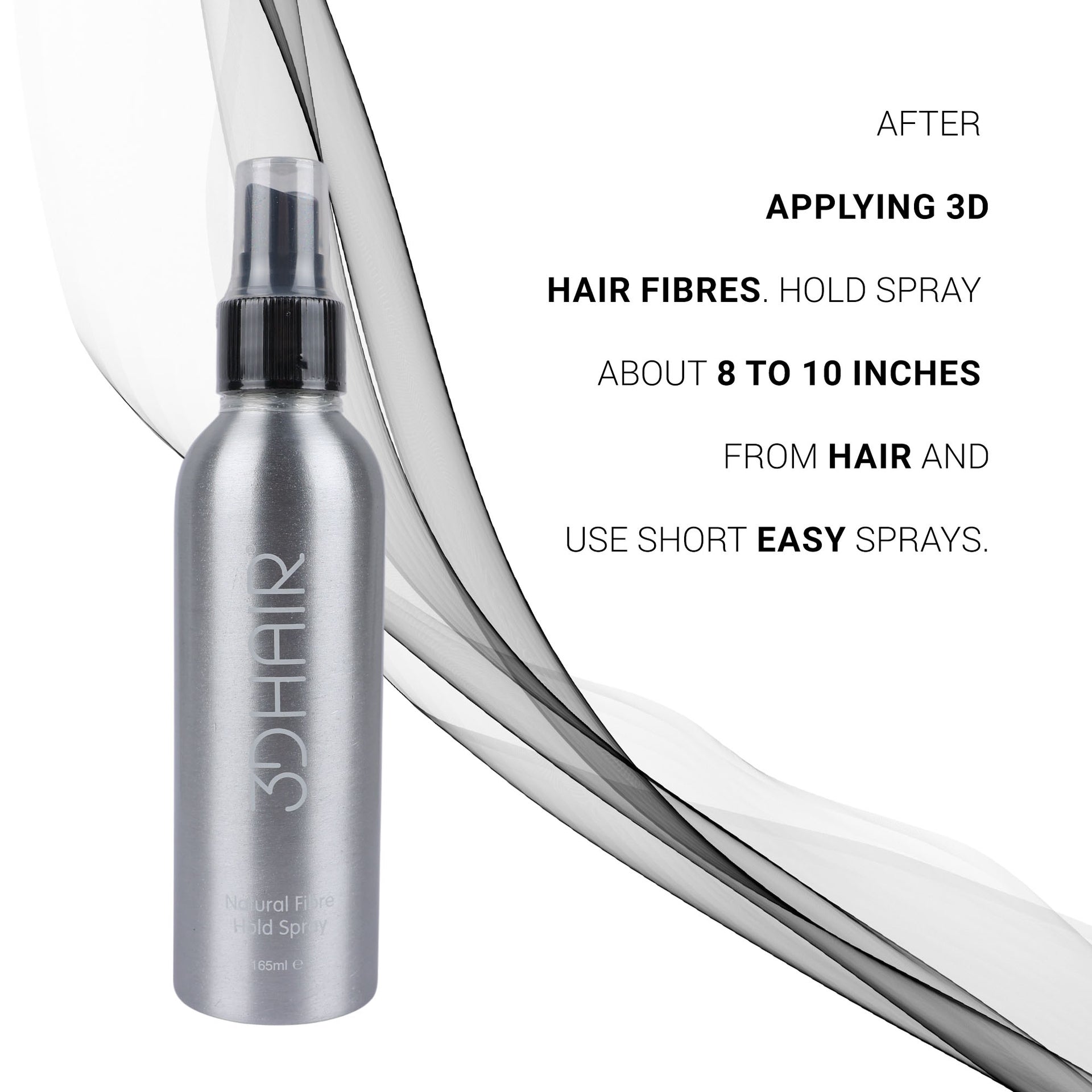 Spray evenly over the areas where 3D Hair Fibres have been applied. Allow to dry for maximum hold.