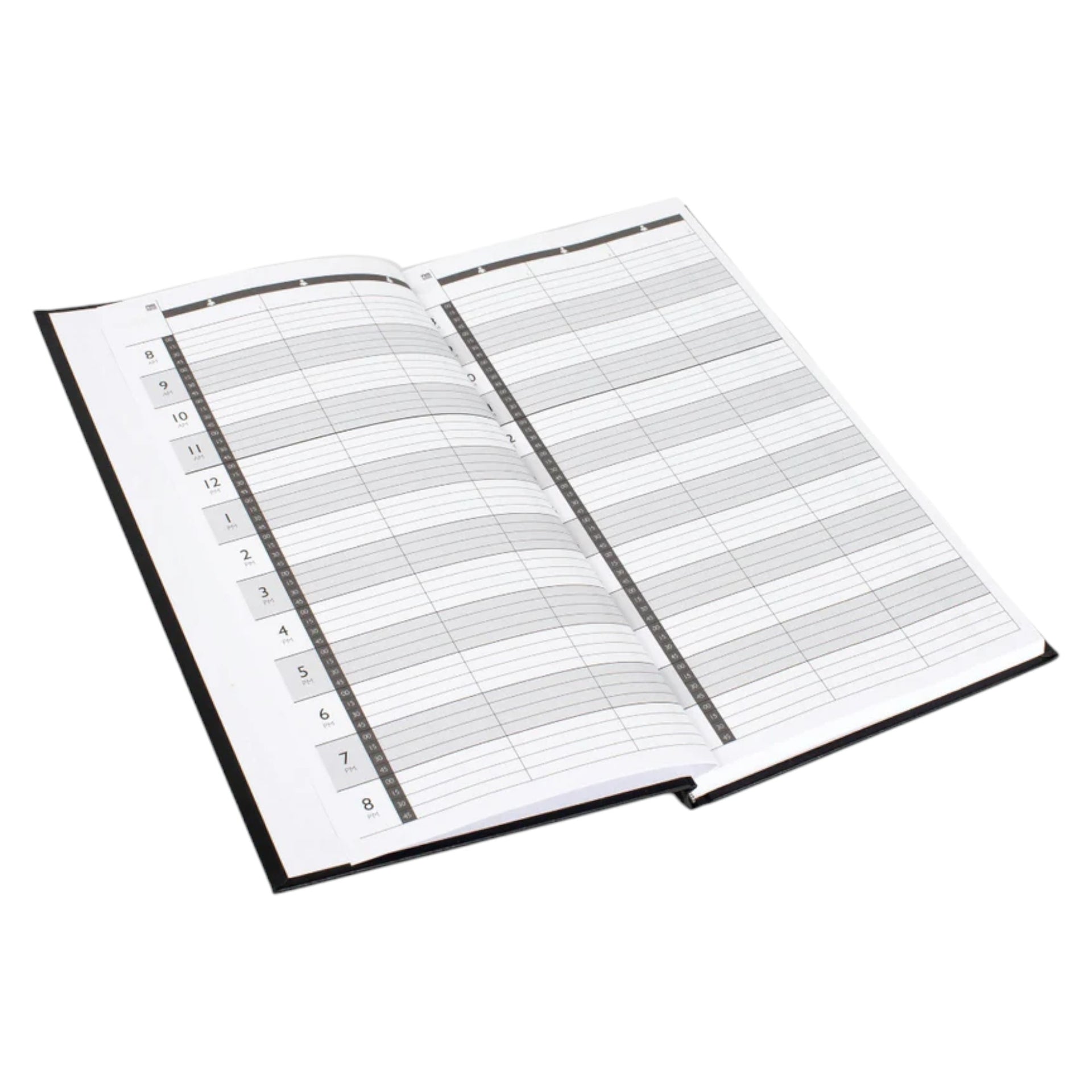 - Provides a generous one full page per day format with ample writing space for client details and service notes.