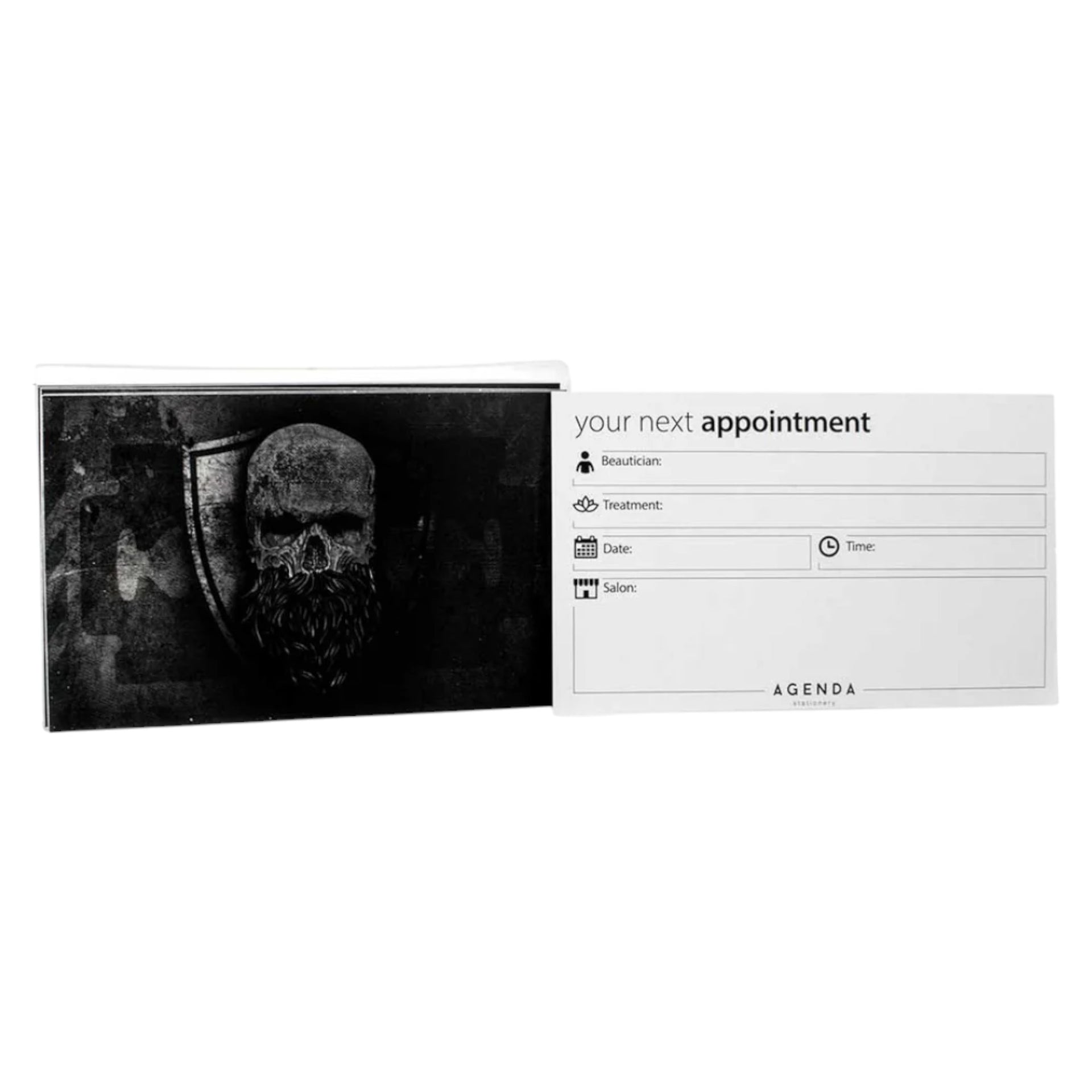 Available in two distinct designs tailored to specific business types, the Massage variant displays a serene image of a client receiving a back massage, evoking feelings of relaxation and wellbeing perfect for spas and therapy centres. The Barber option features a bold, contemporary skull design that appeals to traditional and modern barbershops seeking to project a distinctive character. Each pack contains 100 premium quality cards that maintain their appearance even after being carried in wallets or bags for extended periods. The cards arrive presented in a clear plastic storage box that not only protects them from damage but also provides convenient organisation at your reception desk, allowing for easy access during client check-out. Beyond their practical purpose of reducing missed appointments, these thoughtfully designed cards serve as an effective marketing tool, subtly promoting your business and services with every glance.