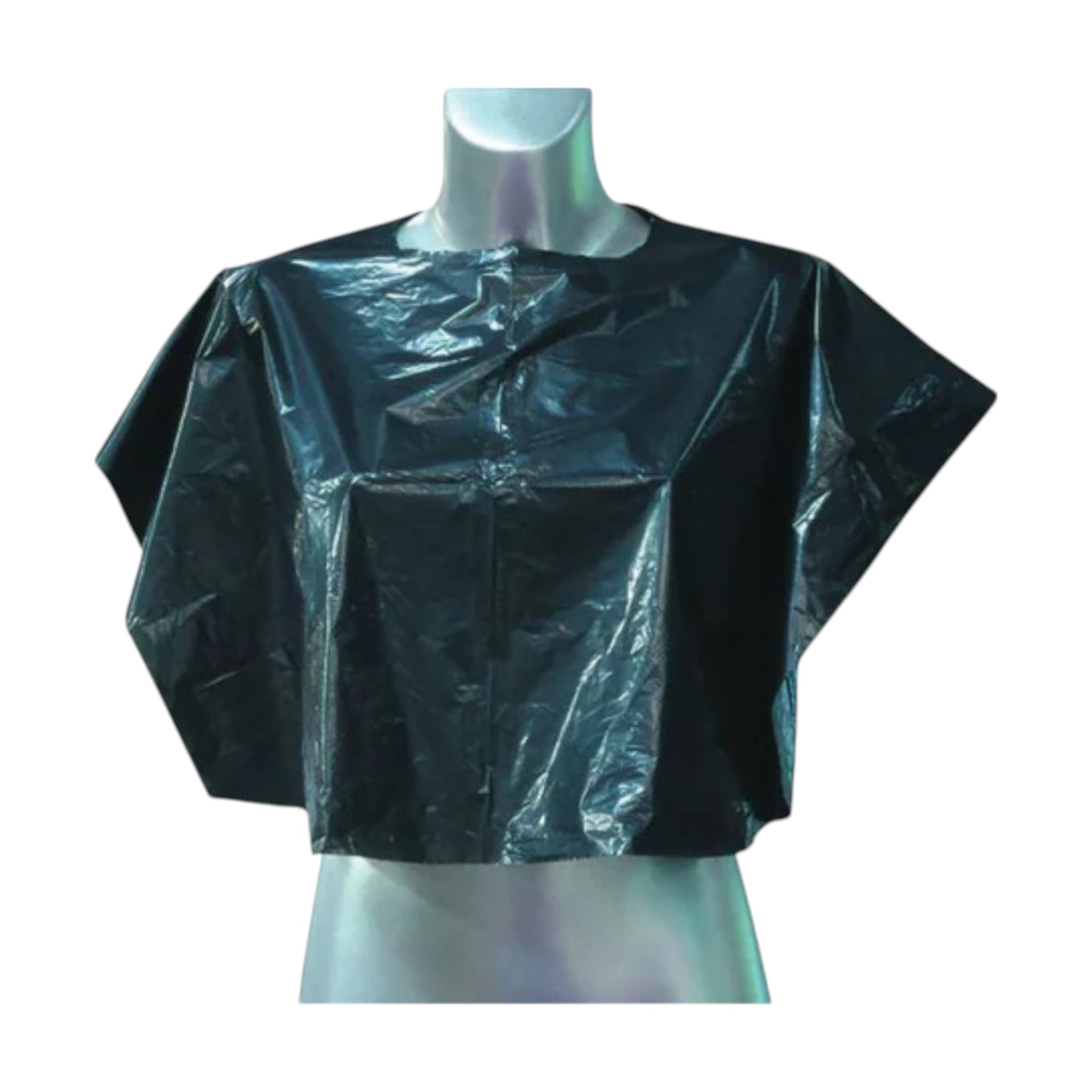 Ensure cape is properly positioned before beginning chemical services to prevent skin contact with potentially irritating products. Not suitable for clients with known allergies to polyethylene materials. Please review salon safety protocols before use.
