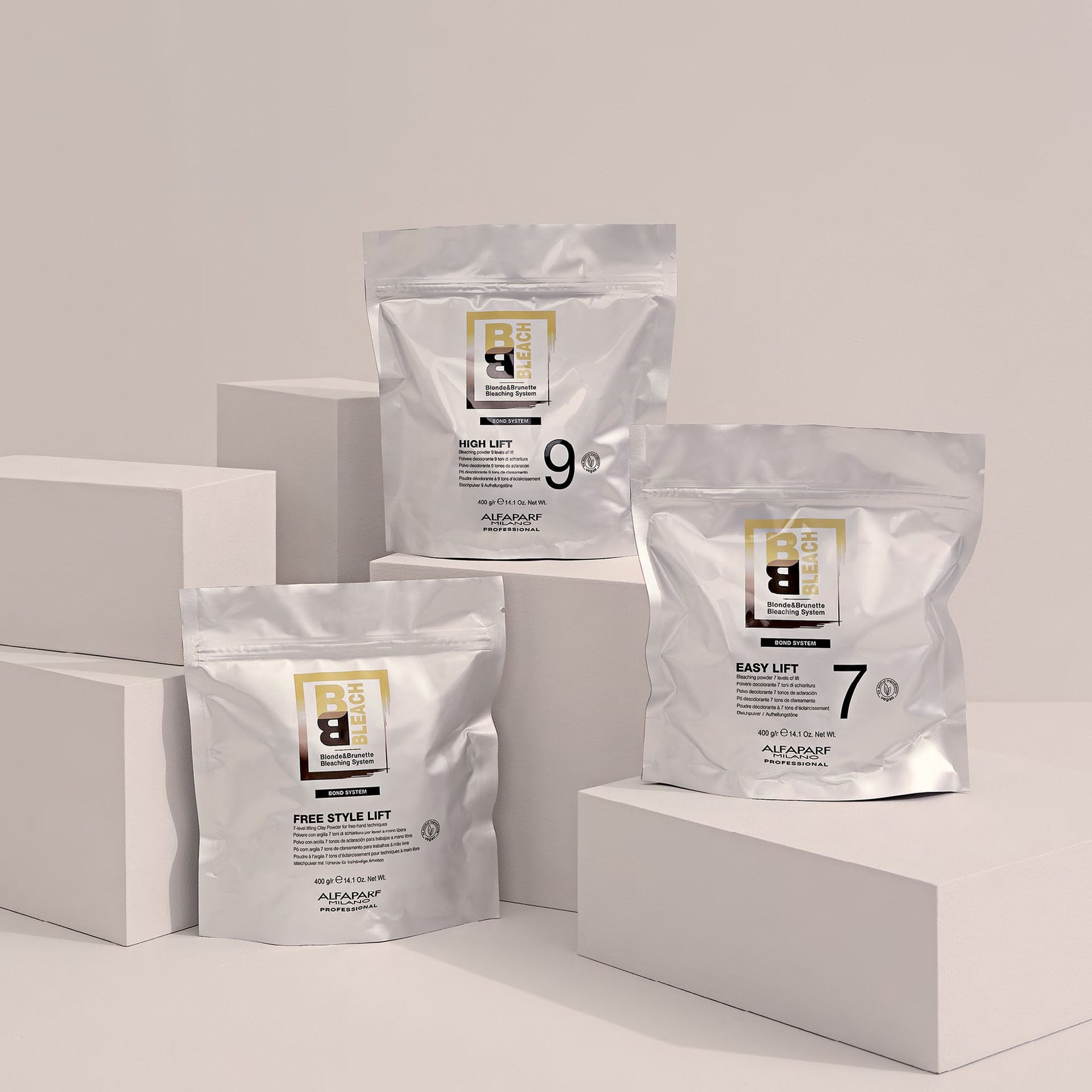 Alfaparf - BB Bleach Free Style Lift 400g allows you to unleash your creativity with professional-level precision for freehand bleaching techniques. This advanced bleach powder is easy to mix and apply, offering a non-drip formula that adheres to the hair and stays in place during application. The unique clay texture dries on the outside, preventing the bleach from transferring to neighbouring sections, while continuing to lift on the inside. This makes it ideal for techniques such as balayage, where precision and control are essential. With BB Bleach Free Style Lift, you can achieve uniform, natural-looking highlights without compromising the health of your hair. The gentle formula ensures that hair remains beautiful and healthy, even after the bleaching process. Available in a generous 400g size, this product is perfect for both salon professionals and those looking to achieve professional results at home.