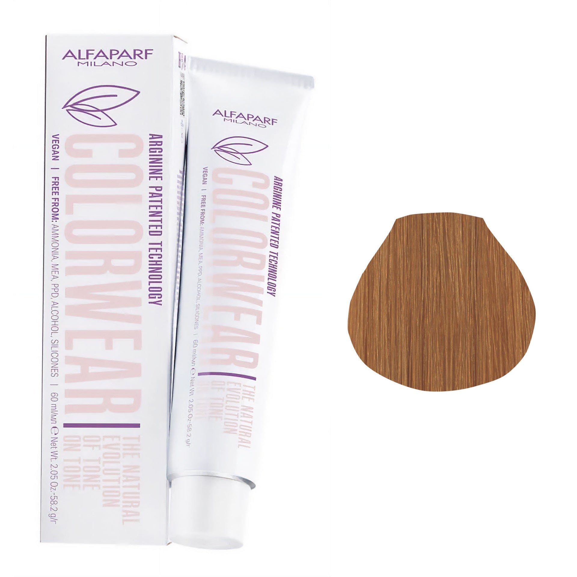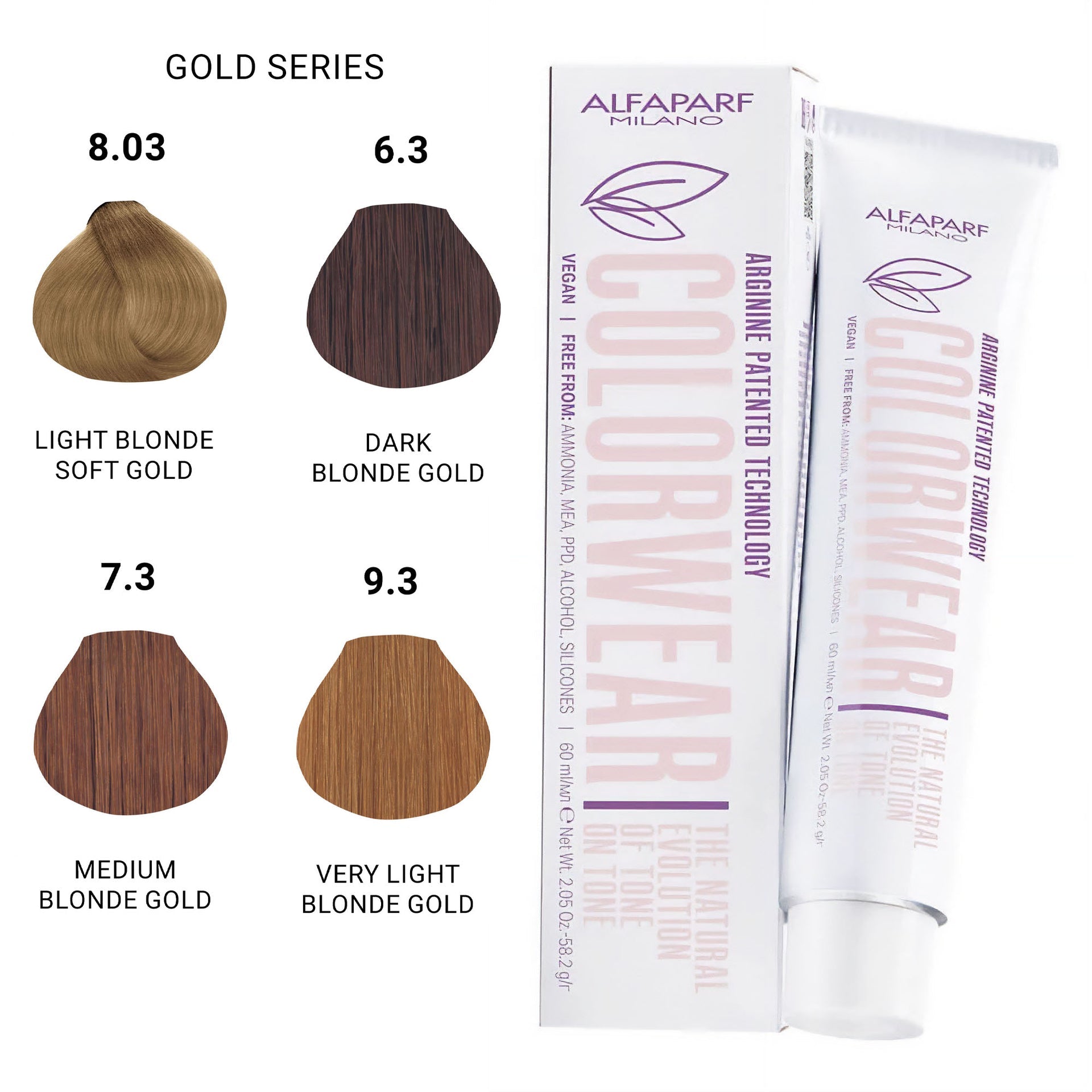 Alfaparf - Color Wear Semi Permanent Hair Colour Gold Series 60ml delivers luxurious, golden tones while providing a gentle and nourishing hair colouring experience. Featuring patented arginine technology, this innovative formula replaces traditional chemical alkalising agents with a 100% natural amino acid, closely mimicking the hair’s protein structure. Formulated without ammonia, PPD, alcohol, silicones, or MEA, this vegan product is perfect for those seeking a more natural yet effective way to colour their hair. Enriched with a blend of semi-fermented oils, it nourishes and protects the hair, while offering anti-frizz and antioxidant benefits. The Gold Series provides an exceptional shine boost of up to 149%, making your hair look brighter and healthier. With up to 38% improved hair integrity and maintaining 92% colour vibrancy after 12 washes, it ensures long-lasting, brilliant results. Hair becomes up to 11 times more manageable after six applications, making it a high-performance choice for those who value both beauty and hair health.