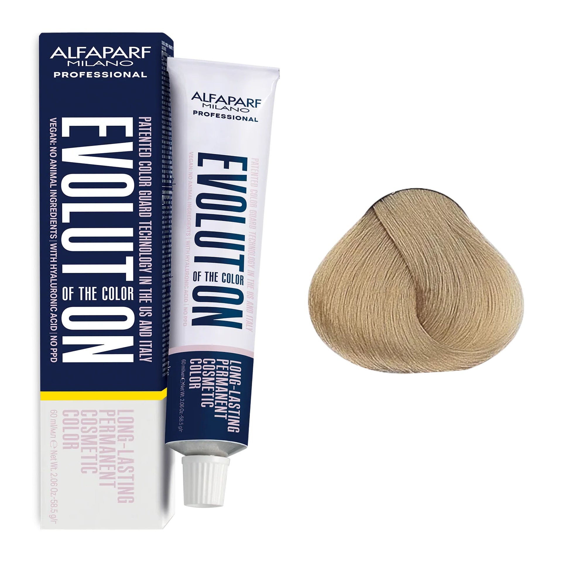 Alfaparf - Evolution of the Colour Permanent Hair Colour Beige Series 60ml is designed to deliver natural-looking, long-lasting beige tones while ensuring total scalp care. This PPD-free formula is ideal for those with sensitive scalps, offering up to 100% grey coverage and the ability to lift hair up to 3 levels. The inclusion of hyaluronic acid guarantees even colour distribution, leaving hair soft, shiny, and nourished. With a low ammonia content, it provides a more comfortable colouring experience without compromising on colour intensity or longevity. Patented Colour Guard Technology protects hair from UV rays, blue light, and pollution, ensuring your beige tones remain vibrant for longer. The vegan-friendly formula is free from animal-derived ingredients, making it a sustainable and ethical choice. Made in Italy, this professional-grade hair dye delivers salon-quality results at home.