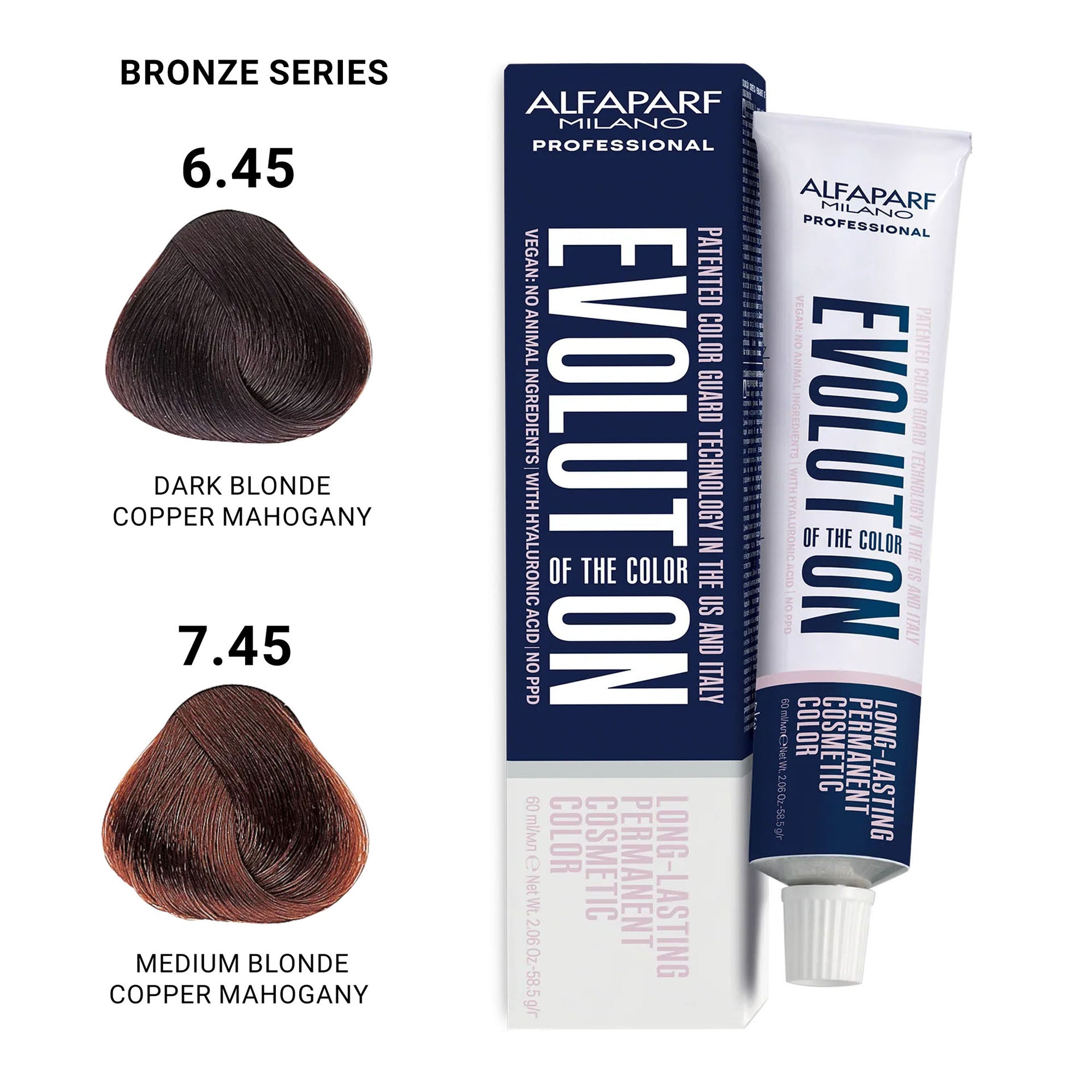 The Alfaparf Evolution of the Colour Bronze Series is perfect for those looking to achieve rich, radiant bronze shades with long-lasting shine. Its Bonding Performance technology helps maintain the strength and resilience of your hair during the colouring process. Whether you're aiming to cover greys or refresh your look, this permanent hair dye offers flawless, professional results. Ideal for both salon professionals and at-home use, it guarantees excellent colour retention with built-in UV protection to prevent fading. Suitable for all hair types, this vegan-friendly formula is perfect for those seeking a high-performance, cruelty-free hair colour solution. Experience vibrant, healthy-looking bronze hair with this advanced and innovative product from Alfaparf.