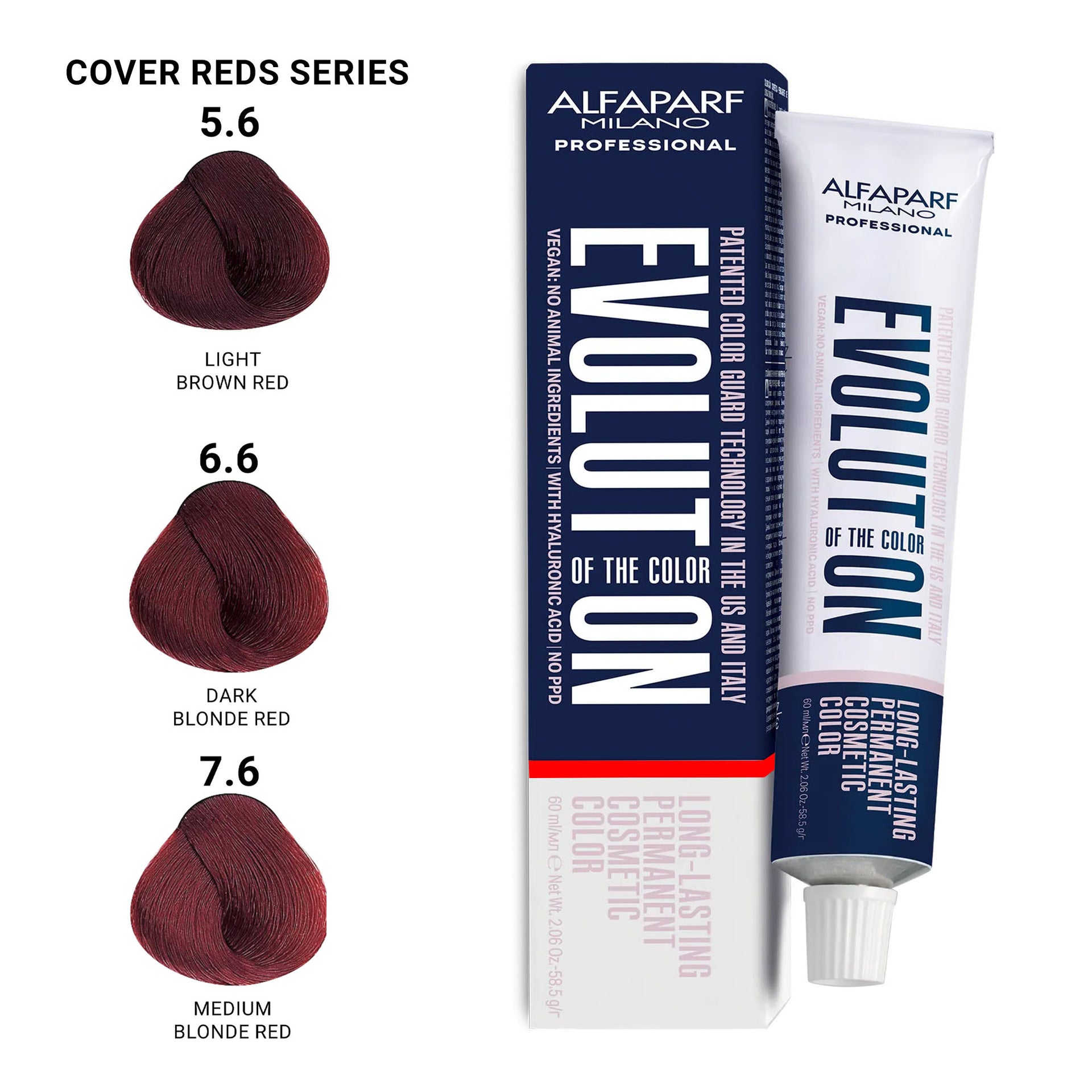 Alfaparf - Evolution of the Colour Permanent Hair Colour Cover Reds Series 60ml delivers vibrant, long-lasting red tones while providing exceptional scalp care. This PPD-free formula is perfect for sensitive scalps and offers up to 100% grey coverage, alongside the ability to lighten hair by up to 3 levels. Enriched with hyaluronic acid, it ensures even colour distribution, leaving your hair smooth, shiny, and nourished. The low ammonia content provides a more comfortable colouring experience, without sacrificing the intensity or longevity of the colour. The formula also features advanced Colour Guard Technology, which protects your hair from UV rays, pollution, and blue light, ensuring your red tones remain brilliant for longer. Additionally, this vegan-friendly product is free from animal-derived ingredients, making it a sustainable and ethical choice. Made in Italy, this professional-grade hair dye offers salon-quality results from the comfort of your home.