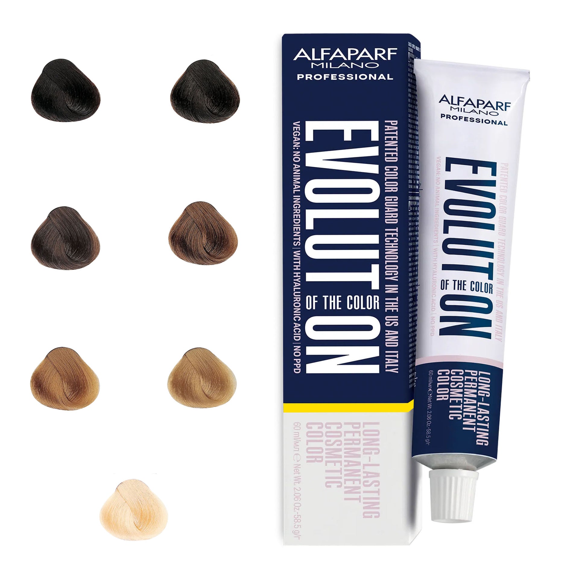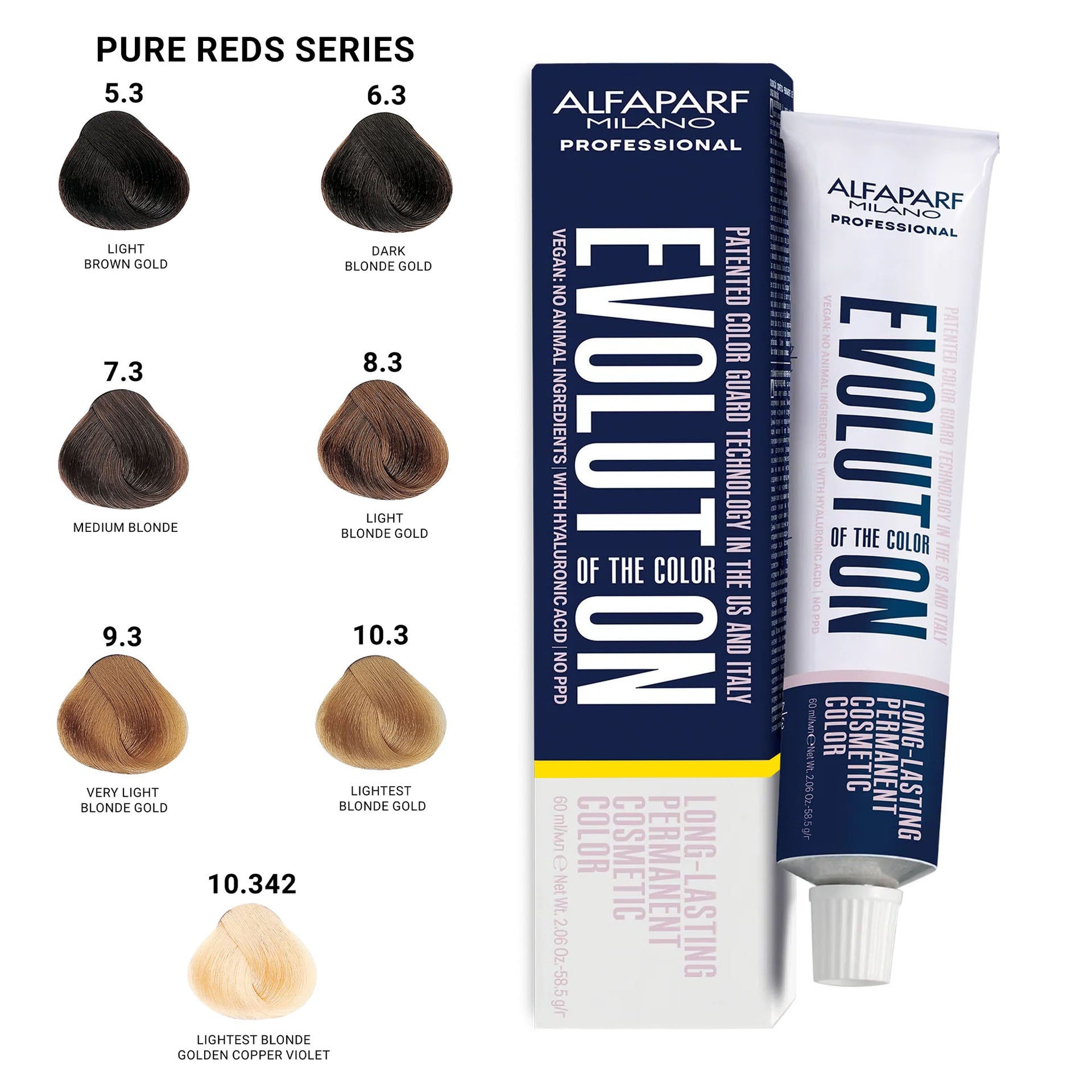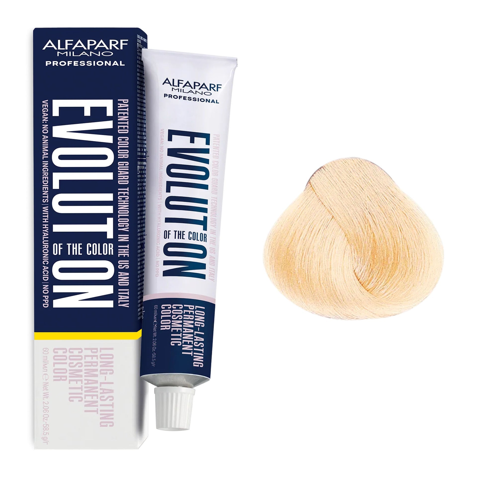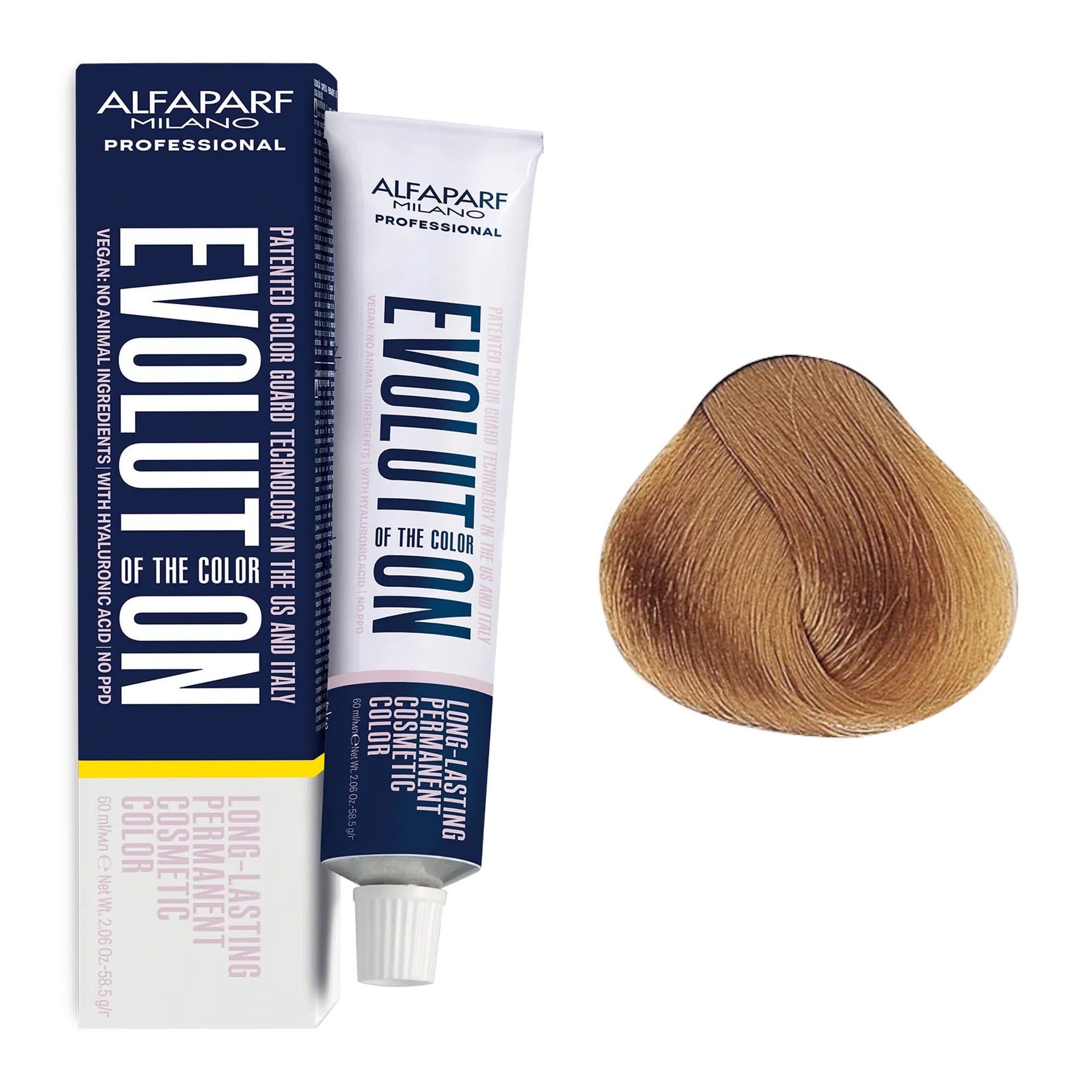Alfaparf - Evolution of the Colour Permanent Hair Colour Gold Series 60ml delivers stunning gold tones while prioritising scalp care and hair health. This PPD-free formula is perfect for sensitive scalps, providing up to 100% grey coverage while lightening the hair by up to 3 levels. With a low ammonia content, it ensures a more comfortable colouring experience without compromising vibrancy or longevity. The formula is enriched with hyaluronic acid, which ensures even distribution of colour, leaving hair smooth, shiny, and deeply nourished. Patented Colour Guard Technology offers protection against UV rays, pollution, and blue light, preserving the radiance of your gold tones for longer. Additionally, this vegan-friendly product is free from animal-derived ingredients, making it an ethical and sustainable choice. Made in Italy, this professional-grade hair dye offers salon-quality results in the comfort of your own home.