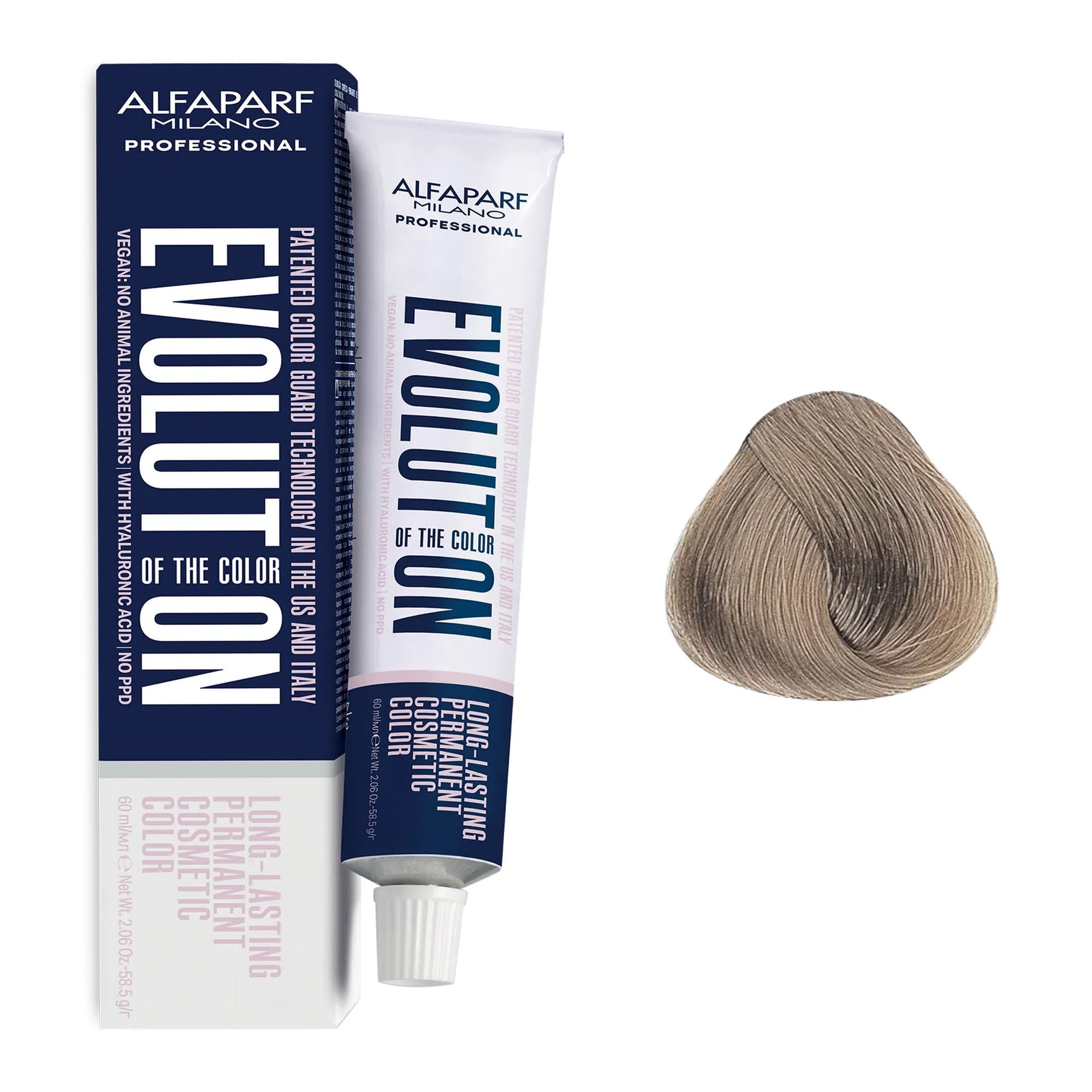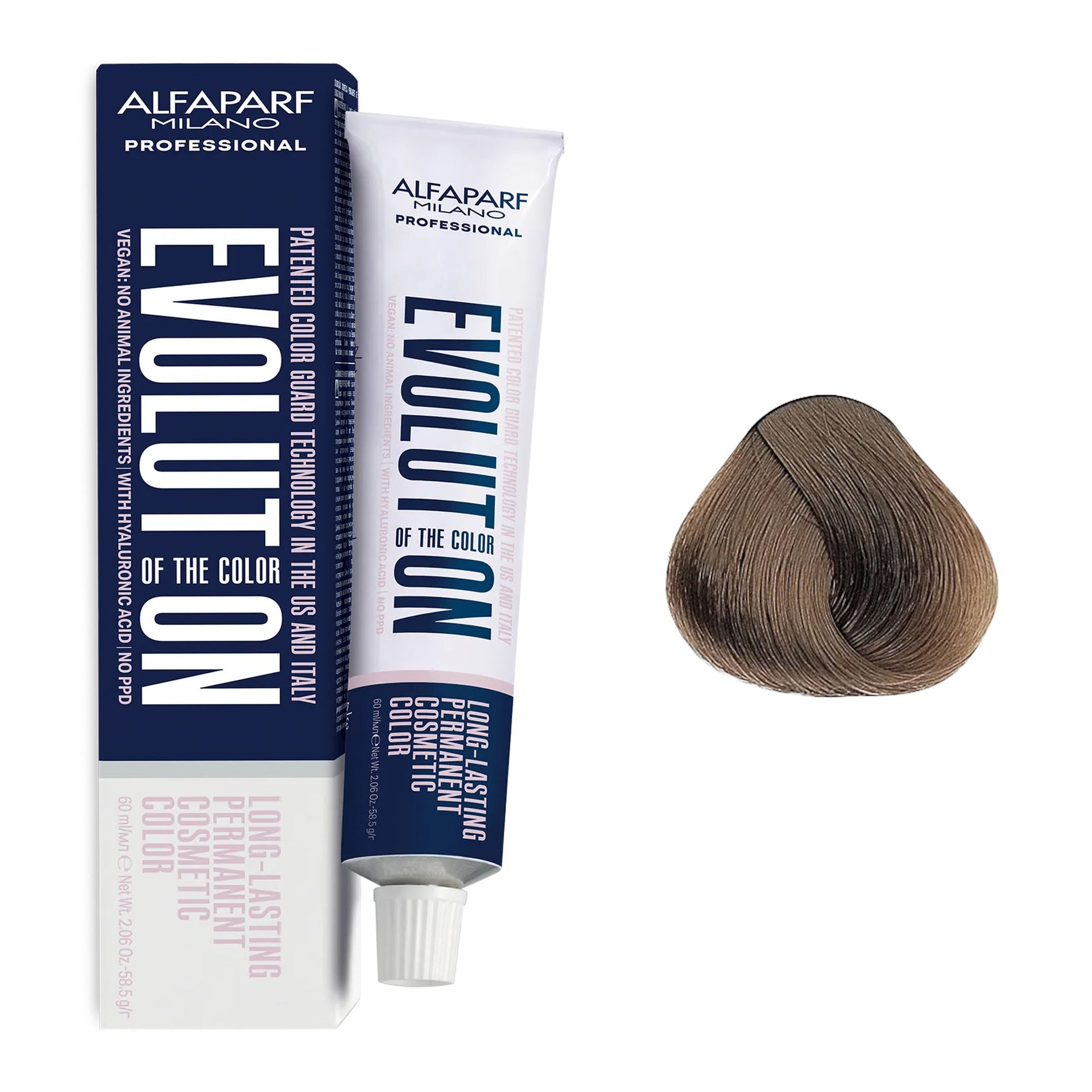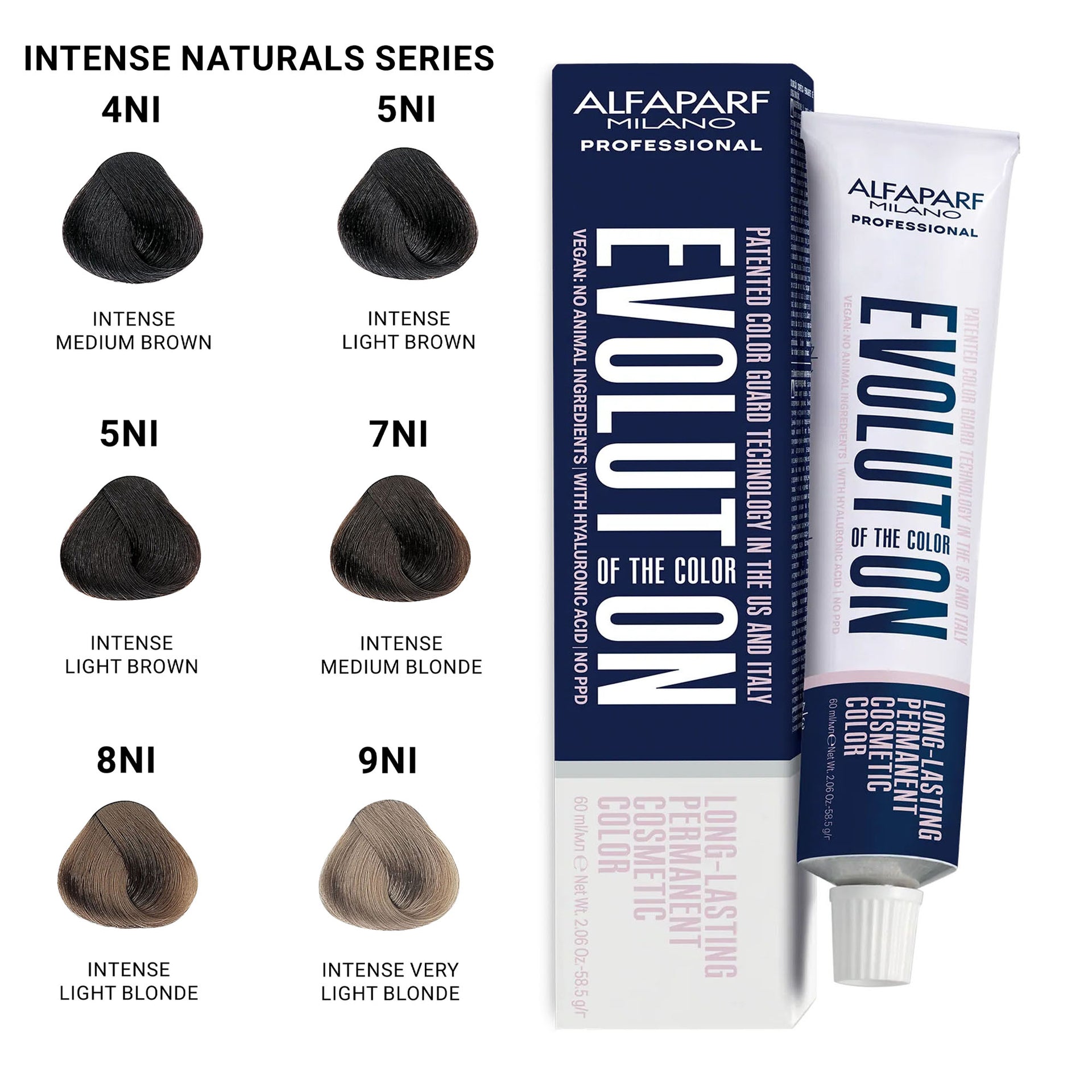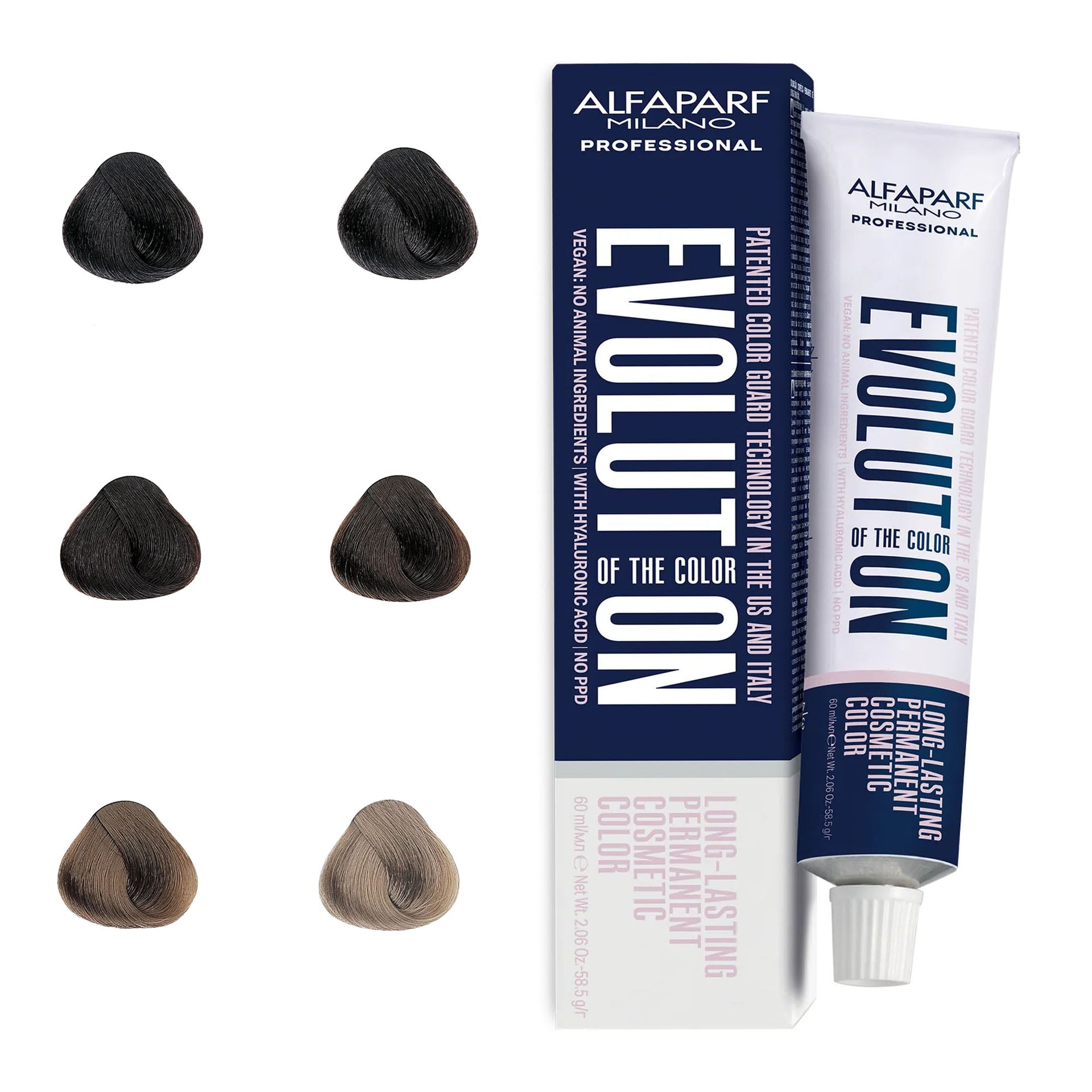 Alfaparf - Evolution of the Colour Permanent Hair Colour Intense Naturals Series 60ml delivers exceptional colour results while prioritising scalp care. This PPD-free formula is specifically designed to minimise irritation, making it ideal for those with sensitive skin. Enriched with hyaluronic acid, it ensures even colour distribution and superior adherence, leaving hair in optimal condition with a stunning, glossy finish. The low ammonia content provides vibrant, long-lasting colour without compromising the integrity of your hair. Its advanced Colour Guard Technology prevents fading while offering protection against blue light, pollution, and UV damage, ensuring your colour remains radiant over time. With up to 3 levels of lightening and 100% grey coverage, this vegan-friendly formula is suitable for all hair types and textures. Made in Italy, it exemplifies the highest standards of quality and performance.