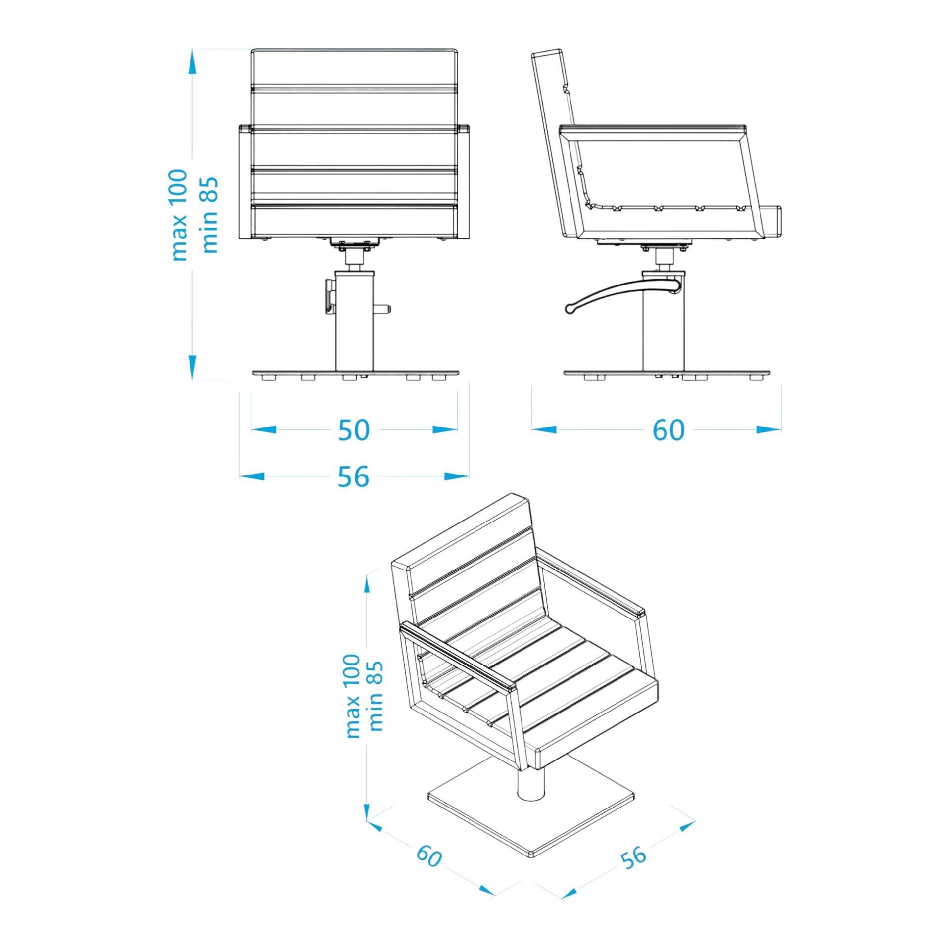- Base: Painted square hydraulic base