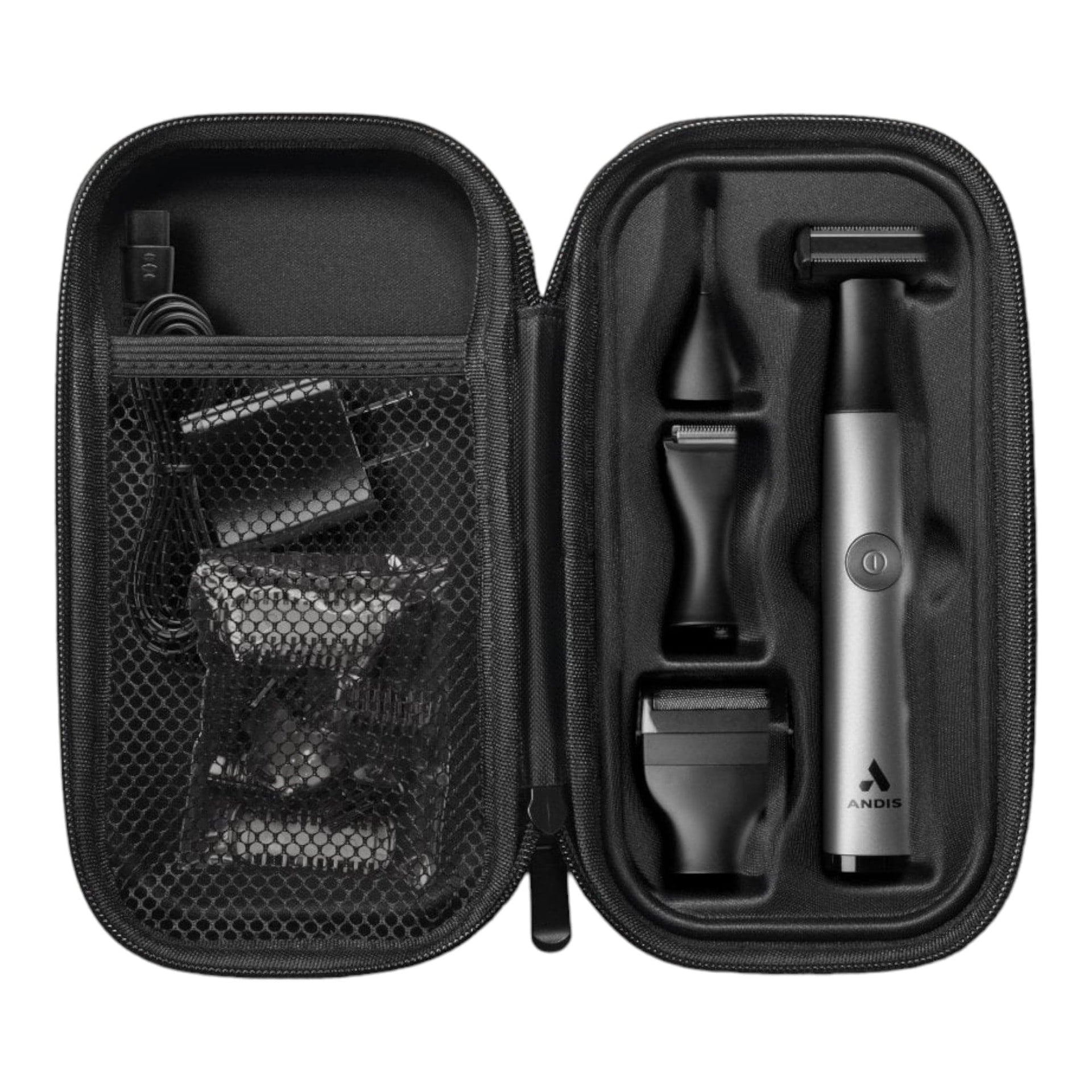 The Andis - inEDGE Lithium-ion Cordless All-in-One Trimmer Kit SBT-1 560584 is the ultimate grooming companion, designed to tackle all your trimming needs with precision and ease. Equipped with four interchangeable attachments for body, face, ear, and nose hair, this versatile tool ensures that no detail is overlooked. Powered by a lithium-ion battery, it delivers up to 60 minutes of uninterrupted cordless trimming, allowing you to groom with confidence. The wet/dry capability not only makes it convenient for use in the shower, but also ensures easy cleaning and maintenance. Despite its powerful performance, the trimmer is compact and quiet, making it ideal for both home use and travel. The custom padded storage case and travel lock add an extra layer of convenience, allowing you to keep everything organised and secure while on the go. Whether it's shaping your beard, trimming nose hair, or maintaining body grooming, the inEDGE Trimmer is designed for precision and performance.