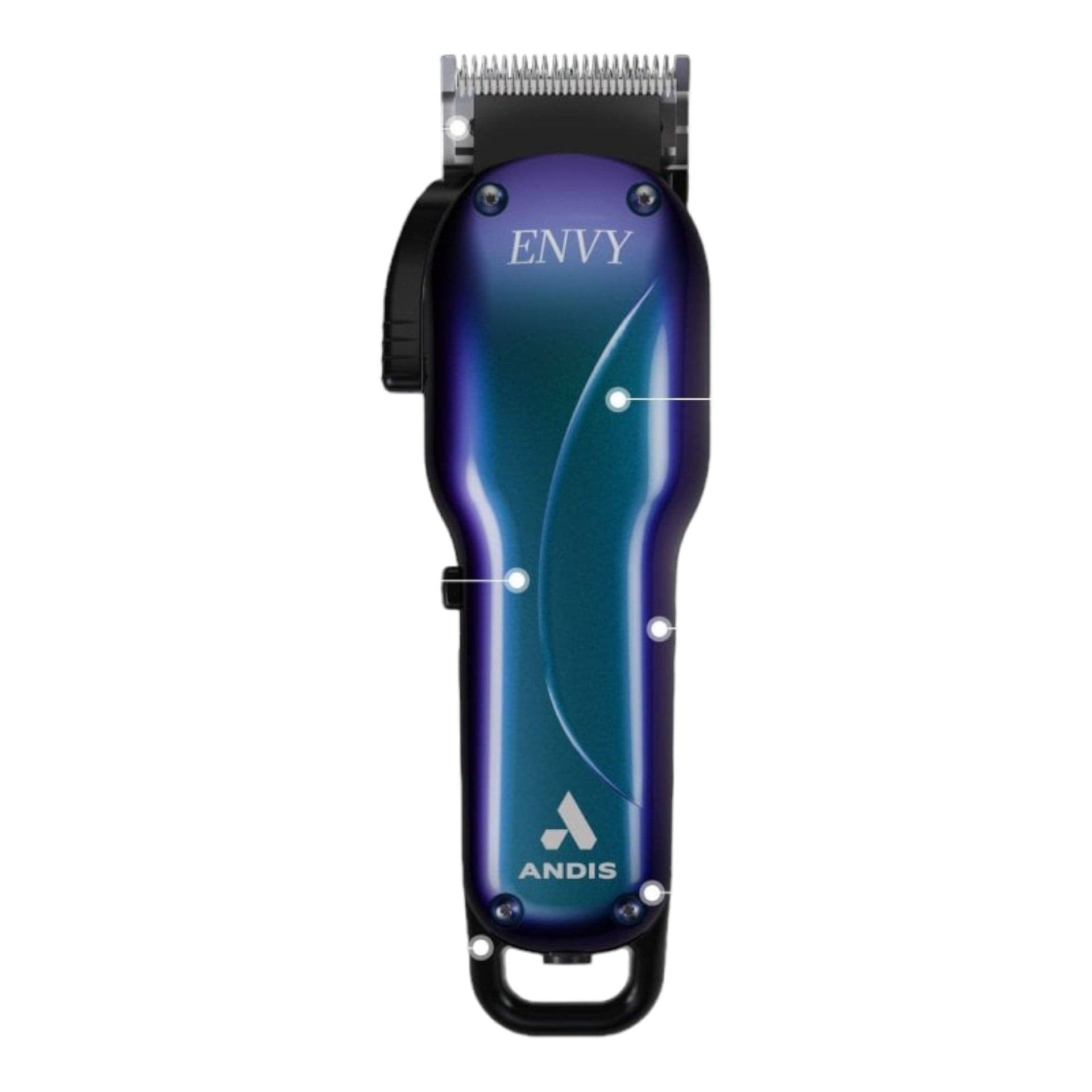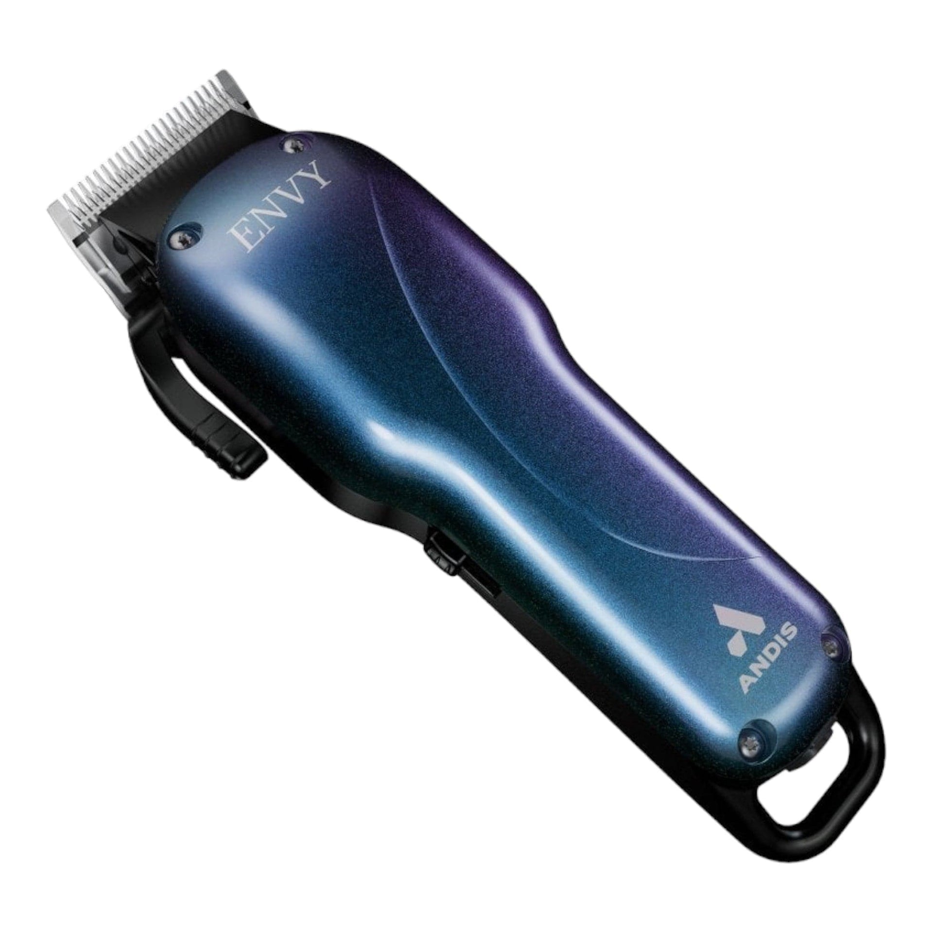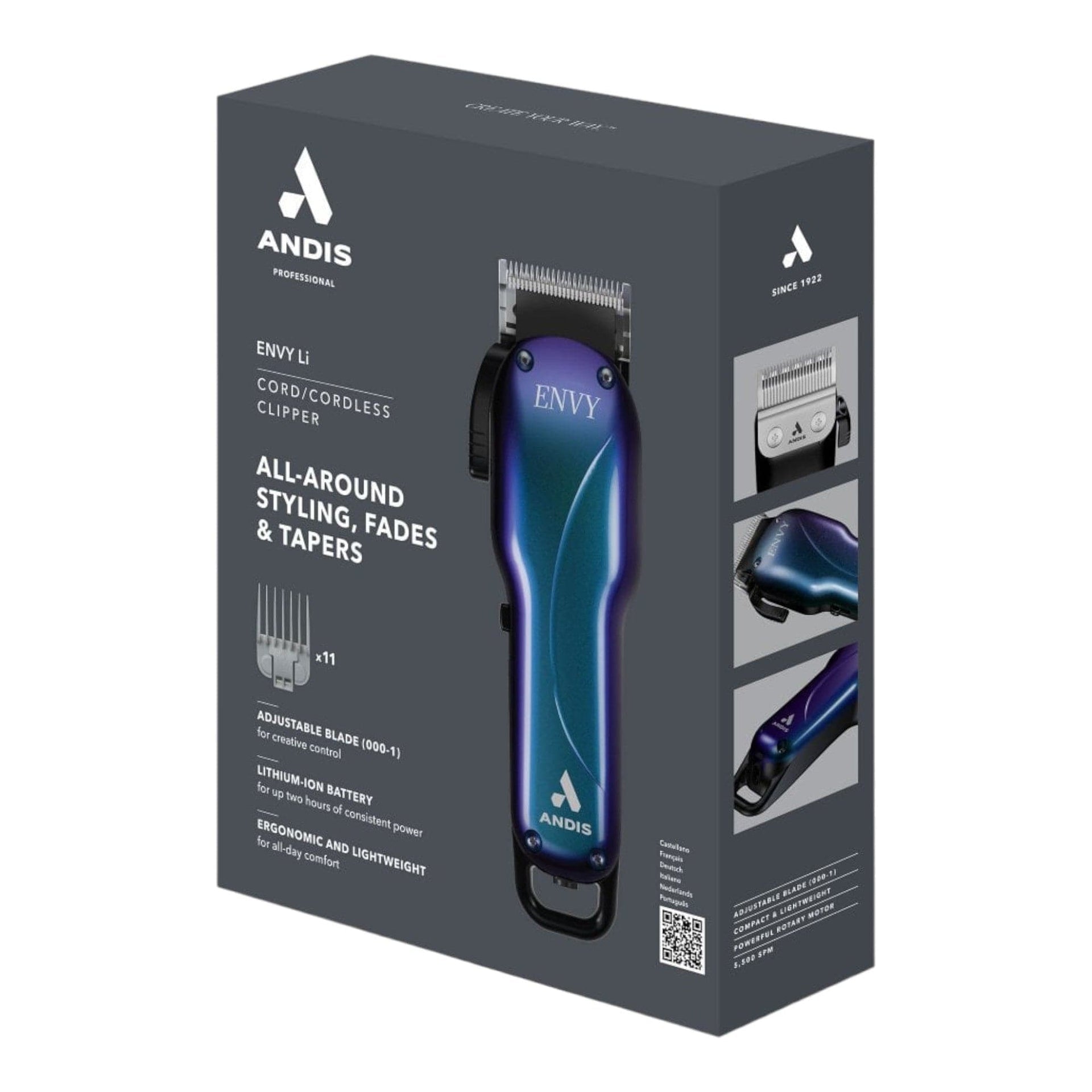 The limited edition Andis - Envy Li Clipper Galaxy LCL 561559 is designed to provide barbers and stylists with exceptional freedom and precision. Featuring a striking Galaxy colourway, this clipper is equipped with a powerful rotary motor that delivers up to 5,500 strokes per minute, ensuring smooth and polished cuts on all hair types. The carbon-steel blade is fully adjustable from 000 to 1 and can be zero-gapped for razor-sharp lines, making it ideal for fades, tapers, and detailed work. Whether you prefer corded or cordless operation, the long-lasting lithium-ion battery offers up to 2 hours of uninterrupted runtime, giving you the flexibility to create without limits. The clipper's lightweight and ergonomic design ensures all-day comfort, especially for smaller hands, allowing you to focus on your craft without fatigue.