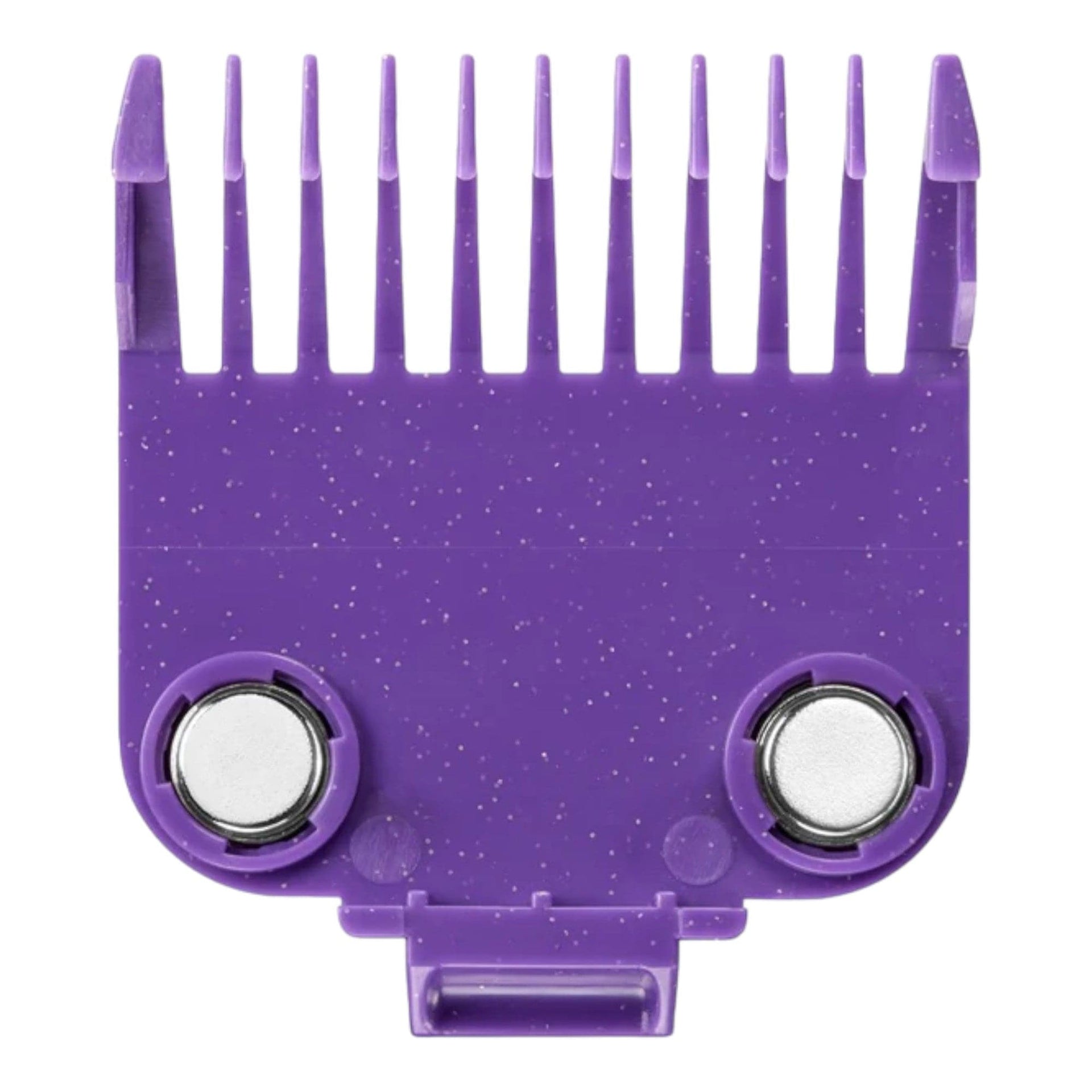 The Andis - Master Magnetic Comb Set - Dual Pack 0.5 & 1.5 01420 is a professional-grade accessory designed for precision and durability. Featuring rare earth magnets, these combs securely attach to your clipper blades, providing unparalleled stability during cutting. The magnetic attachment ensures a sturdy fit, eliminating the common issue of combs bending or breaking. Enhanced with nano-silver technology, these combs offer anti-bacterial properties to maintain excellent hygiene between clients, making them perfect for busy barbershops. The set includes two comb sizes—0.5 (2.25mm) and 1.5 (4.5mm)—giving you versatility in creating sharp fades and detailed cuts. With their vibrant purple colour and clear, embossed size markings, these combs are both practical and stylish, helping you stay organised while delivering top-tier results.