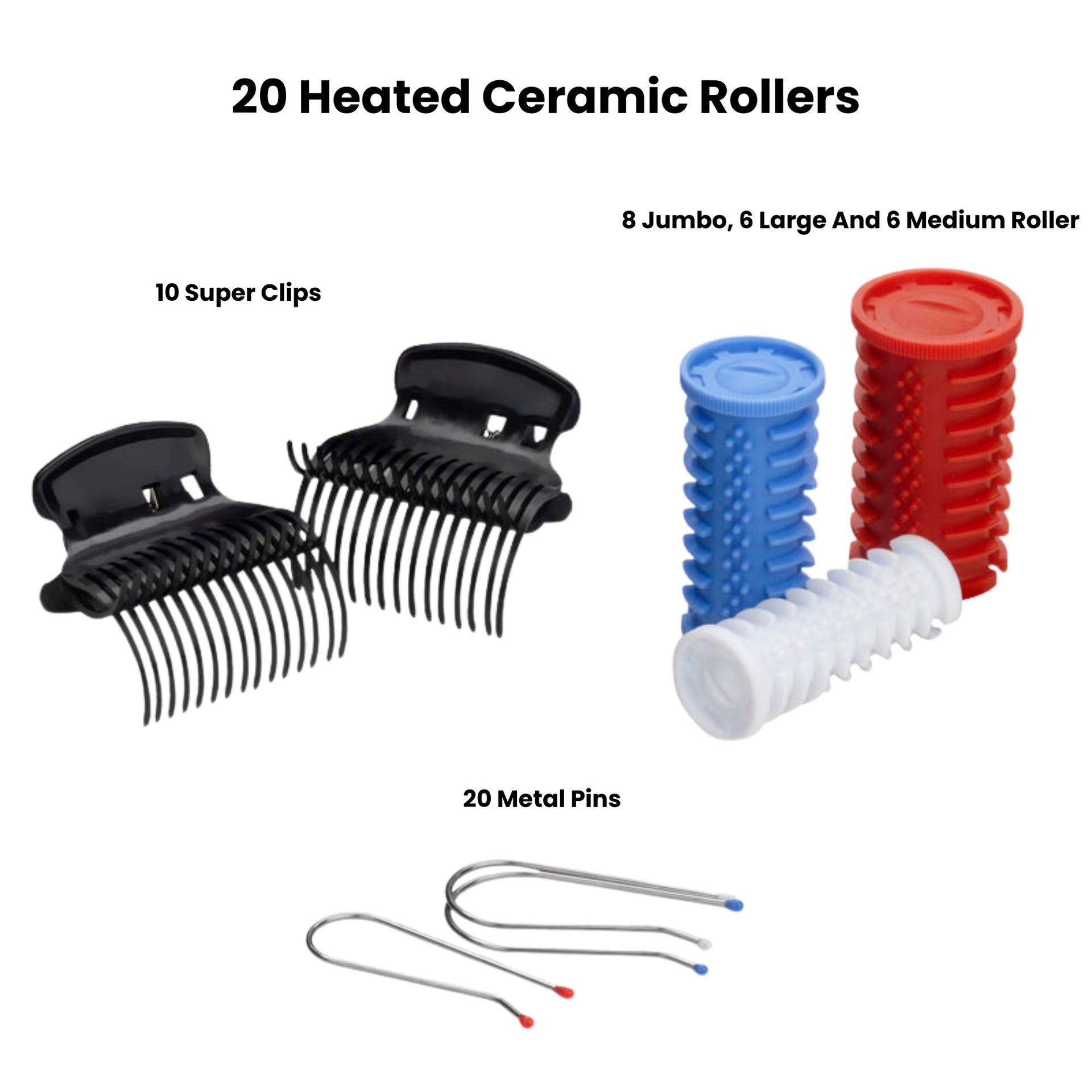 - A professional set of 20 ceramic-infused rollers for creating curls, shape, and volume.