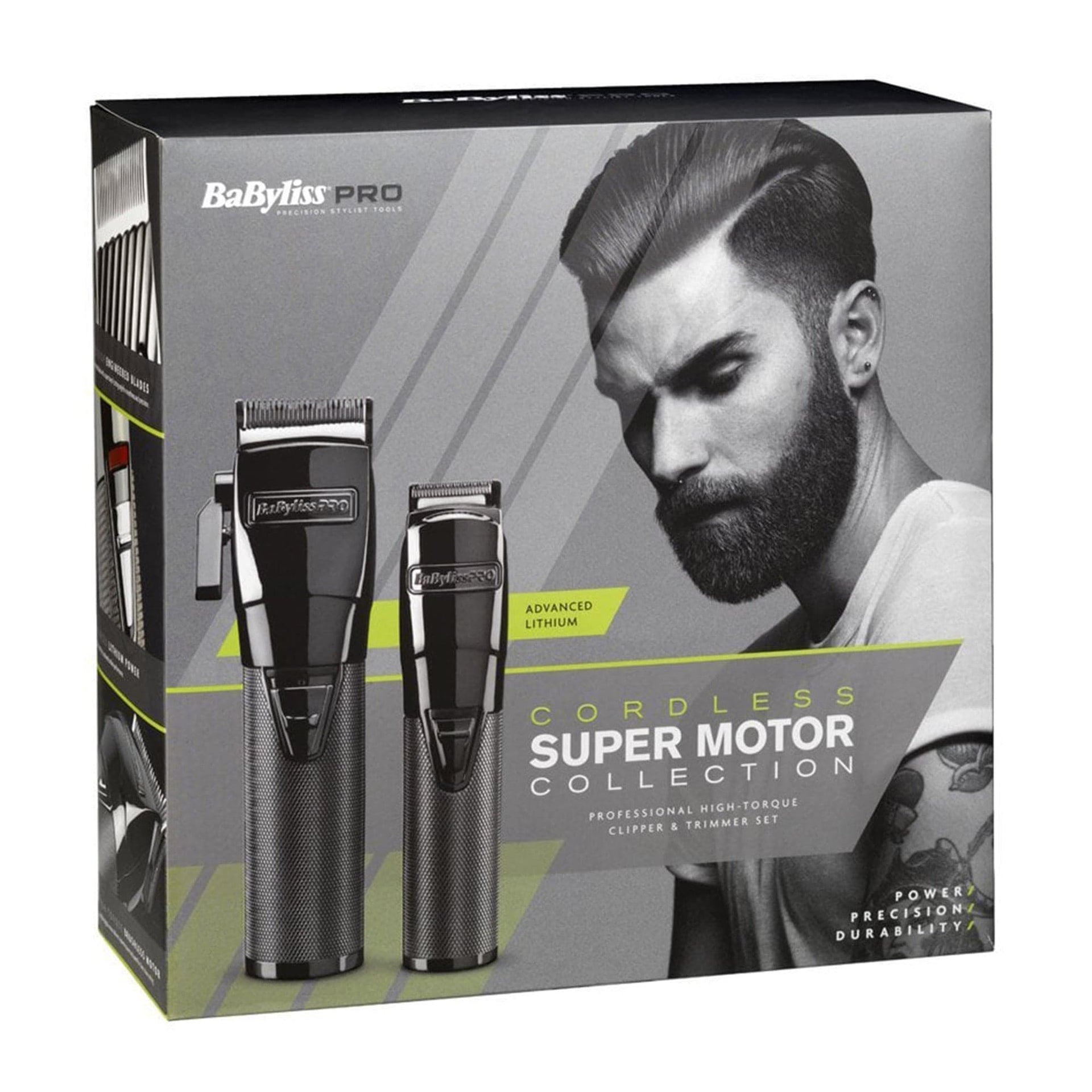 The Babyliss Pro - Clipper & Trimmer Cordless Super Motor Collection is an exceptional grooming set designed for barbers and stylists seeking professional-grade precision and durability. Both the clipper and trimmer feature precision-engineered Japanese steel blades with a super-sharp V cutting angle, ensuring smooth and flawless results. The clipper’s high-torque brushless motor delivers consistent power and speed, while the adjustable taper lever and six comb guides (grades 1-6) provide versatile cutting options for a variety of styles. Powered by advanced lithium-ion technology, the clipper boasts up to 120 minutes of cordless runtime after a 3-hour charge, ensuring sustained performance throughout busy days. Its robust all-metal housing not only adds durability but also offers a sleek and ergonomic design for comfortable handling. Backed by a 2-year guarantee, this clipper is built to meet the demands of professional use.