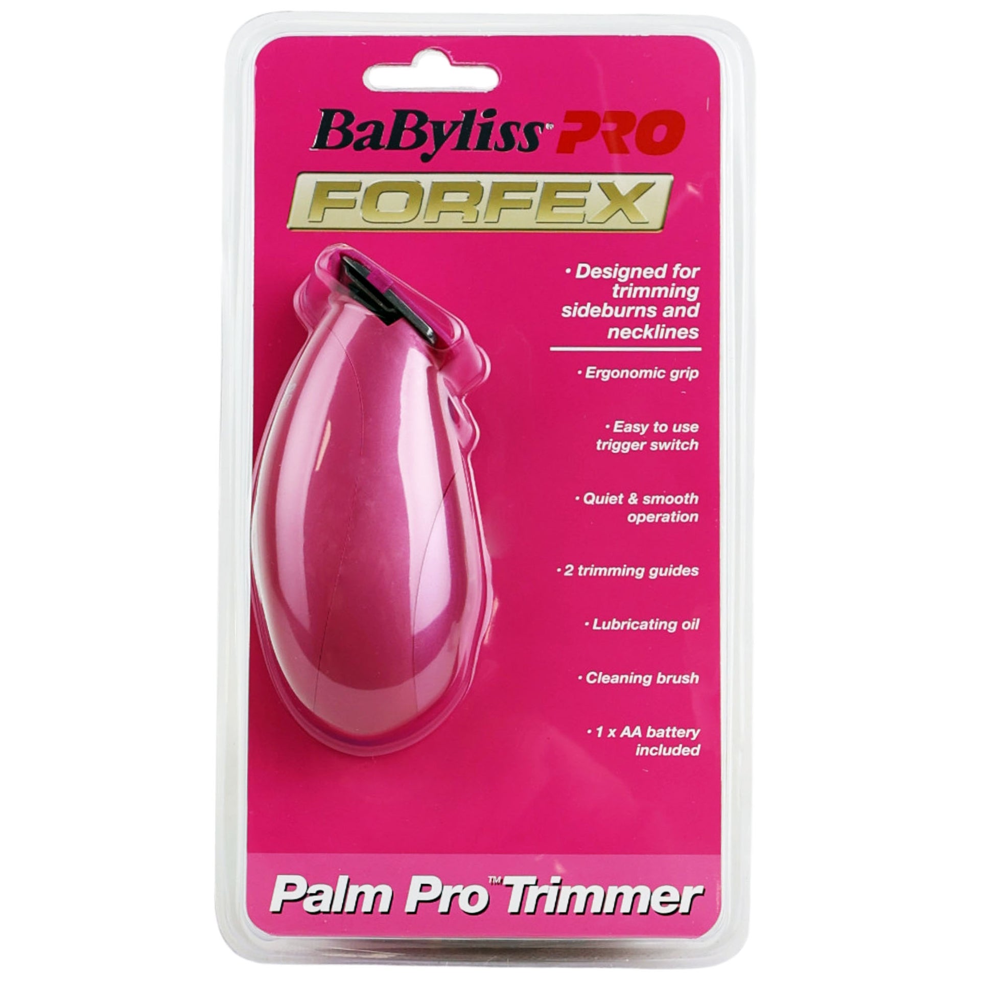 Achieve salon-perfect finishing touches with the Babyliss Pro Forfex Palm Pro Trimmer, the professional's choice for precise detail work and clean edge definition. This cleverly designed trimmer fits snugly in the palm of your hand, offering exceptional control for those intricate areas that require absolute precision—perfect for creating crisp sideburn lines, neat necklines, and tidy ear contours. The ergonomic comfort grip ensures fatigue-free operation even during extended use, whilst the smooth, quiet battery operation provides consistency without the distraction of noisy motors. With professional-grade stainless steel blades that deliver a clean, sharp cut every time, this compact tool has become an essential item in barber shops and salons across the country for adding those crucial finishing touches that elevate a good haircut to a great one.