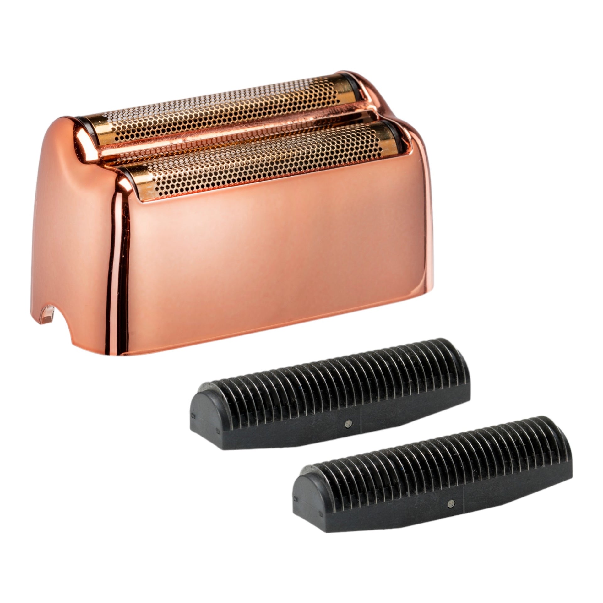 Compatible with Babyliss models BABFS2U, BABFS2CU, and BABFS2DU, the Babyliss Pro Titanium Replacement Foils & Cutters offer versatility, allowing you to easily upgrade or maintain your existing shaver. Available in sleek Black, Gold, and Rose Gold finishes, these foils not only perform exceptionally but also add a touch of style to your grooming kit. Whether you're after a close shave or a precise fade, these replacement foils and cutters deliver impeccable results while ensuring comfort for even the most sensitive skin.