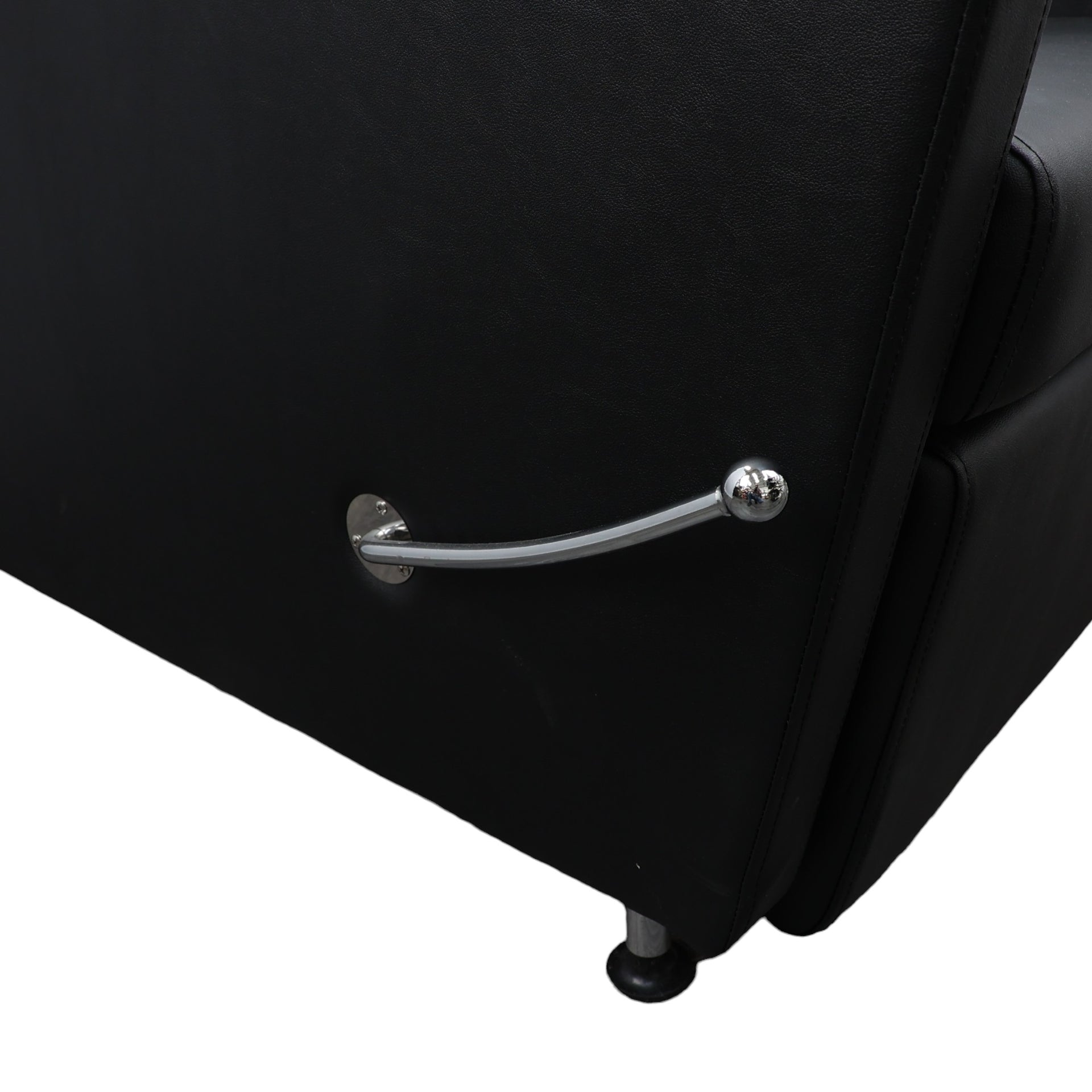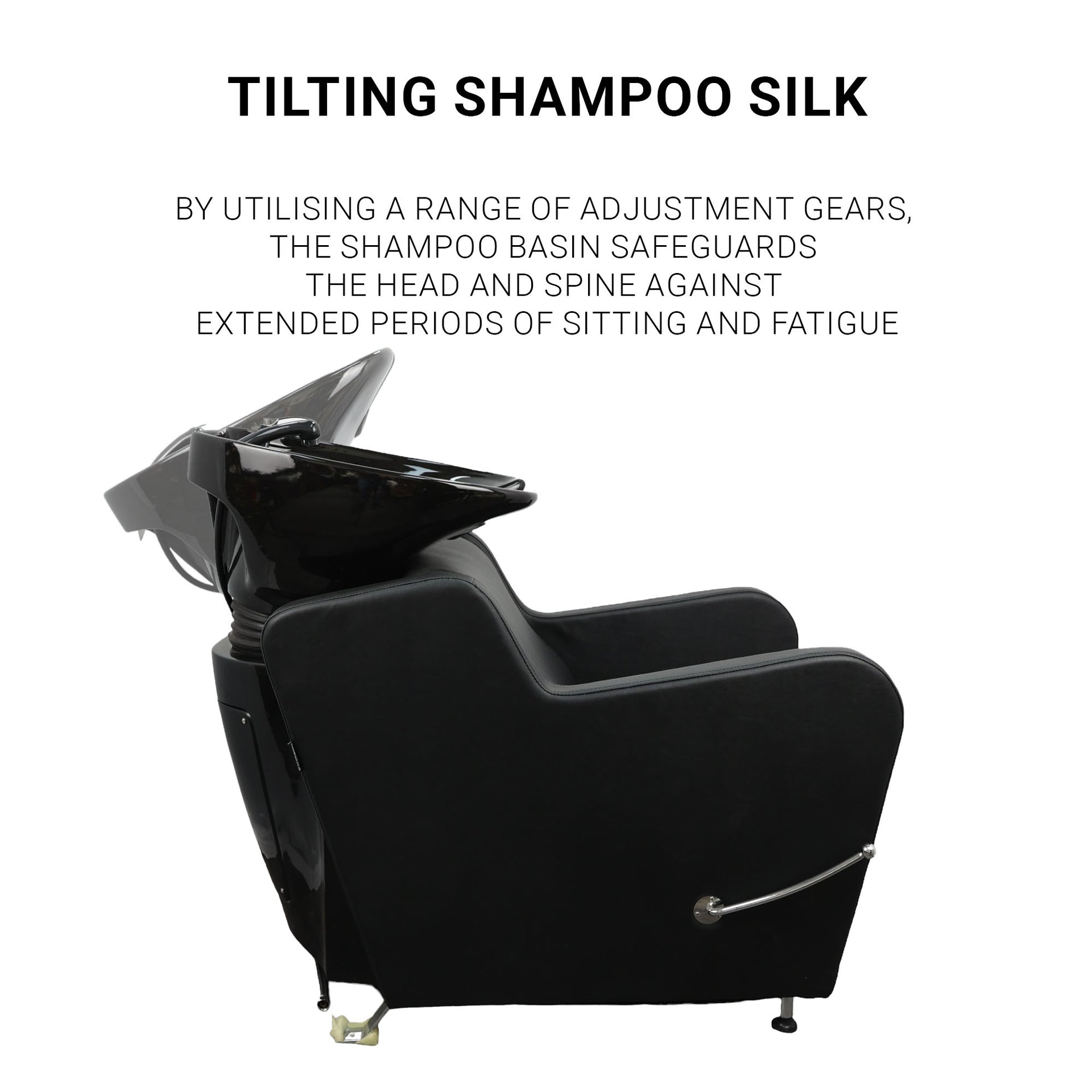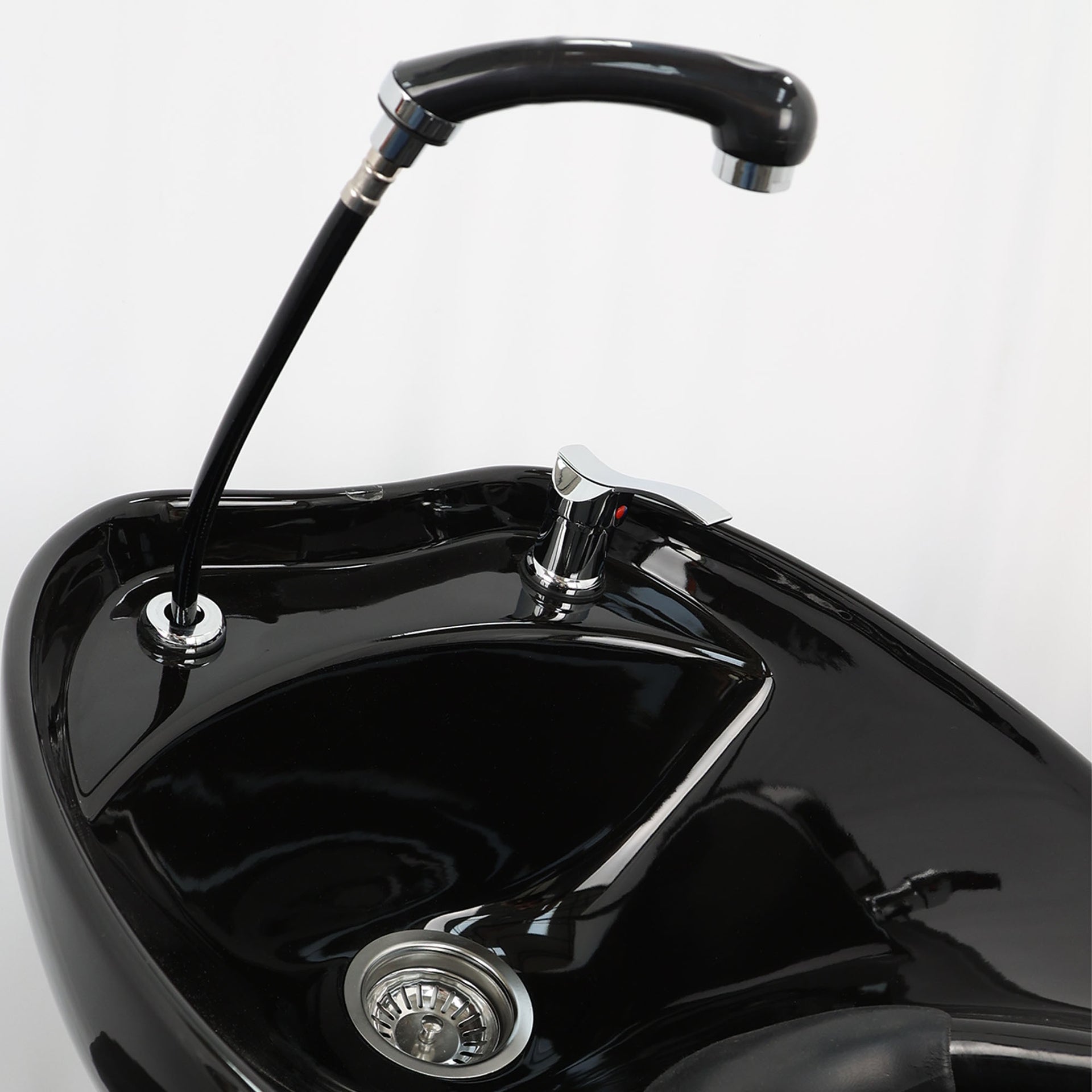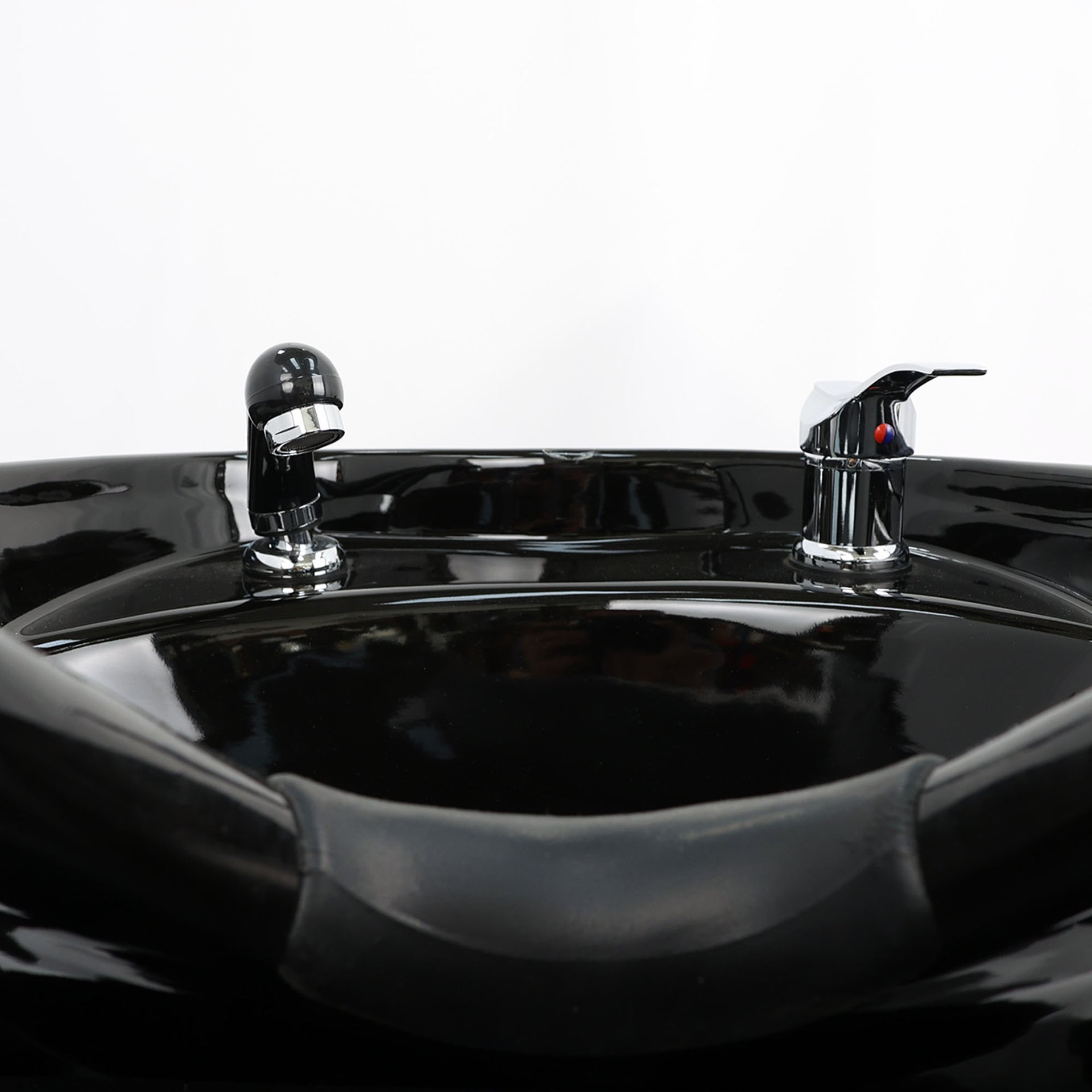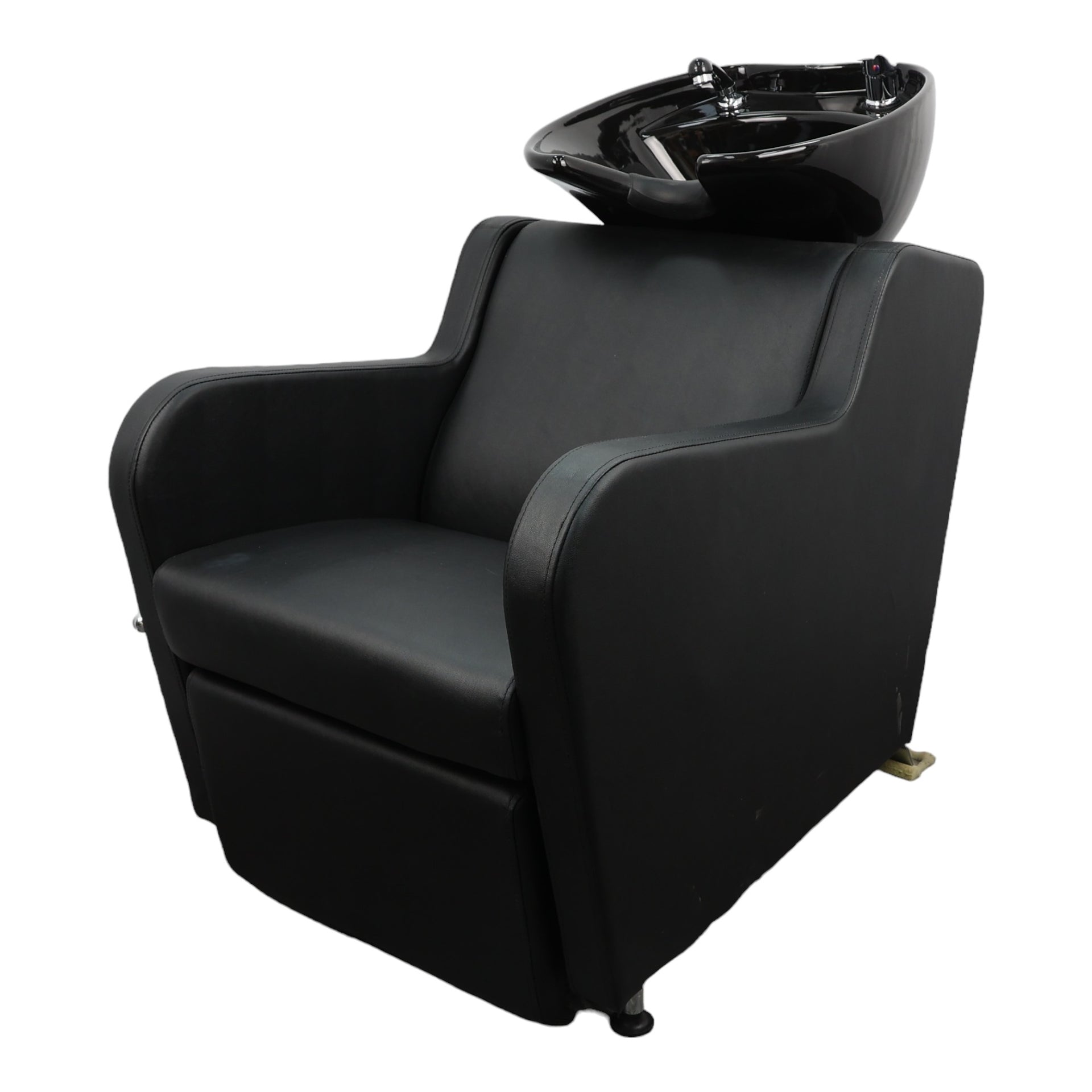 Equipped with a black ceramic basin, the Backwash Chair - Ergonomic Luxury Basin Adjustable Chair Black offers both beauty and practicality in one. The basin comes with an oscillating mechanism, allowing flexibility when adjusting to your client's position for added convenience. The sturdy construction, featuring a wooden frame with high-density foam, ensures long-lasting comfort and reliability. The folding footrest, operated by a manual lever, provides personalised comfort, while the hydraulic pump, controlled by a foot pedal, allows for easy height adjustments. This unit is supplied with all necessary fittings and piping, making installation a breeze, and its easy-to-clean surfaces ensure hassle-free maintenance.