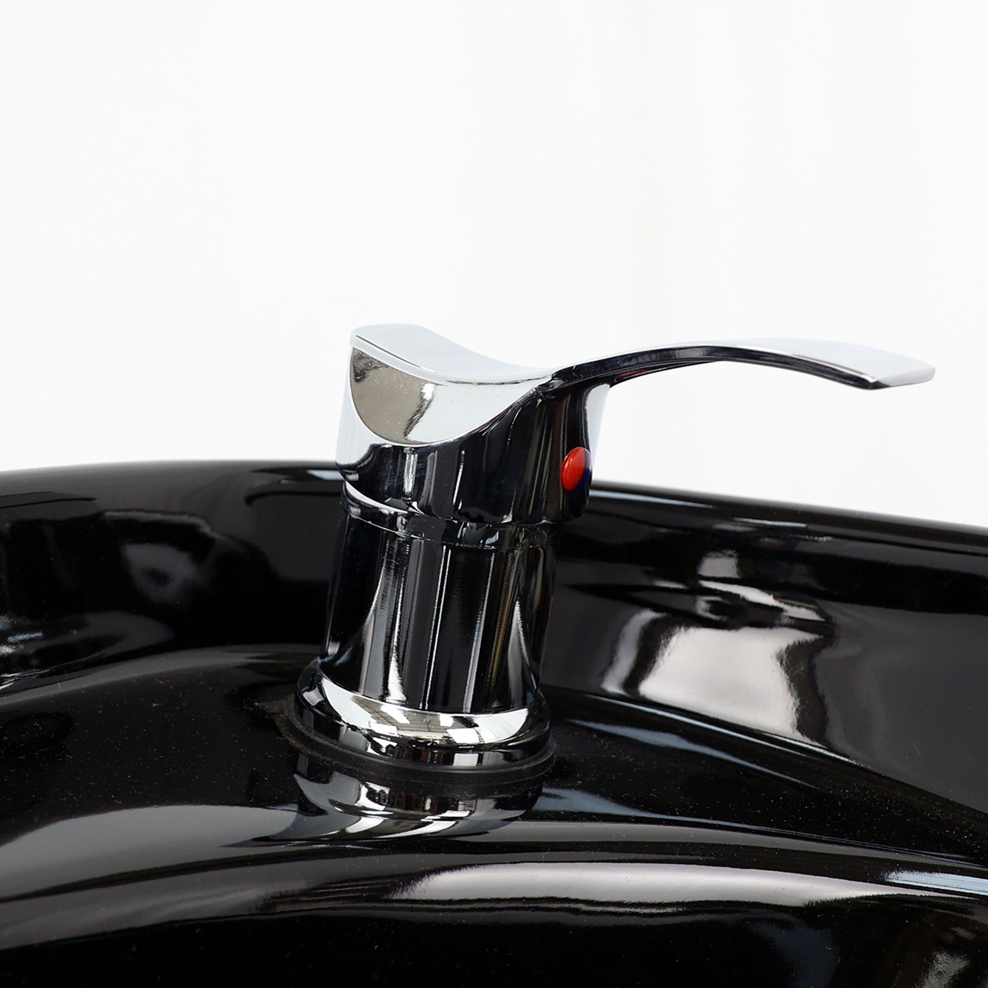 - Black ceramic basin with an oscillating mechanism for flexibility.