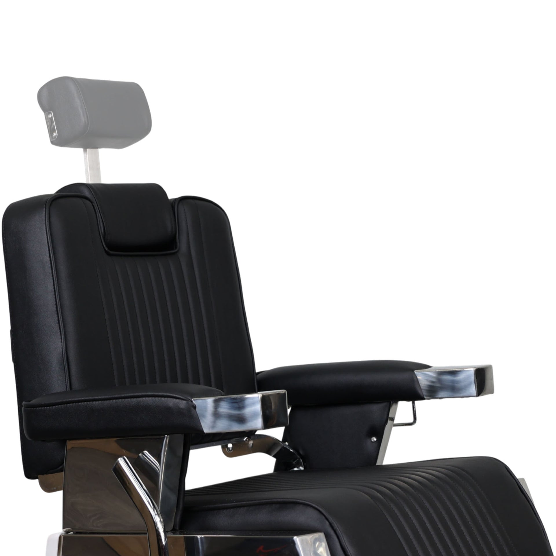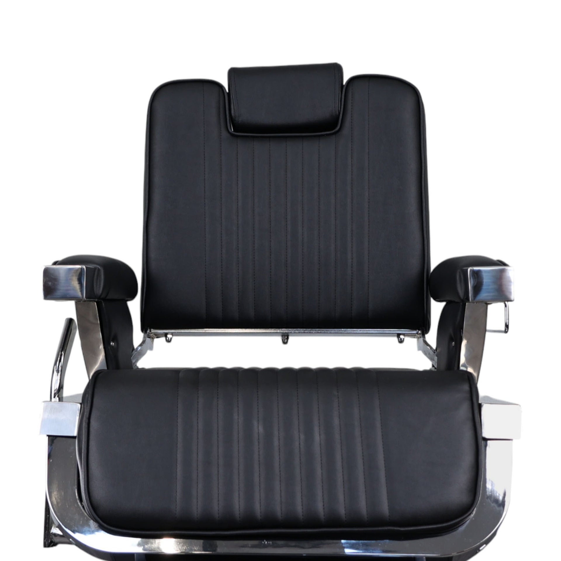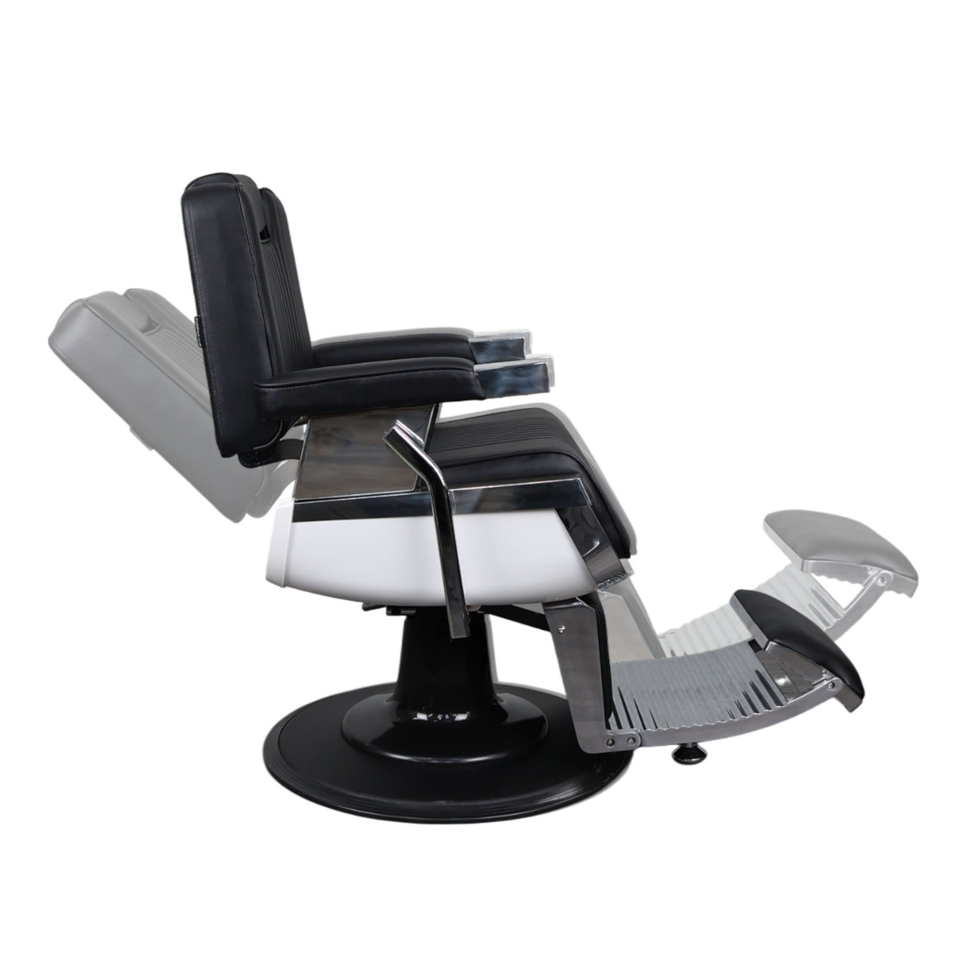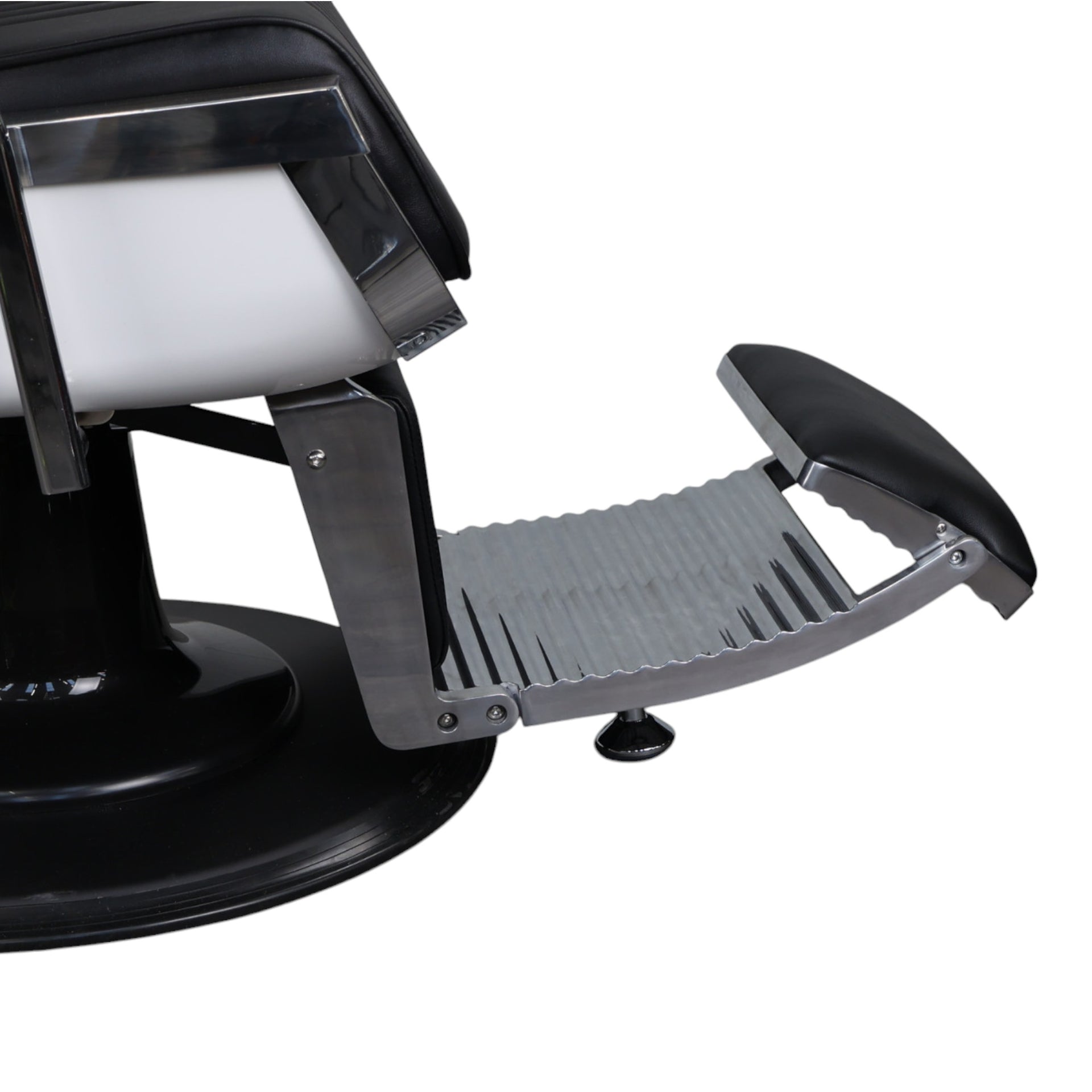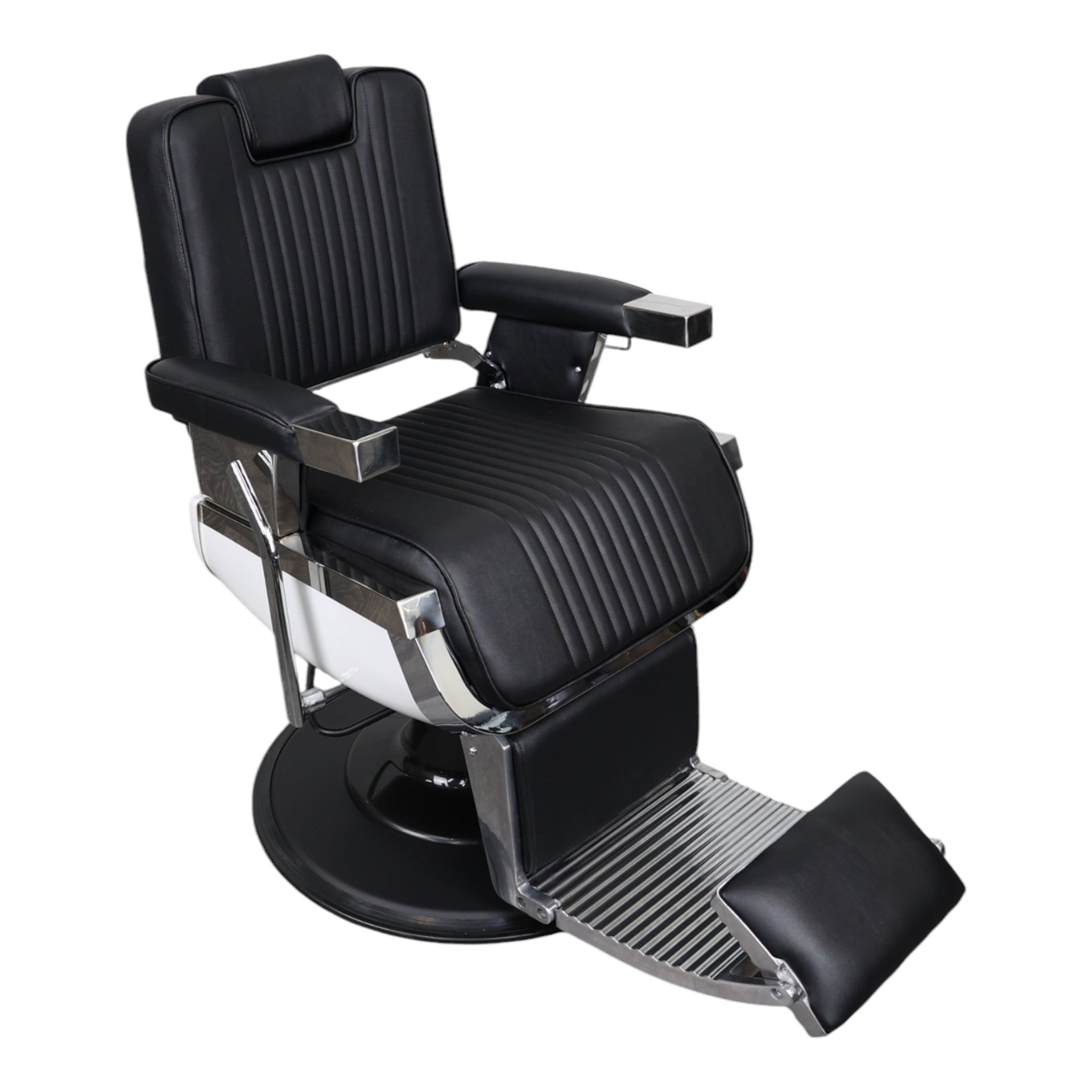 Constructed with a heavy-duty aluminium frame and a durable 27-inch chrome base, the Barber Chair - Retro With Reversible Footrest is built to last and can support up to 450 pounds (204 kg). The chair’s sleek black PVC leather upholstery not only enhances the aesthetic appeal but is also easy to clean and maintain, ensuring it remains in pristine condition after each use. The headrest is fully adjustable, with seven gears to cater to each client’s height and preference. This chair is perfect for barbershops, beauty salons, and tattoo parlours, offering a professional touch to any setting. Whether you're performing haircuts, shaves, or tattoos, this chair delivers both style and practicality, making it a versatile and reliable choice for any professional environment.