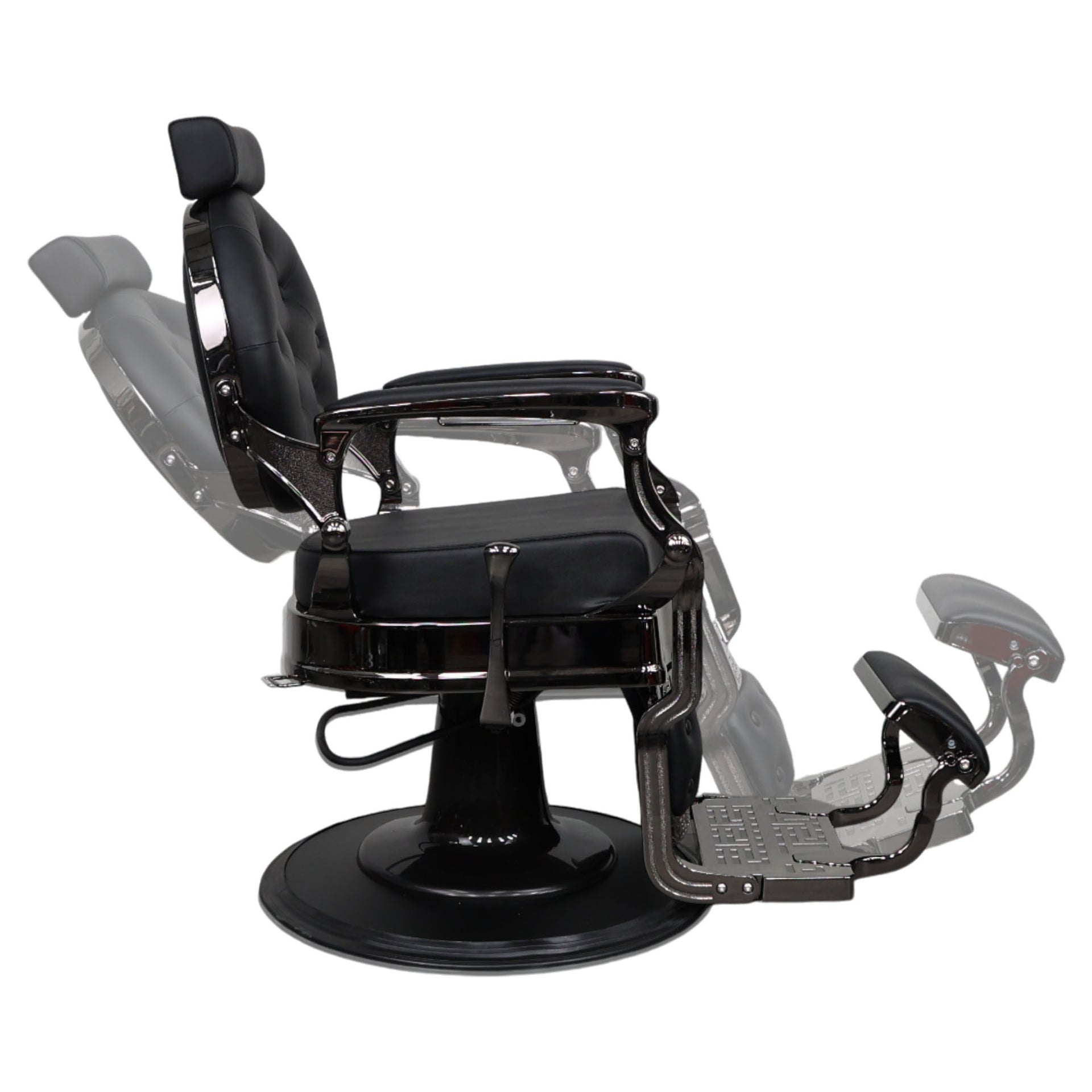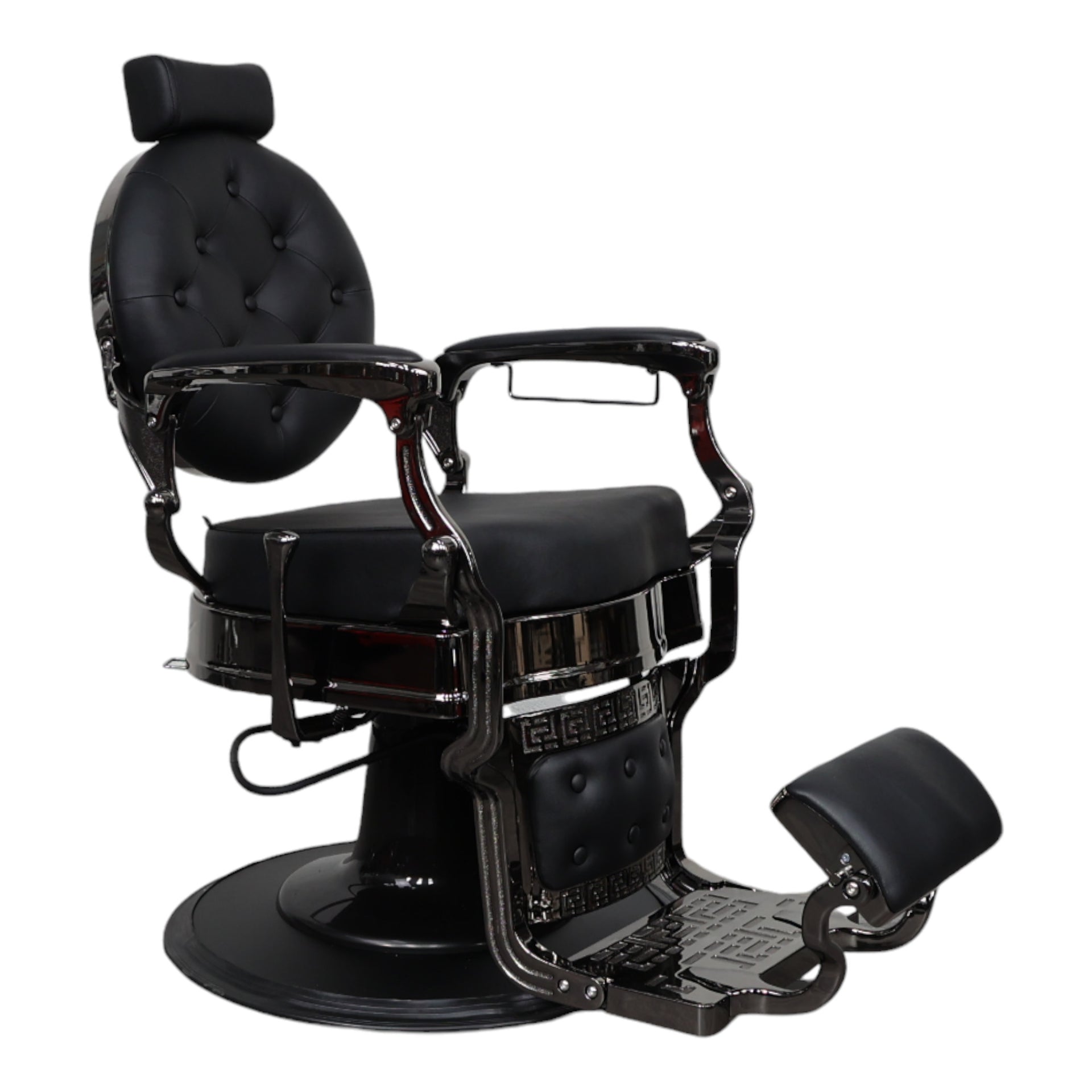 The Barber Chair - Vintage Style combines timeless elegance with modern practicality, making it the perfect addition to any professional barbershop. Featuring 360° swivel rotation and a lockable hydraulic lift, this chair ensures both flexibility and stability for the barber. The adjustable seat height and reclining backrest offer personalised comfort for your clients, while the highly resilient cushion provides ergonomic support. Crafted from imported steel and premium leather, this chair is designed for durability and easy maintenance, ensuring long-lasting use in busy environments. Its classic design is complemented by contemporary functionality, offering both aesthetics and practicality in one luxurious package. With a removable headrest and a sleek, chrome-plated frame, this chair provides both support and style. An essential for barbers who prioritise client comfort and efficient operation.