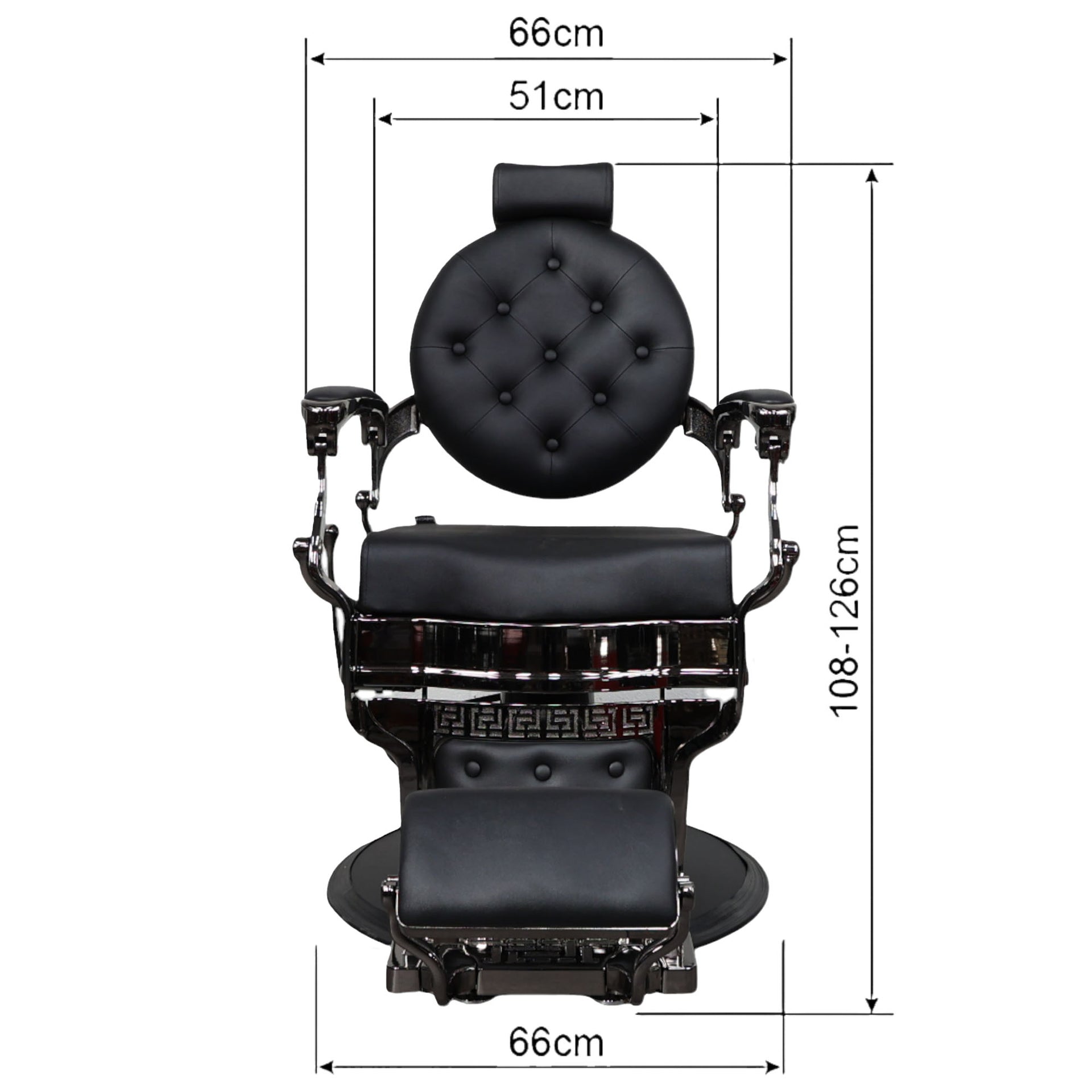 - Dimensions: Height 108 cm – 126 cm, Width 66 cm (including armrests)