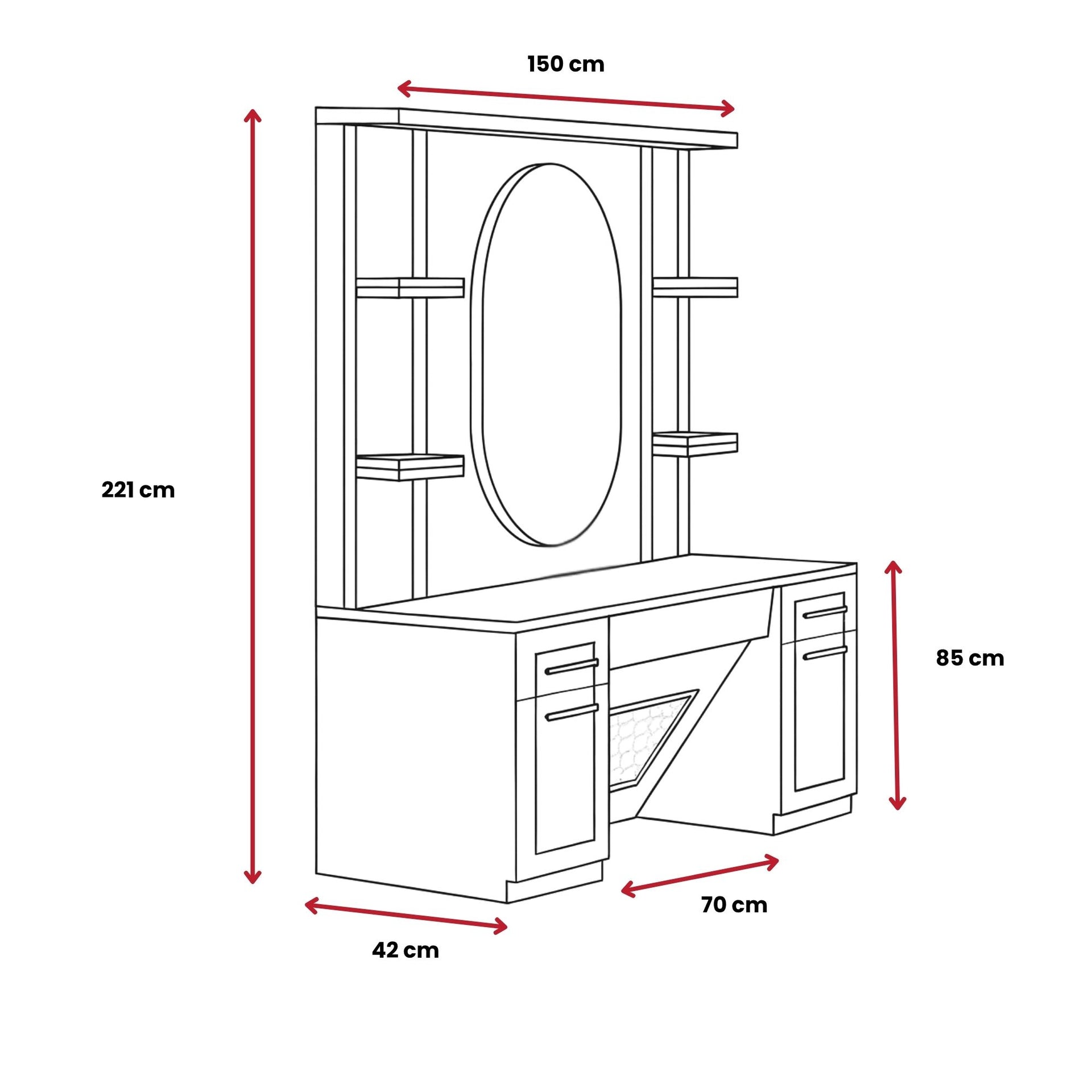 - Overall Dimensions: Height: 221 cm (approx. 87 inches); Width: 150 cm (approx. 59 inches); Depth: 42 cm (approx. 16.5 inches)