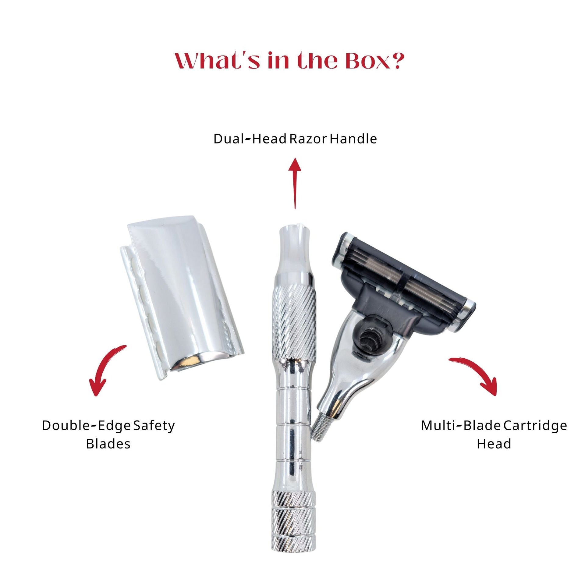 - An innovative 2-in-1 hybrid design compatible with both double-edge and cartridge blades.