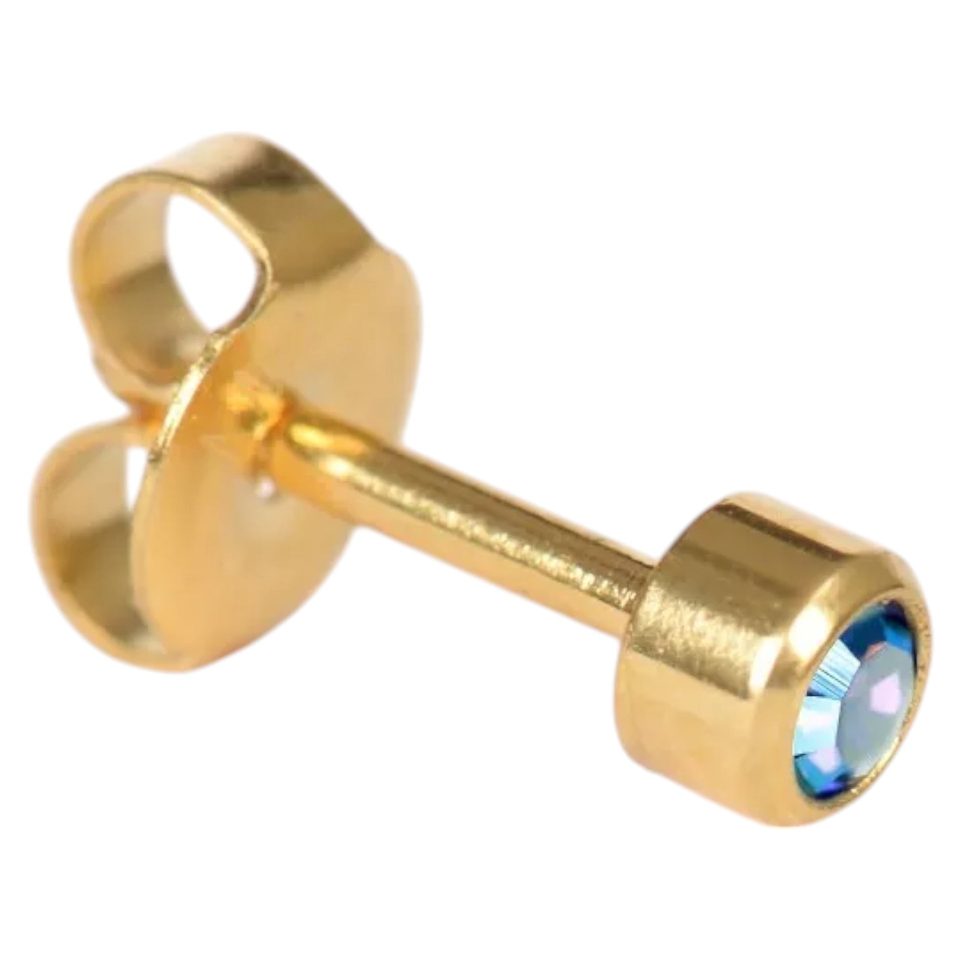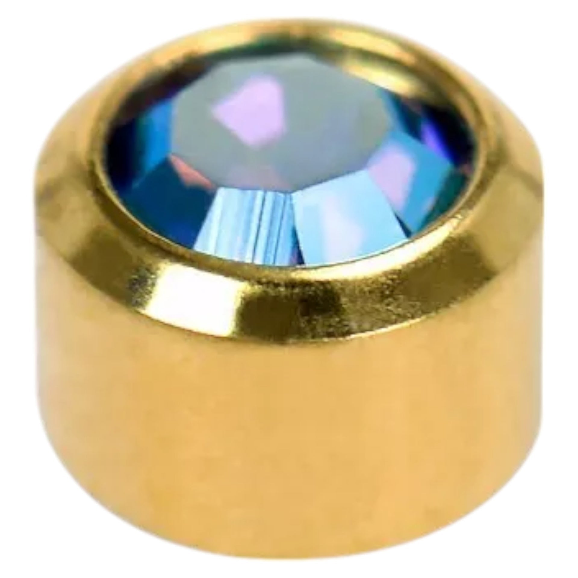 - Professional-grade 24ct gold plated studs with stunning blue violet AB birthstone crystals.