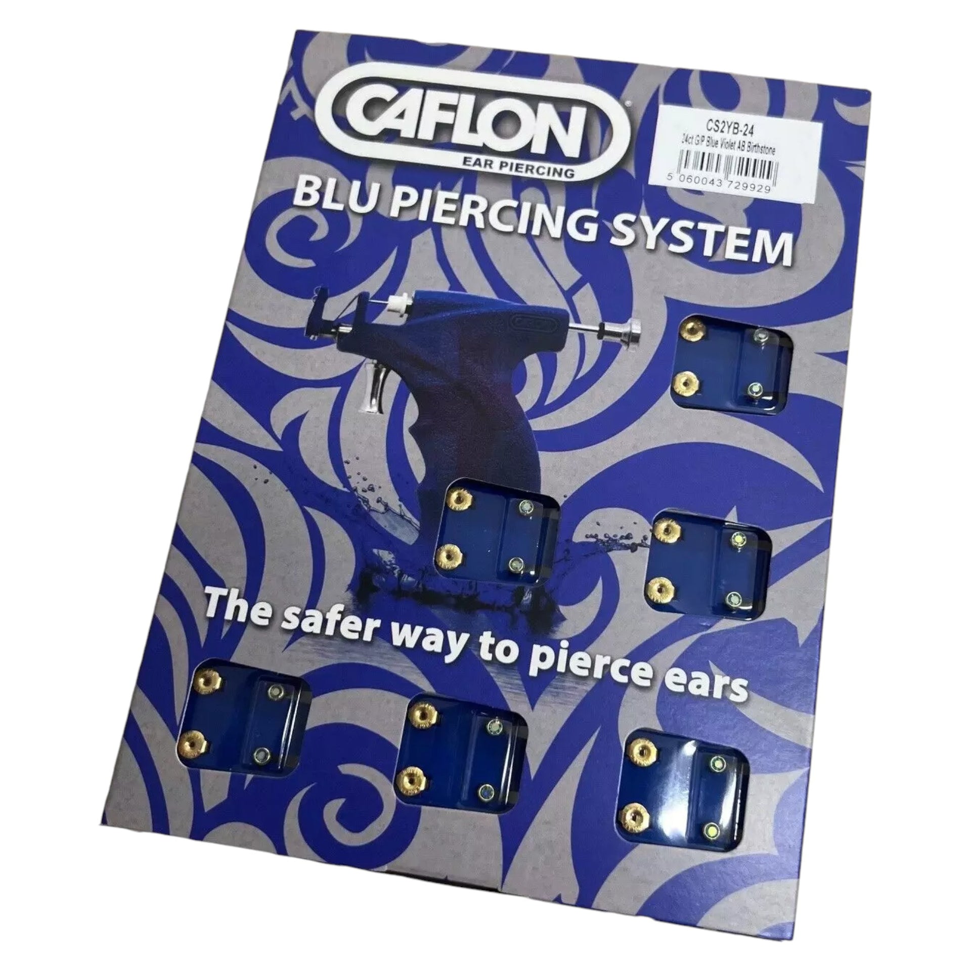 Professional piercing specialists, beauty salons, jewellers and clinics offering ear piercing services with the Caflon Blu Piercing System. Perfect for clients seeking February birthstone earrings, purple/blue jewellery enthusiasts, or those desiring premium quality initial piercing studs with iridescent sparkle.