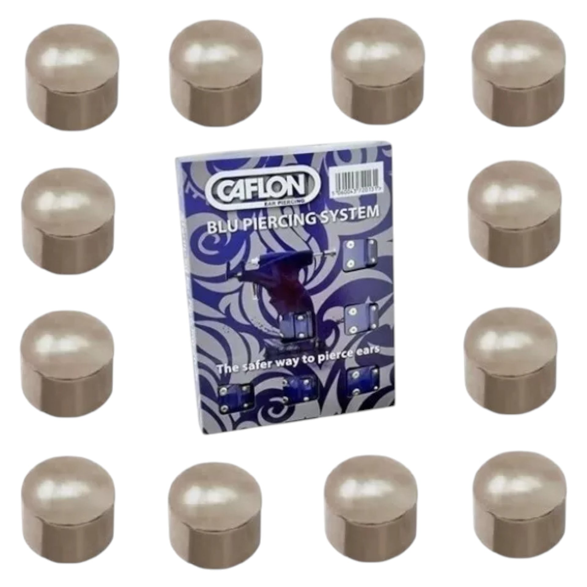 To be used exclusively with the Caflon Blu Piercing System by trained professionals. After piercing, advise clients to leave studs in place for the recommended healing period (typically 6-8 weeks) before changing to fashion earrings.