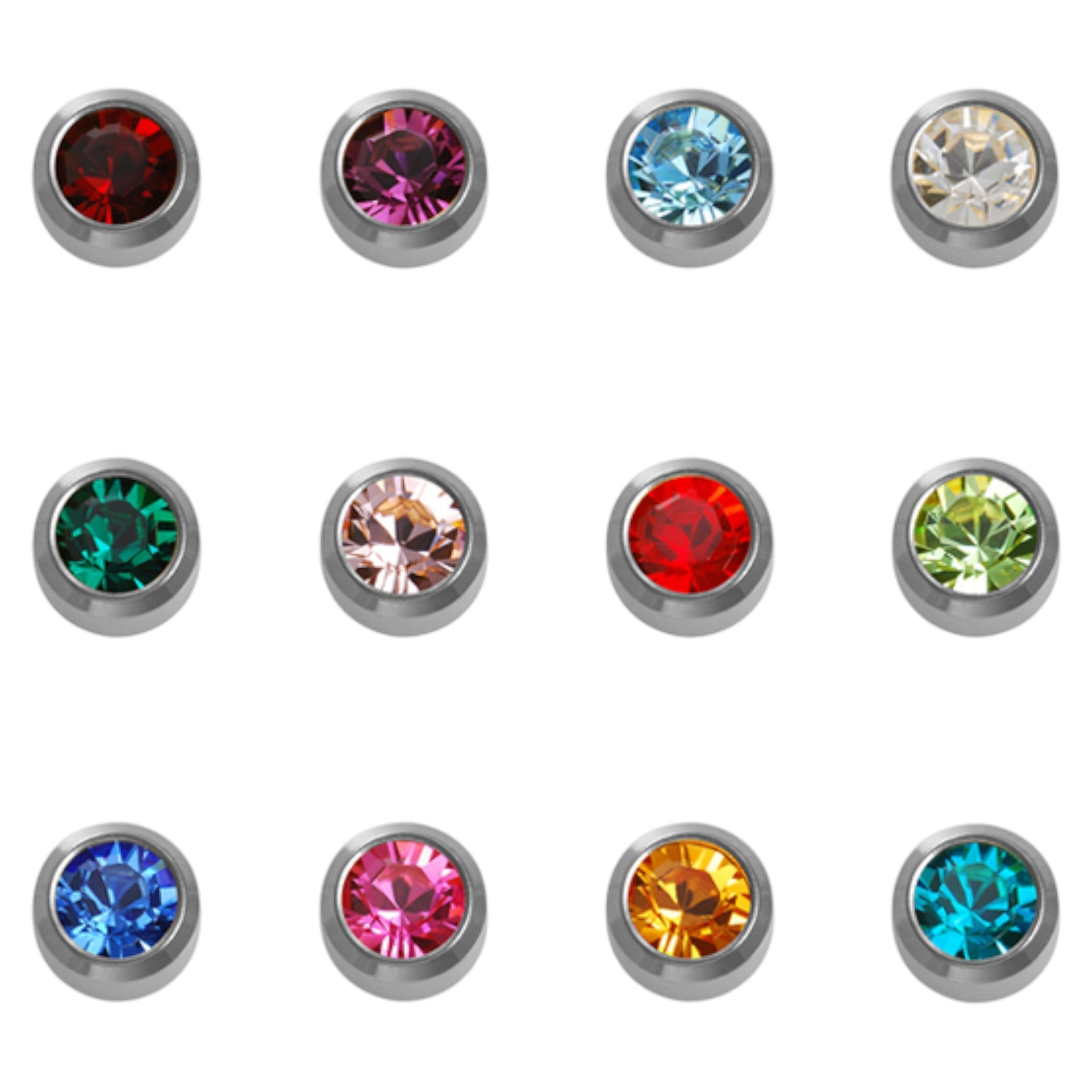 Elevate your piercing services with our premium Caflon White Stainless Birthstone Studs, available as individual monthly options or as a complete 12-piece assortment featuring every birthstone colour. Each exquisite 4mm stud showcases a brilliant birthstone crystal set in contemporary polished white stainless steel, creating a sleek, modern aesthetic with exceptional hypoallergenic properties. From January's deep Garnet to December's vibrant Blue Zircon, these professional-grade earrings offer clients a meaningful and personalised piercing experience with outstanding comfort and style. Specifically designed for use with the innovative Caflon Blu Piercing System, these high-quality studs ensure precise, safe piercings whilst providing a beautiful finishing touch that seamlessly transitions from initial piercing to everyday wear.