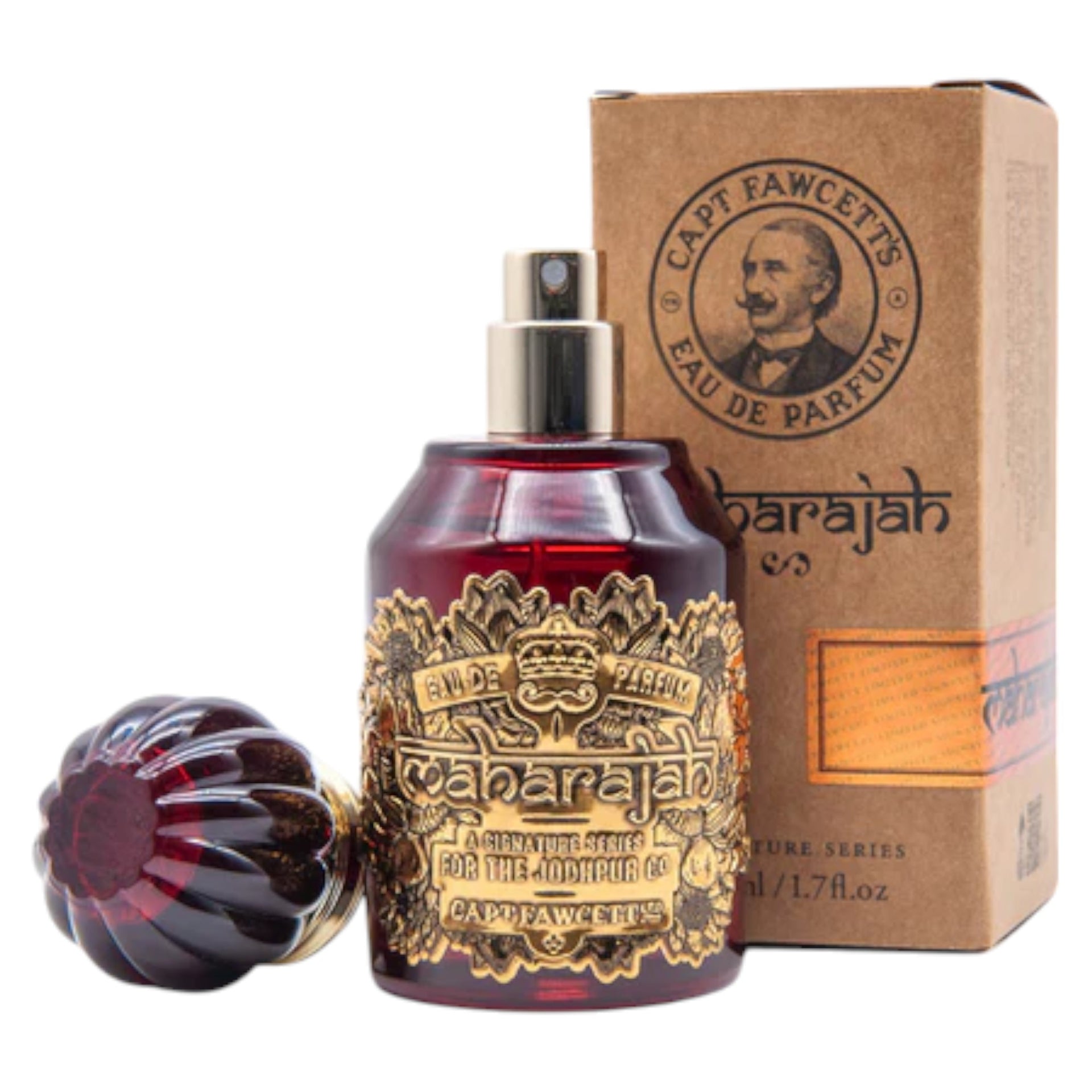 Transport yourself to the princely opulence of ancient India with this exceptional fragrance created through the distinguished collaboration between master barber Captain Fawcett and the prestigious Jodhpur Company. Captain Fawcett's Maharajah Eau de Parfum represents a tantalising olfactory journey inspired by the ravishing colours and rich heritage of India's sovereign states, capturing centuries of aristocratic tradition in a meticulously crafted modern fragrance. This remarkable scent opens with dazzling citrus top notes that immediately establish its exotic character, before developing into a sophisticated heart featuring heady rose and peppery spice that create a voluptuous, intoxicating presence. The magnificent dry-down reveals a sophisticated base of rich musk, beguiling cedar and sumptuous leather that provides exceptional depth and longevity, creating a fragrance that evolves beautifully throughout the day whilst maintaining its distinctive regal character and unmistakable connection to India's majestic heritage.