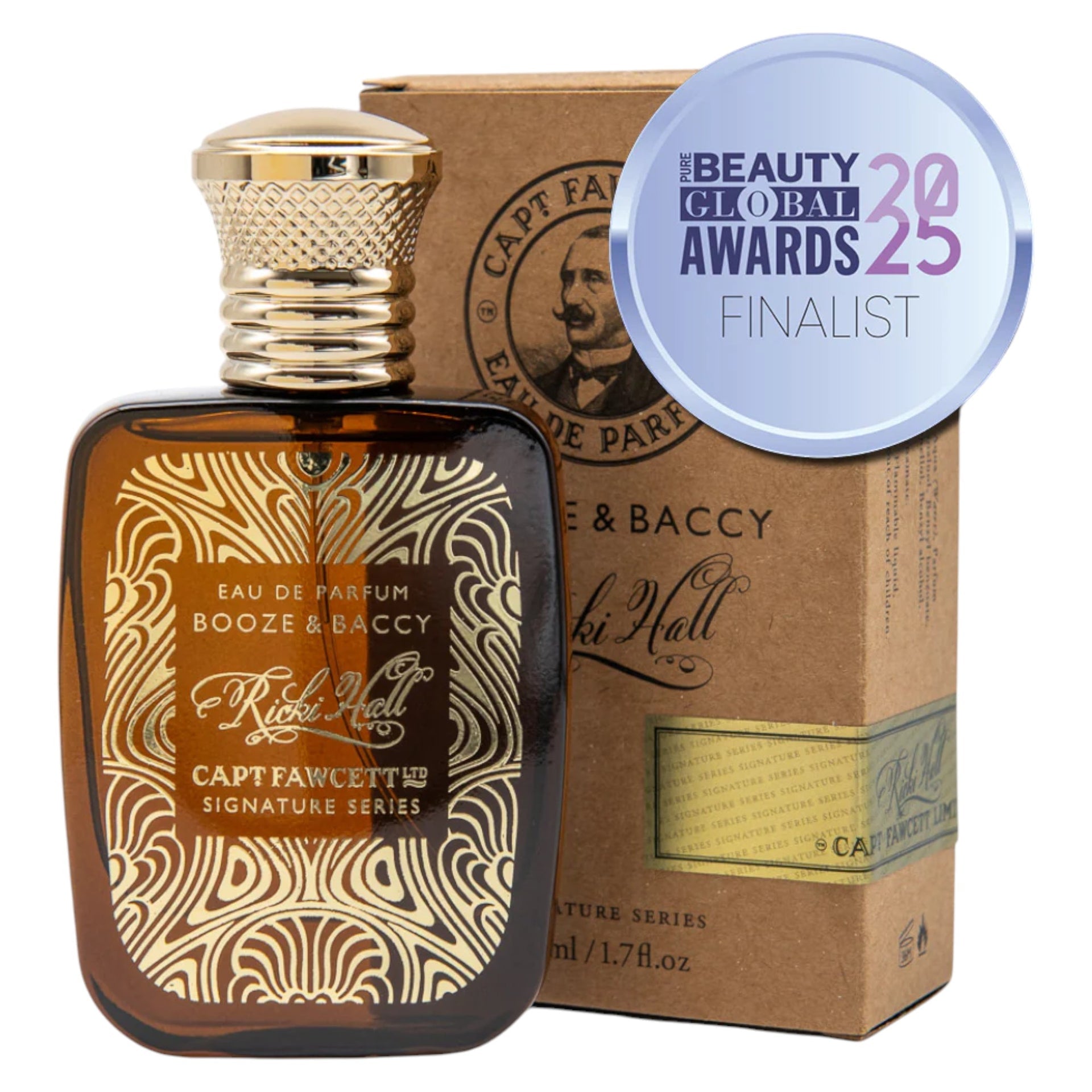 Embody timeless masculinity with this exceptional fragrance created through the distinguished collaboration between master barber Captain Fawcett and world-renowned dandy Ricki Hall. Captain Fawcett's Ricki Hall's Booze & Baccy Eau de Parfum captures the essence of rugged charm and sophisticated character in a meticulously crafted olfactory experience that pays tribute to the rough diamonds with hearts of gold from a bygone era. This remarkable scent opens with vibrant splashes of bay rum layered over youthful orange and bergamot, expertly cut through with sensual galbanum, white thyme and cool coriander to create an immediately distinctive and compelling introduction. The heart reveals itself with warming notes of soft, rich maple and vanilla bean that add depth and complexity, whilst the magnificent base notes of frankincense and honeyed tobacco leaf provide a lingering impression of distinguished masculinity that evolves beautifully throughout the day. Created as a heartfelt tribute to Ricki Hall's father and the quintessential masculine archetype of the 70s and 80s, this fragrance evokes leather jackets, gold chains, vintage cars and traditional pubs—the unmistakable essence of a charmer everyone wants to be around.