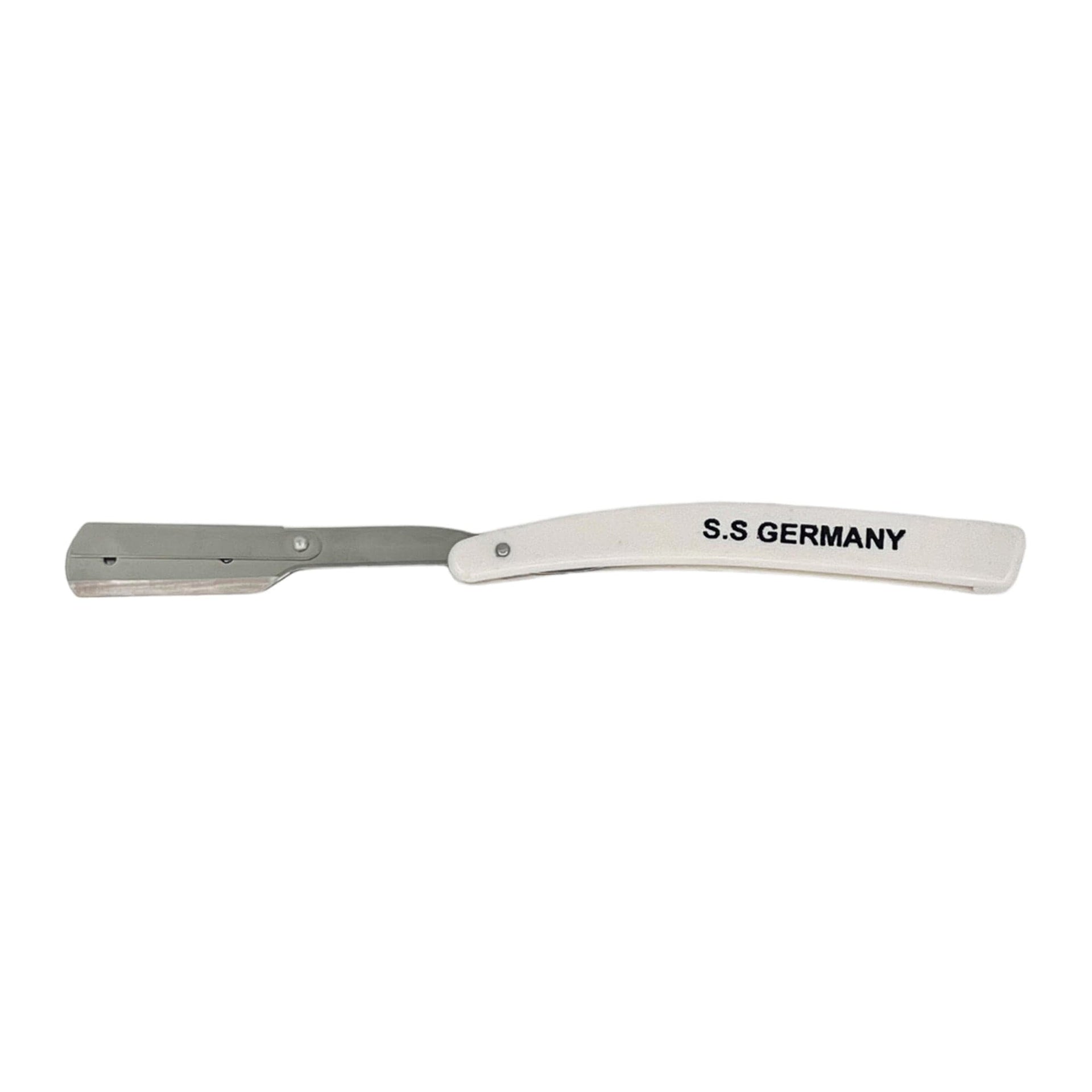 - Accepts standard double edge blades (snapped in half) for customisable and cost-effective shaving (S.S. Germany variants).