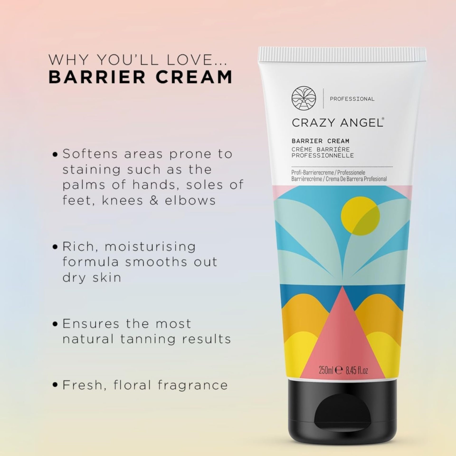Perfect your self-tanning routine with Crazy Angel Barrier Cream, the essential protective solution that prevents self-tanner from developing too darkly on naturally dry areas such as knees, elbows, ankles and hands. This luxurious cream creates an invisible shield that stops tanning products from over-developing in these typically problematic zones, ensuring a flawlessly even, professional-looking finish every time. Unlike basic moisturisers that can dilute self-tanner without properly protecting, this specialist formula has been specifically developed to create an effective barrier that prevents staining and excessive colour build-up whilst simultaneously nourishing the skin. The rich, easily-absorbed texture applies effortlessly and creates a smooth, balanced canvas for your tanning products, helping to achieve the most natural-looking results possible.