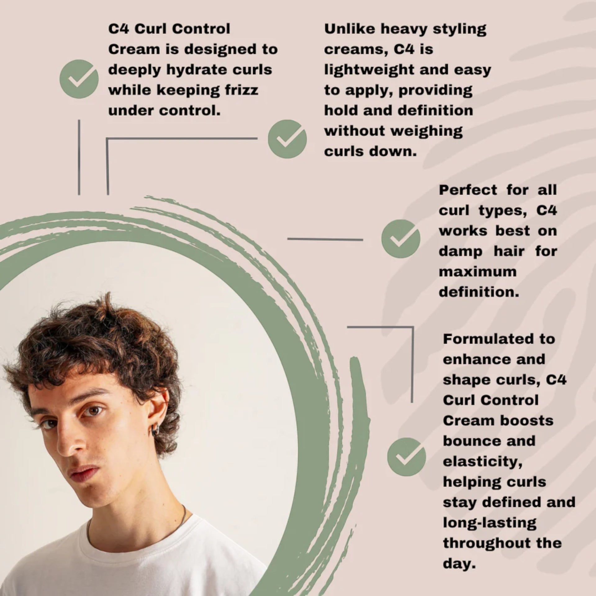 Perfectly suited for all curl types, the C4 Curl Control Conditioning Cream works best when applied to damp hair to maximise definition and bounce. Its nourishing blend boosts elasticity, helping curls stay defined, shapely, and resilient throughout the day. Formulated with natural ingredients, it conditions the hair while providing long-lasting stylistic control. Say goodbye to unruly frizz and hello to perfectly formed, hydrated curls that feel as good as they look.