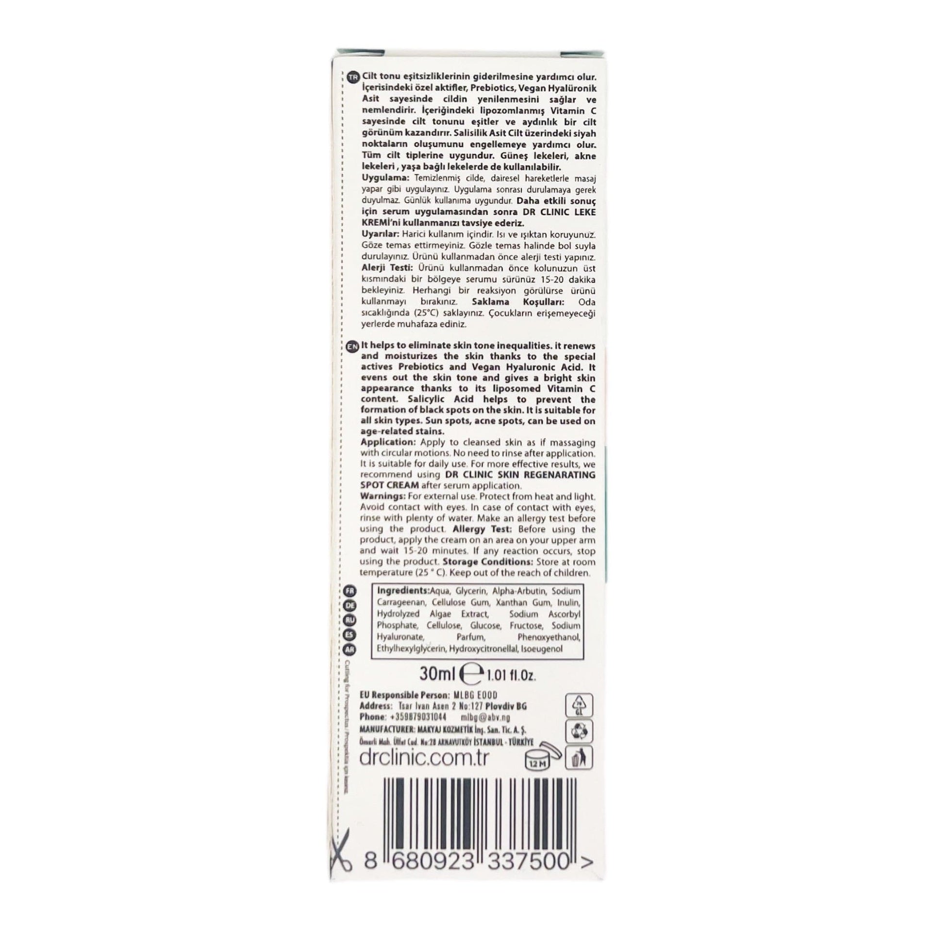 Uncover the secret to a flawless complexion with Dr.Clinic Anti-Dark Spot Serum. This premium serum is formulated to diminish the appearance of dark spots and uneven skin tone for a radiant, youthful glow. The concentrated formula penetrates deep to correct discolouration while preserving the skin's natural beauty.