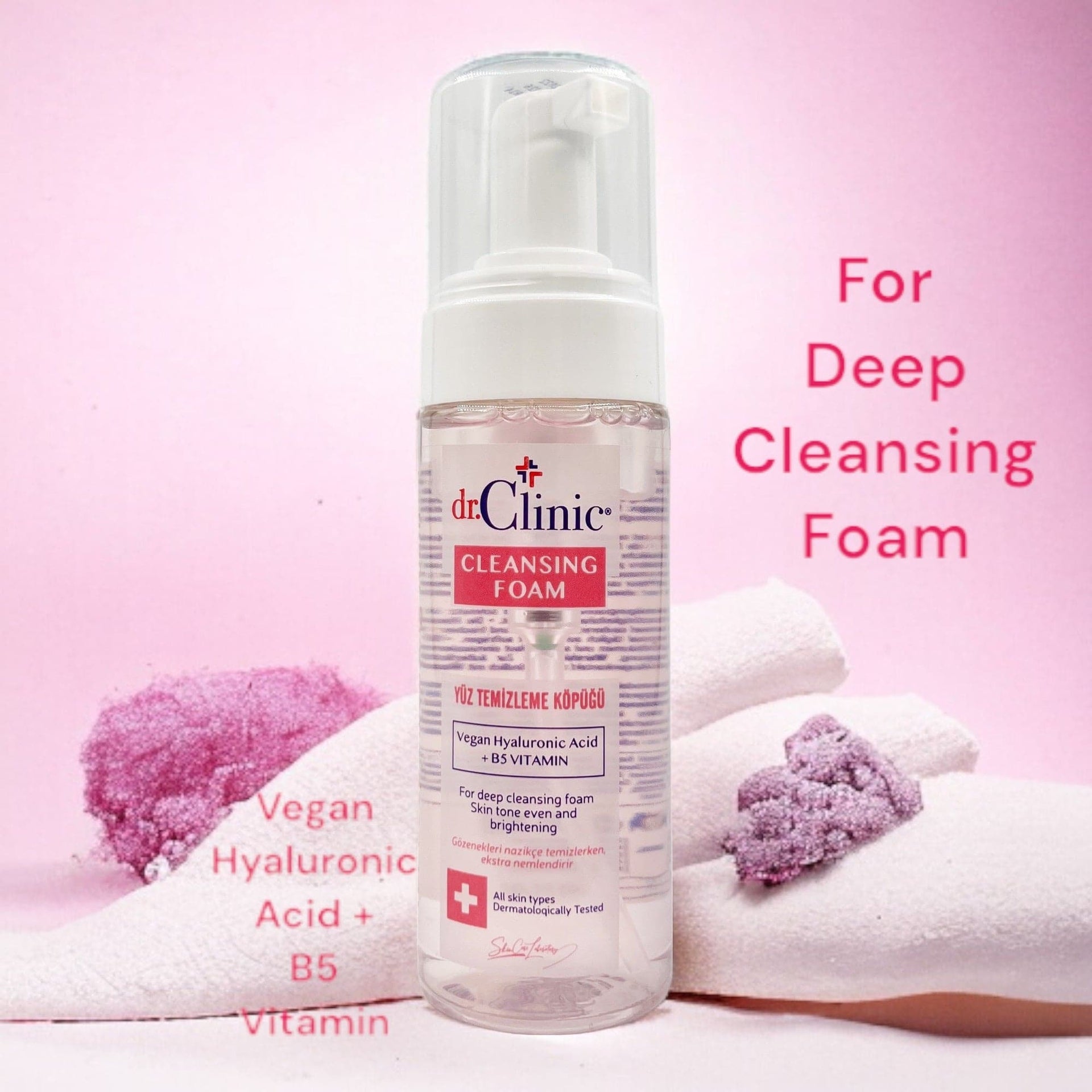 Dr.Clinic Cleansing Foam is 100% vegetarian and formulated without any ingredients of animal origin. Free from common allergens, it is designed to be gentle on the skin, reducing the risk of allergic reactions.