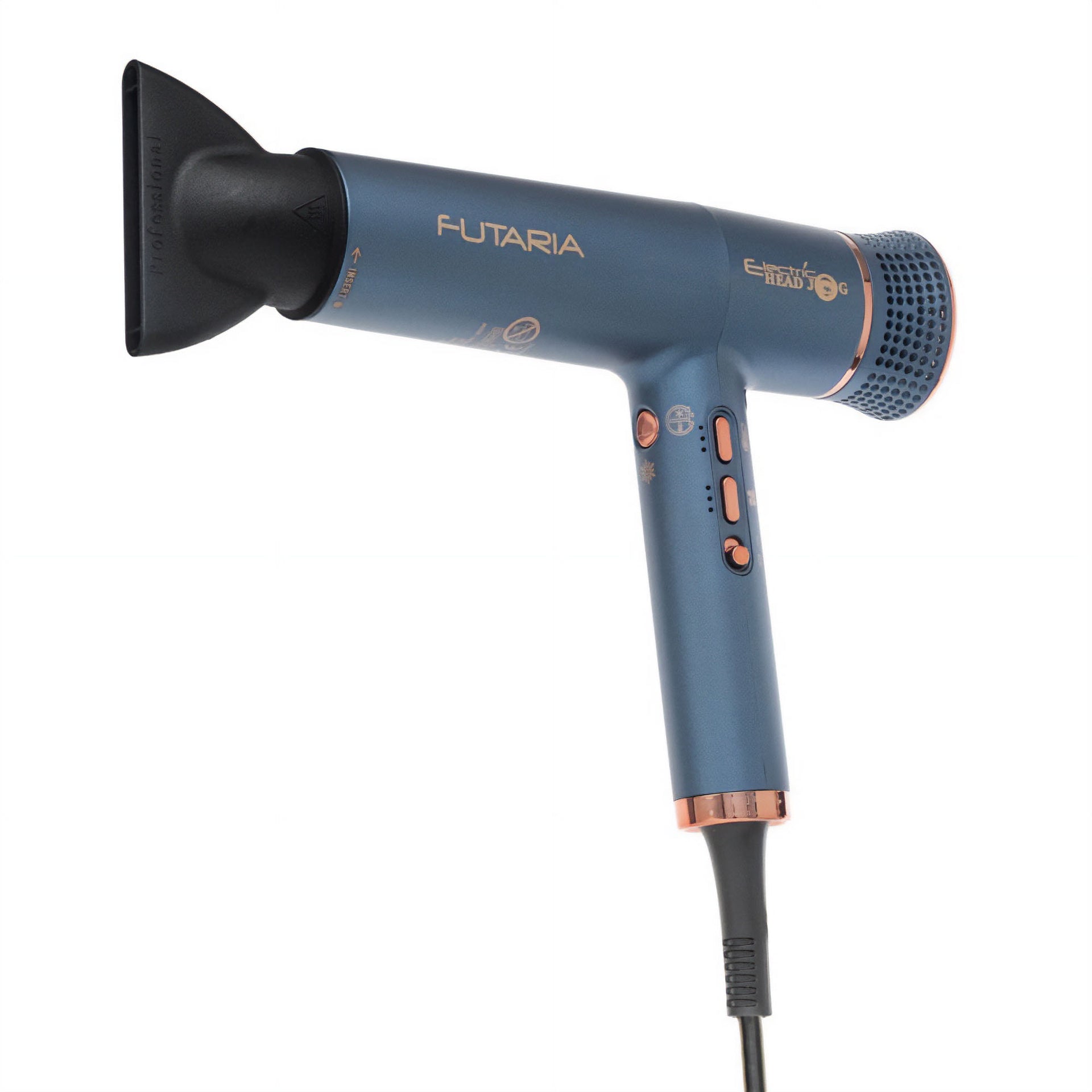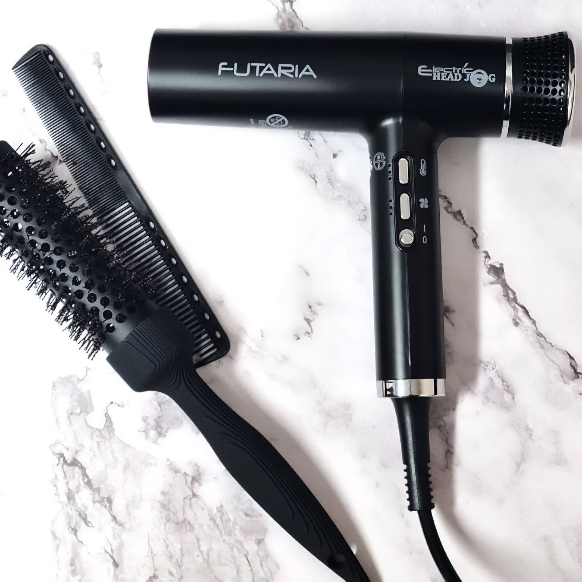 Designed with versatility in mind, the Electric Head Jog Futaria Hair Dryer offers three speed and temperature settings, alongside a cold shot button, to cater to every styling need. The easy-to-clean dual rear filter ensures consistent performance, prolonging the life of the dryer while maintaining optimal airflow. Supplied with two nozzles and a diffuser attachment, this dryer is perfectly equipped to handle a variety of hair types and styling techniques. Available in sleek Black, Twilight, and Dusk colour options, this dryer not only performs exceptionally but also adds a touch of style to any salon environment. A must-have for any professional stylist, the Futaria Hair Dryer is the ultimate blend of power, efficiency, and elegance.