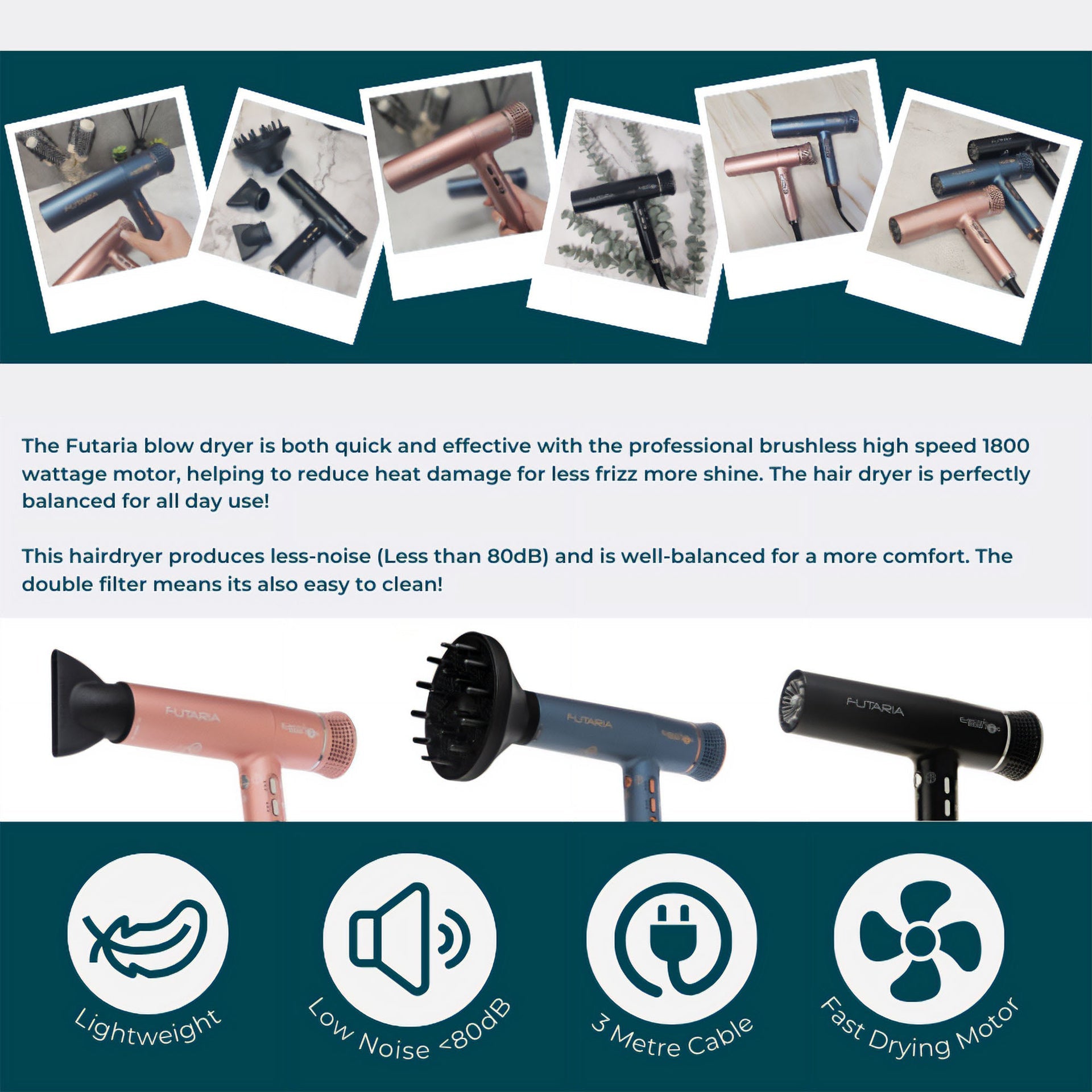 The Electric Head Jog Futaria Hair Dryer 1800W is a state-of-the-art professional tool designed to elevate your hair styling experience. Built to meet the rigorous demands of busy salons, this dryer combines exceptional power with advanced technology, ensuring fast and efficient drying every time. The 1800 Watt output, coupled with a high-performance 104,000 RPM brushless motor, delivers rapid drying without compromising on comfort. Operating at a noise level of less than 80dB, the Futaria allows stylists to maintain clear communication with clients while reducing fatigue during extended use. Its lightweight design further enhances ease of use, allowing for effortless styling even during the busiest of days.