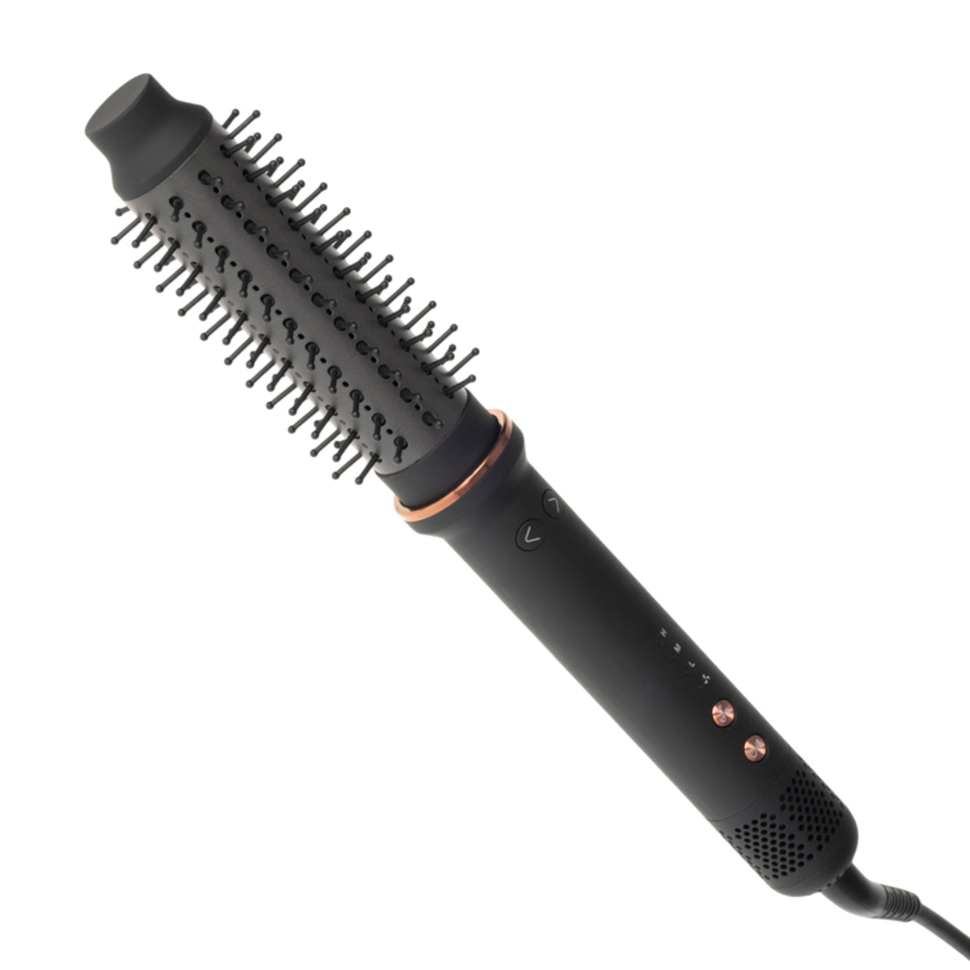 Select desired temperature, rotation, and airflow settings. Take sections of dry hair and wrap around the barrel, or guide the brush through hair, allowing the heat and optional rotation/airflow to style.