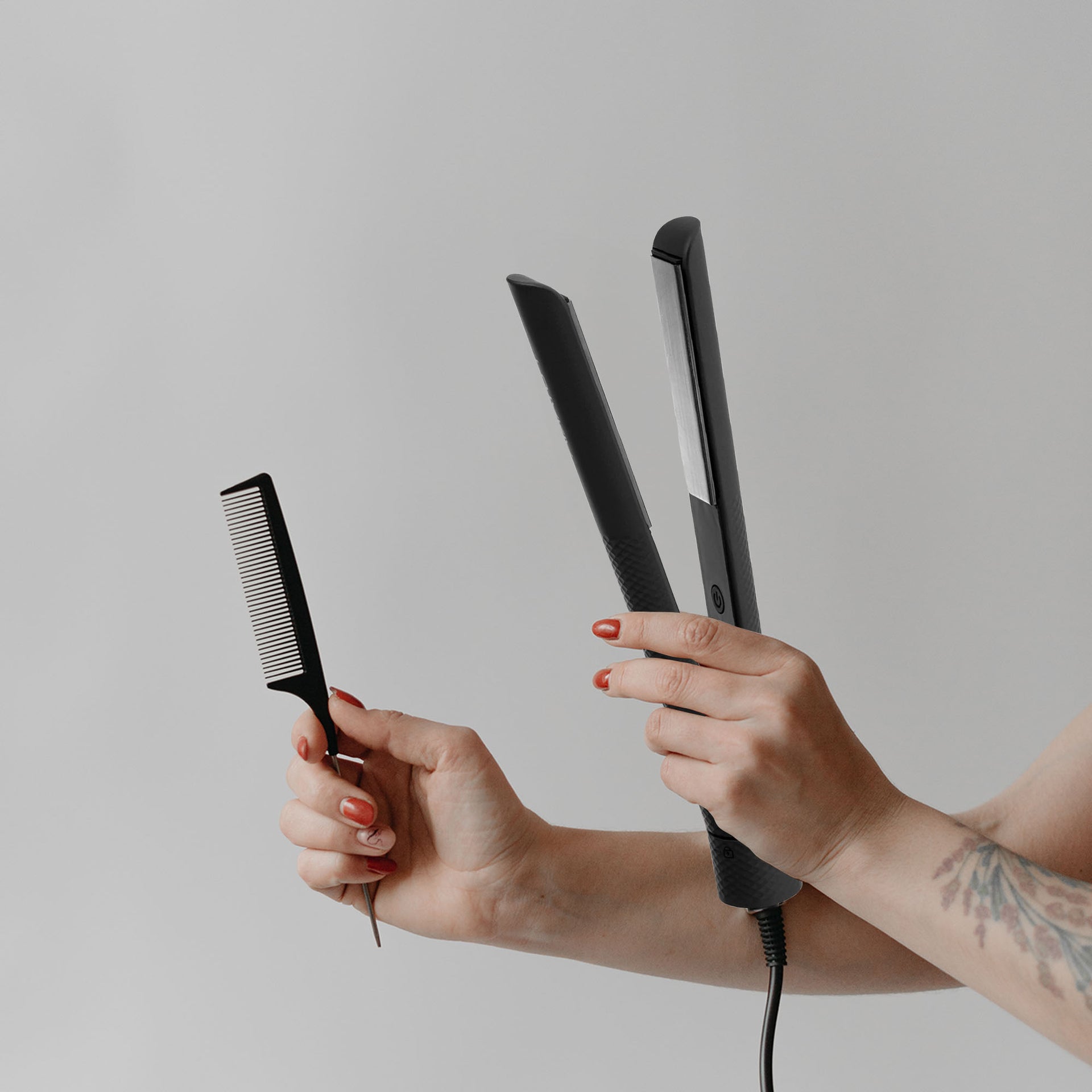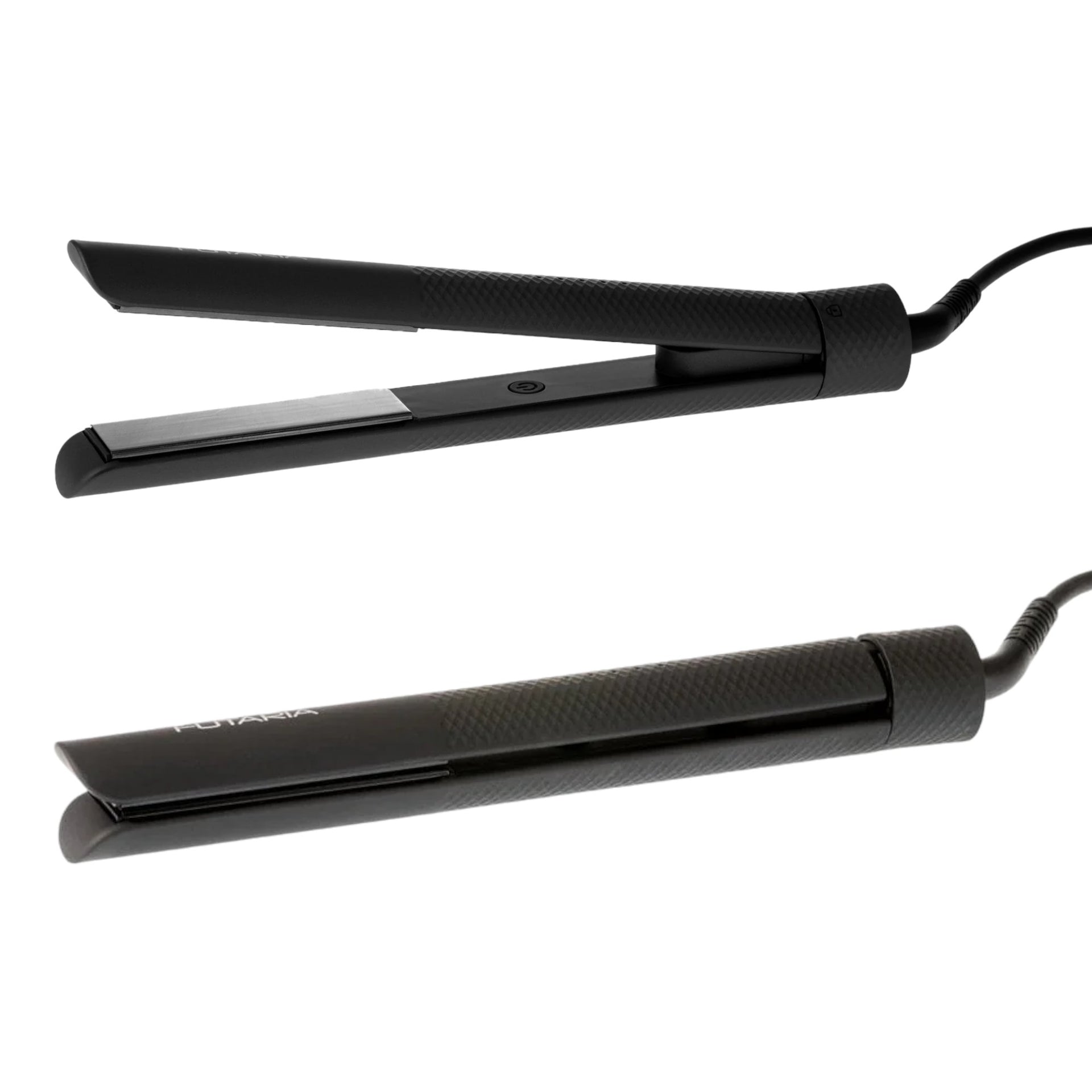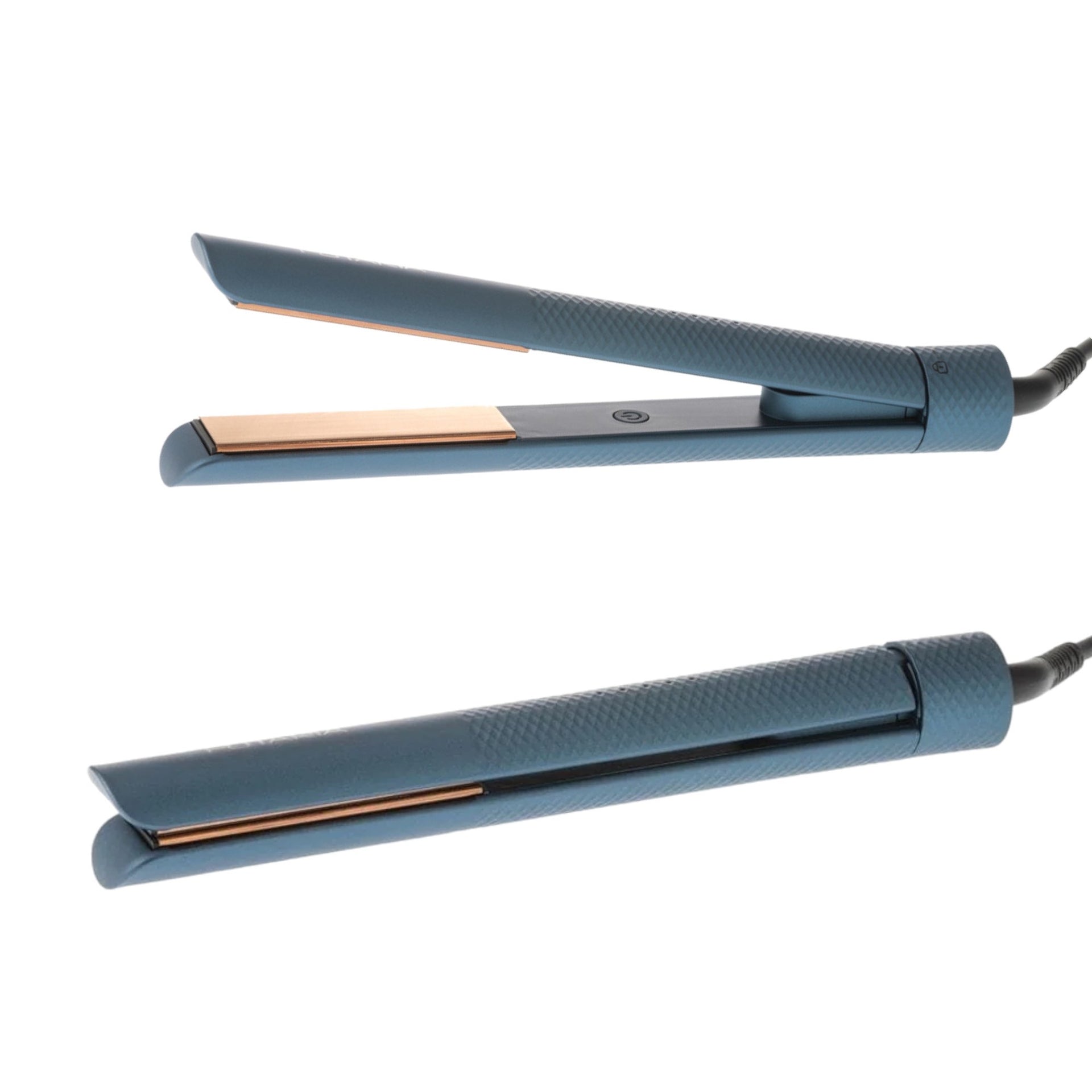 - Rounded plate edges for versatile styling, including curling.