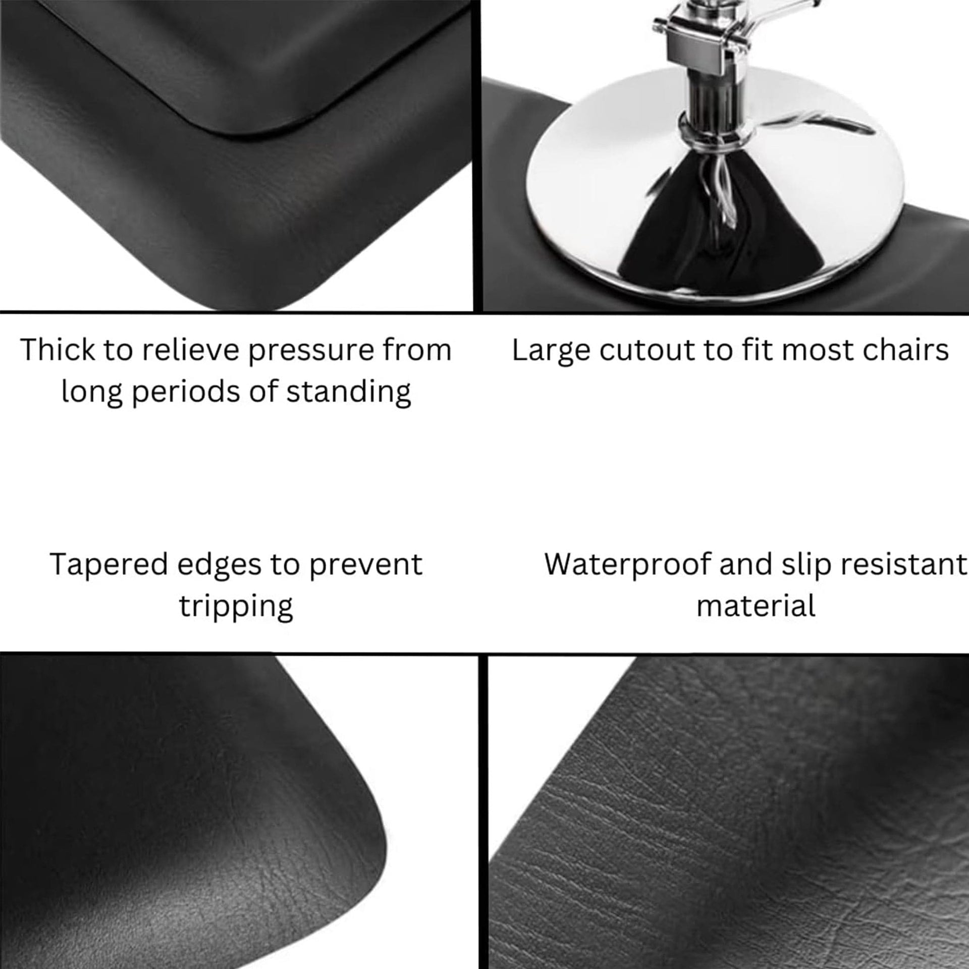 The Salon Ergonomic Collection demonstrates exceptional attention to professional needs with its specially formulated non-slip base and easy-clean surface. Each variant features a bevelled edge design that eliminates tripping hazards while maintaining a seamless transition from floor to mat. The commercial-grade construction ensures longevity in high-traffic salon environments, whilst the sophisticated black finish maintains a professional appearance. Whether positioned around styling chairs or in cutting stations, these mats deliver consistent comfort and support throughout demanding working days. Transform your workspace with professional-grade comfort and style.