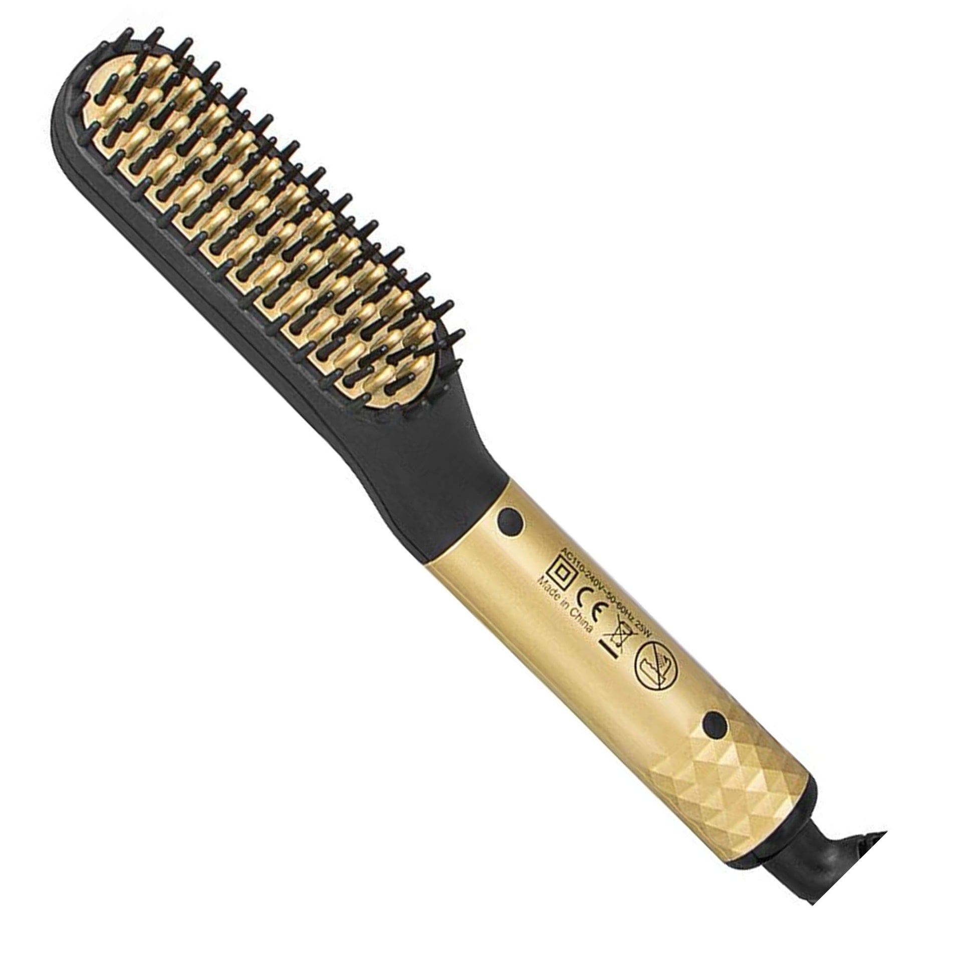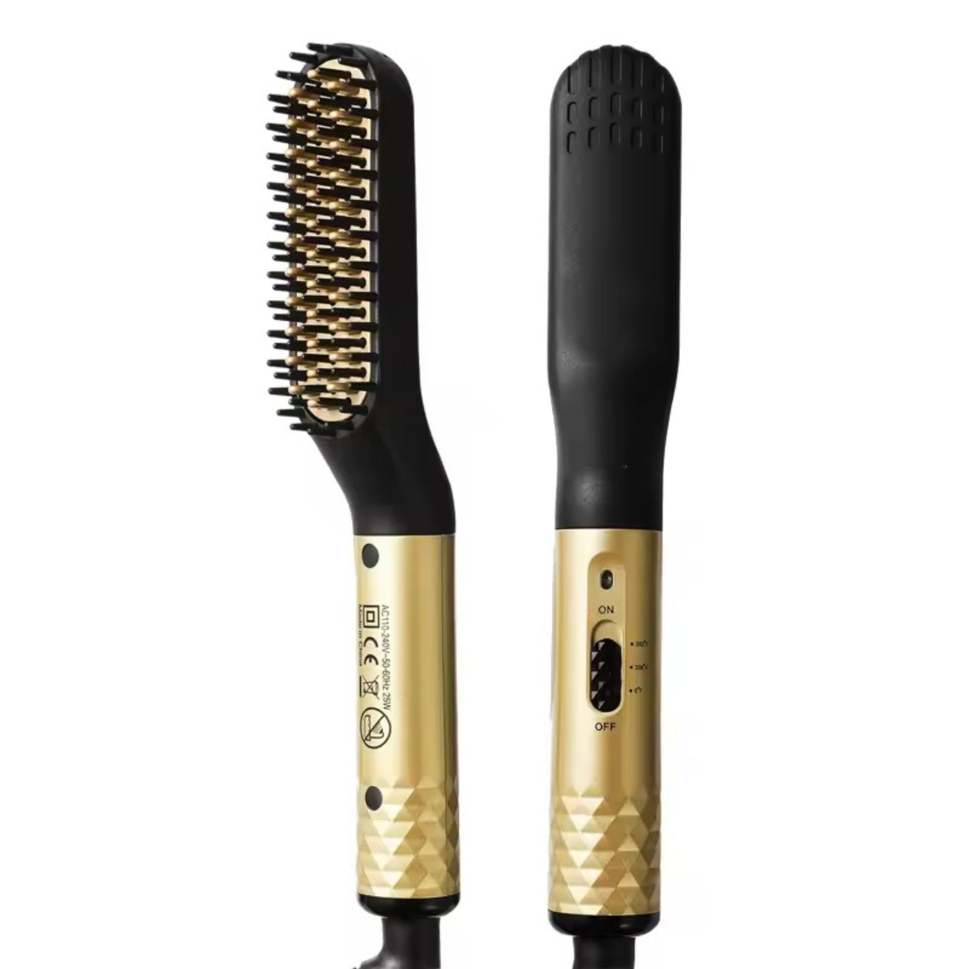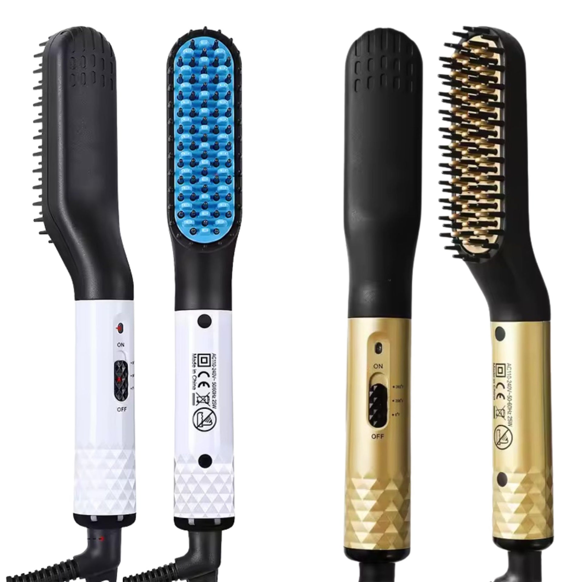 The Professional Heated Comb sets a new standard in men's grooming with its ergonomic design and sophisticated temperature control system. The Ionic Styling Tool features revolutionary heat-barrier bristles that glide effortlessly through hair whilst protecting the skin, making it ideal for precise beard styling and hair grooming. Available in elegant white or luxurious gold finishes, this versatile tool delivers salon-quality results in minutes, with styles that last throughout the day. Transform your daily grooming routine with this professional-grade styling innovation.