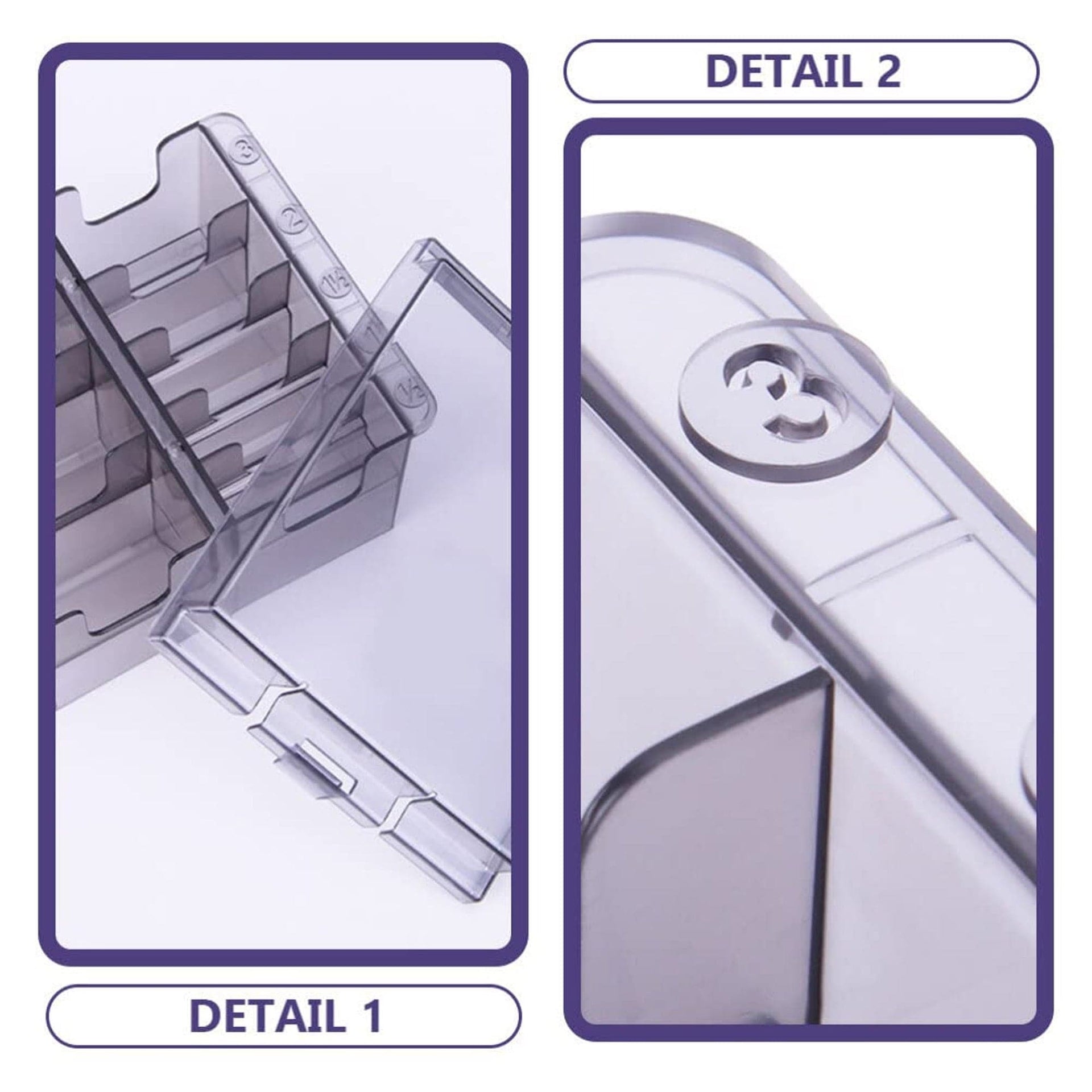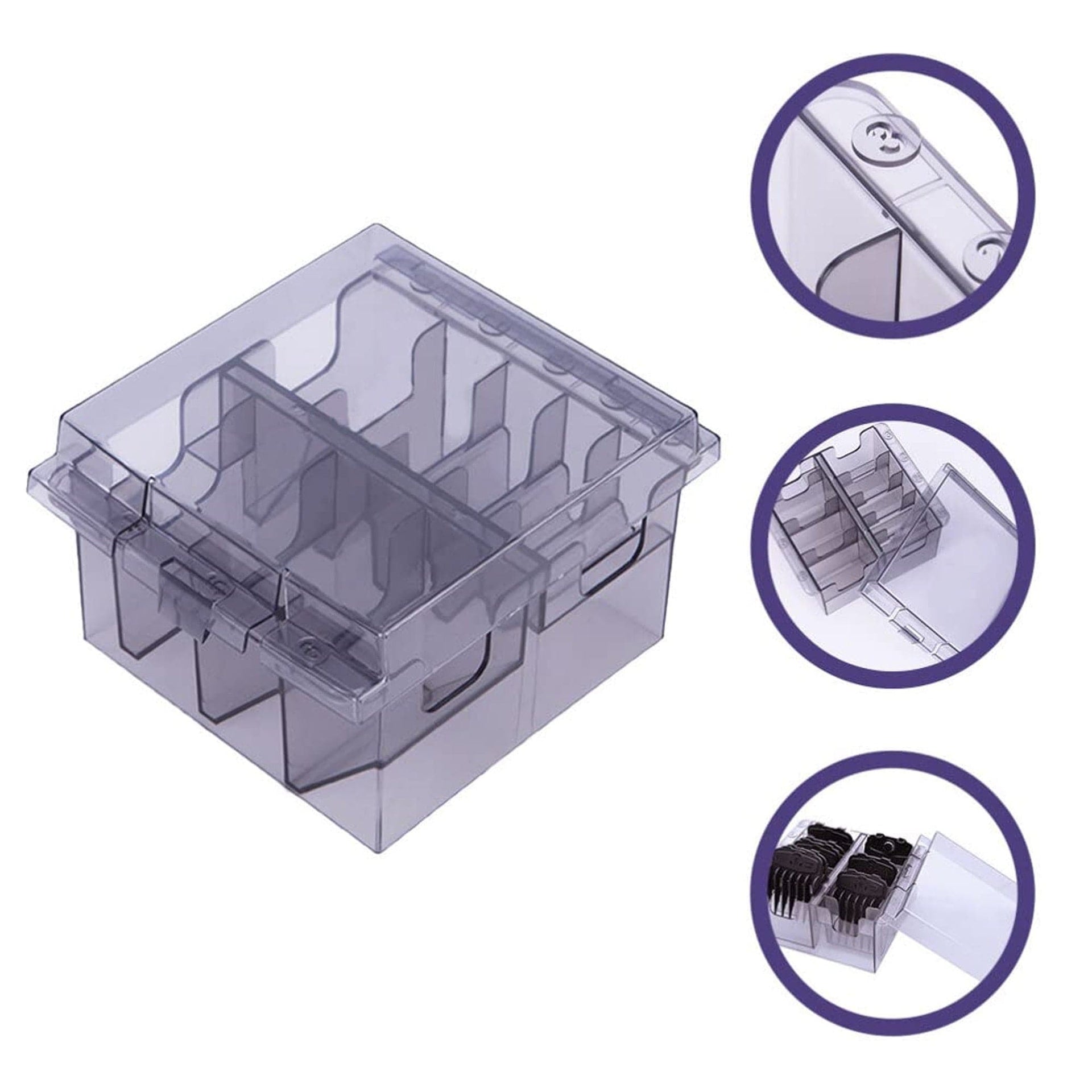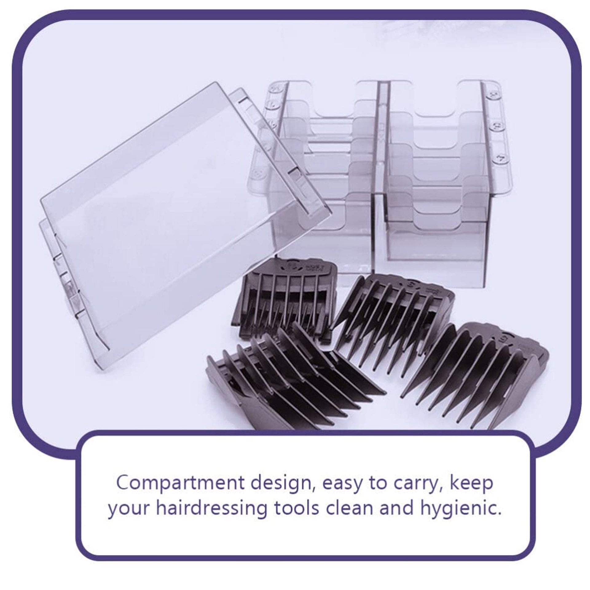 Experience unparalleled organisation and efficiency with the Eson - Clipper Attachments Holder Storage Box. This sturdy and compact organiser ensures that your clipper attachments are always ready to hand, securely stored in their own precisely shaped and labelled slots. The clever design is ideal for professionals on the move, providing a space-saving solution for effortlessly managing your essential tools and improving your workflow. This is an essential item for keeping your most-used accessories safe and tidy.
