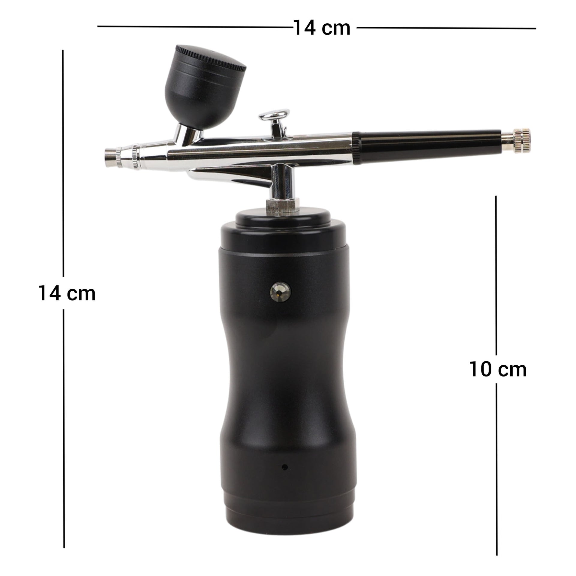 The Eson - Cordless Airbrush Kit Portable Mini Airbrush Gun with Compressor Black delivers professional-grade airbrushing freedom without the restriction of air hoses or power cords. This innovative all-in-one solution combines a precision dual-action airbrush with an integrated rechargeable compressor, featuring three adjustable pressure levels (18psi, 25psi, and 30psi) to accommodate various application needs from fine detailing to broader coverage. Crafted from premium aluminium alloy with a sleek black finish, this durable tool includes a precise 0.3mm nozzle for fine atomisation and excellent paint efficiency with minimal overspray. The powerful 900 mAh built-in lithium battery provides approximately 60 minutes of continuous operation per charge, sufficient for completing multiple projects before requiring recharging via the included USB cable. Unlike traditional airbrush setups that require bulky external compressors and mains power, this compact system fits comfortably in the hand and can be used virtually anywhere, from studio environments to outdoor locations, making it perfect for on-site work or demonstrations. The comprehensive kit includes everything needed to begin working immediately, with multiple capacity cups (7ml, 20ml and 40ml) to accommodate different project requirements and fluid volumes.