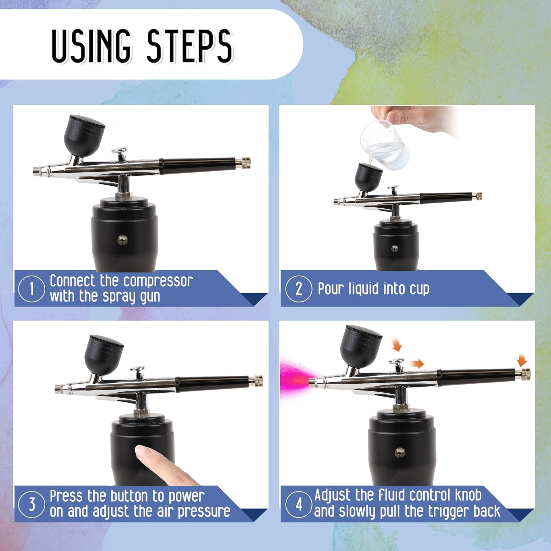 Professional artists, cake decorators, makeup artists, model makers, tattoo artists and hobbyists requiring a portable airbrushing solution without compromising on quality. Perfect for both beginners seeking an affordable entry into airbrushing and experienced users needing a mobile secondary system for on-location work.