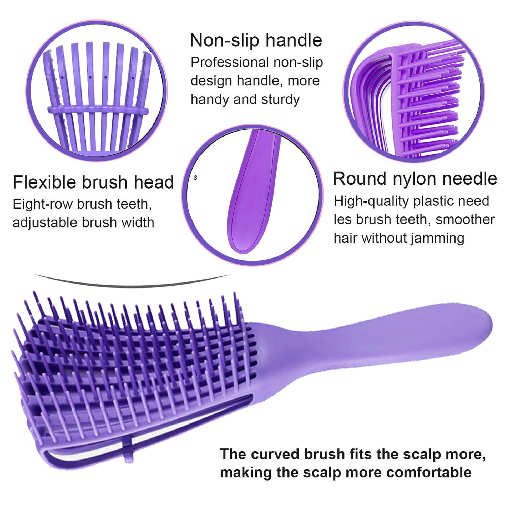 Experience effortless detangling with the Eson Detangler Massage Brush, featuring an innovative flexible head design with eight rows of independent nylon bristles. The Professional Detangling Tool adapts to your hair's natural texture, making it perfect for managing curly, wavy, coily, or thick hair types with minimal tension and maximum comfort. Available in five striking colours (Purple, Black, Blue, Green, Pink), this versatile brush combines functionality with style to enhance your hair care routine.