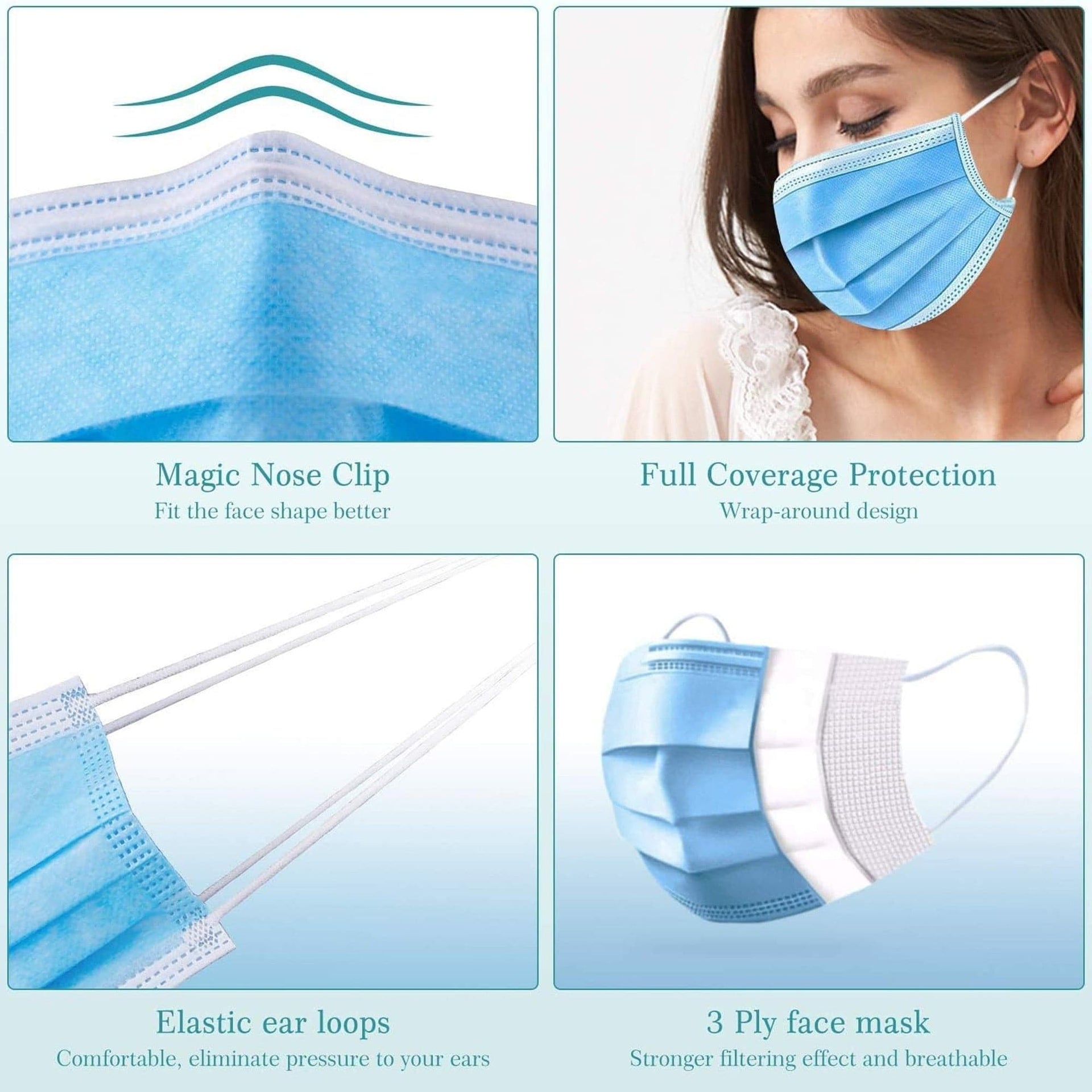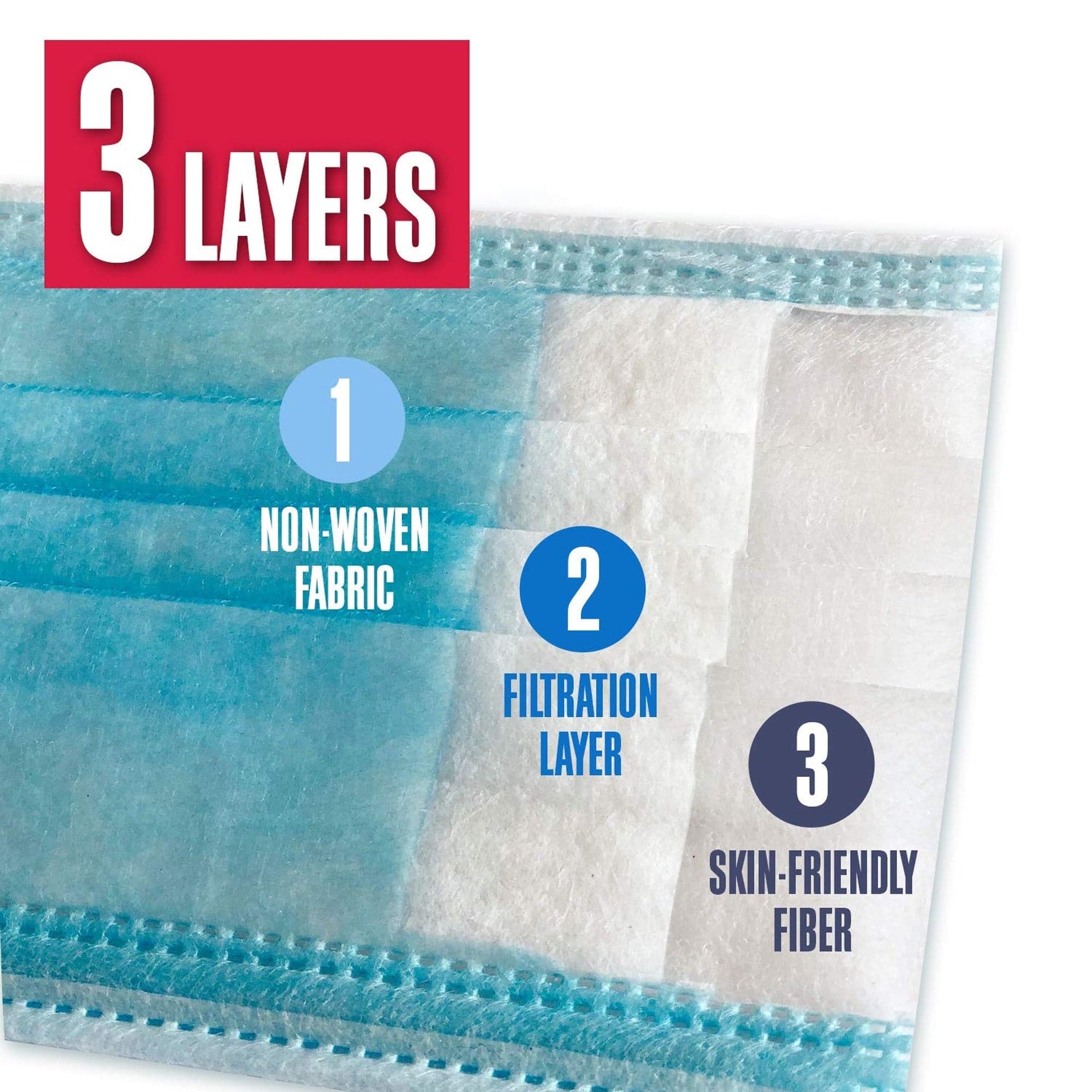 - Material: 3-Ply Non-woven fabric with a melt-blown filter layer