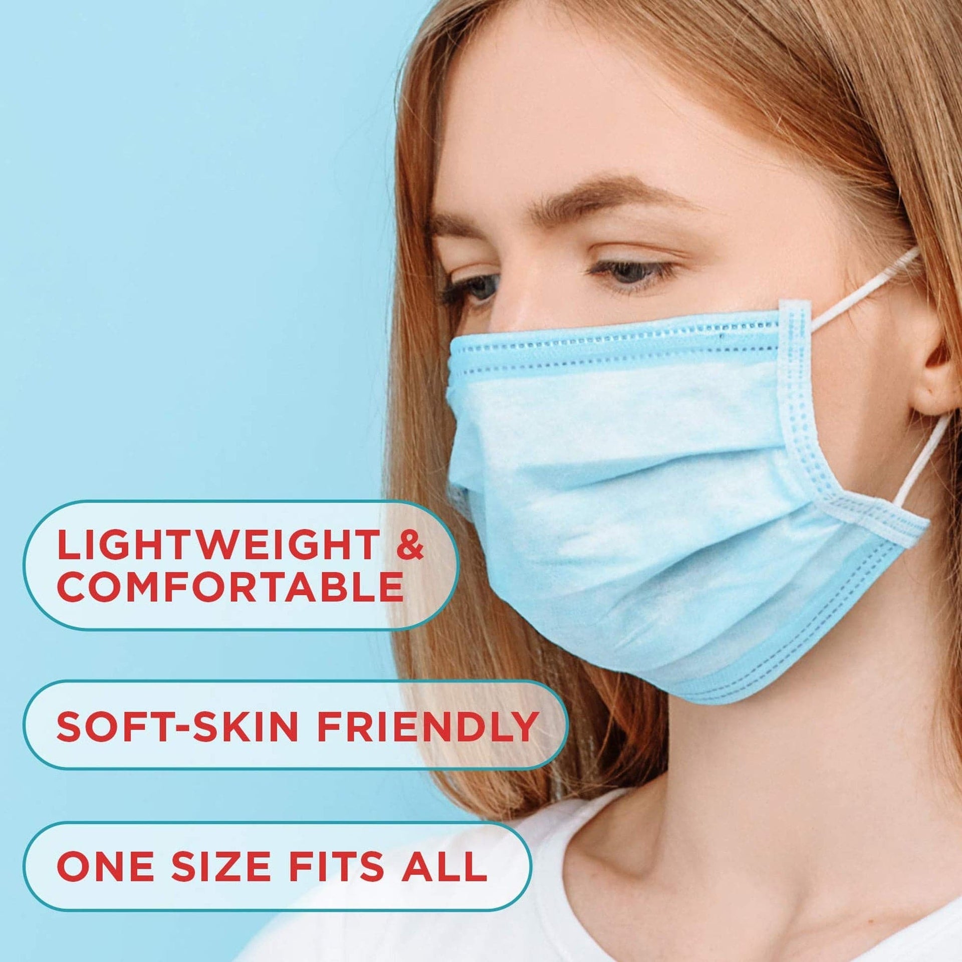 - The soft, stretchy ear loops are designed to increase comfort during extended wear.