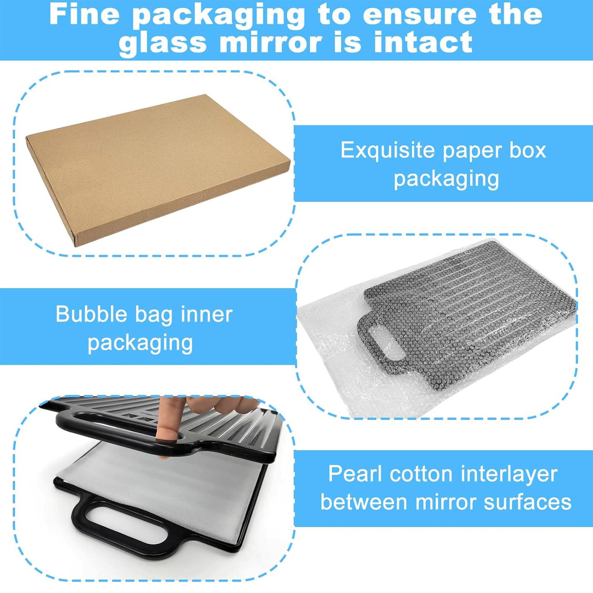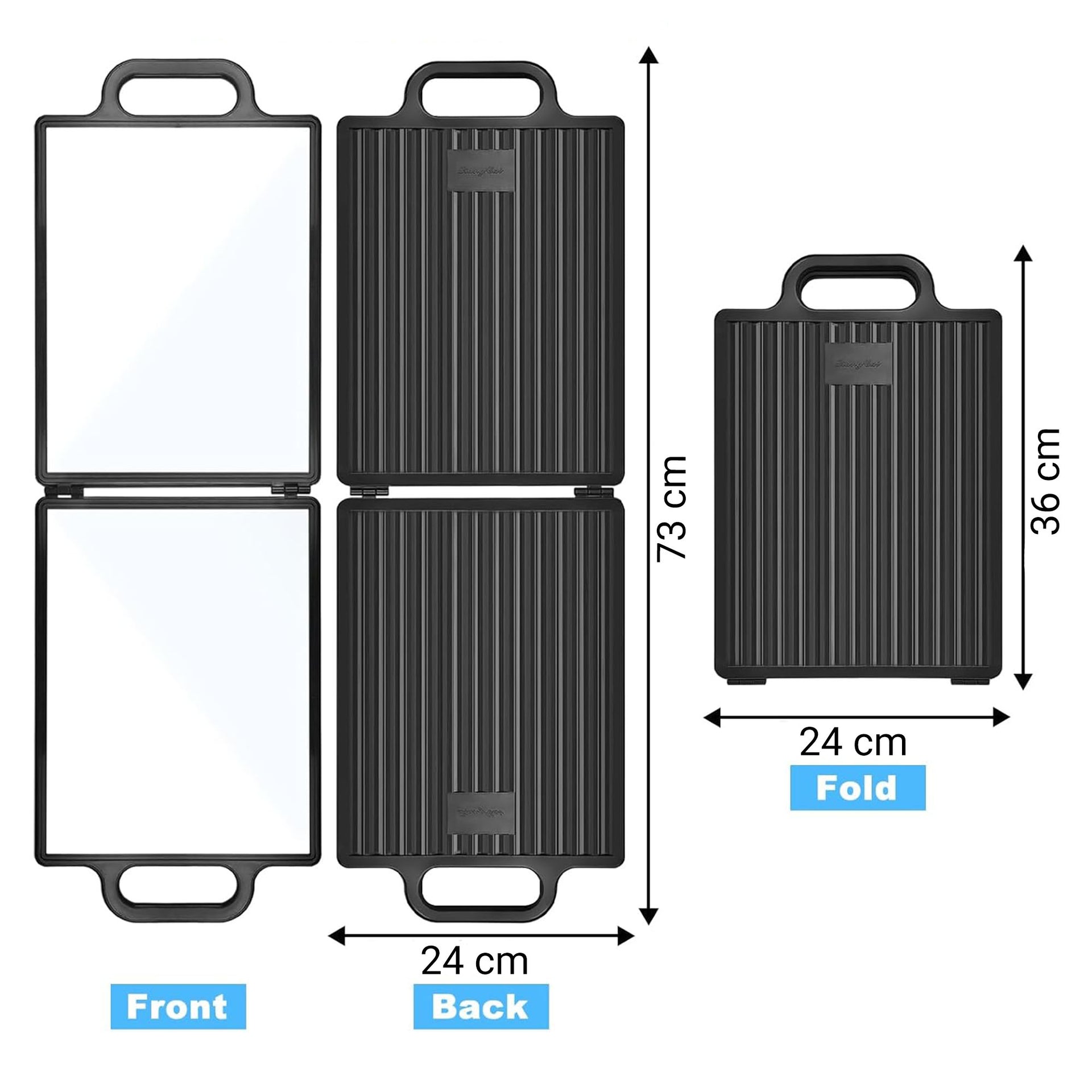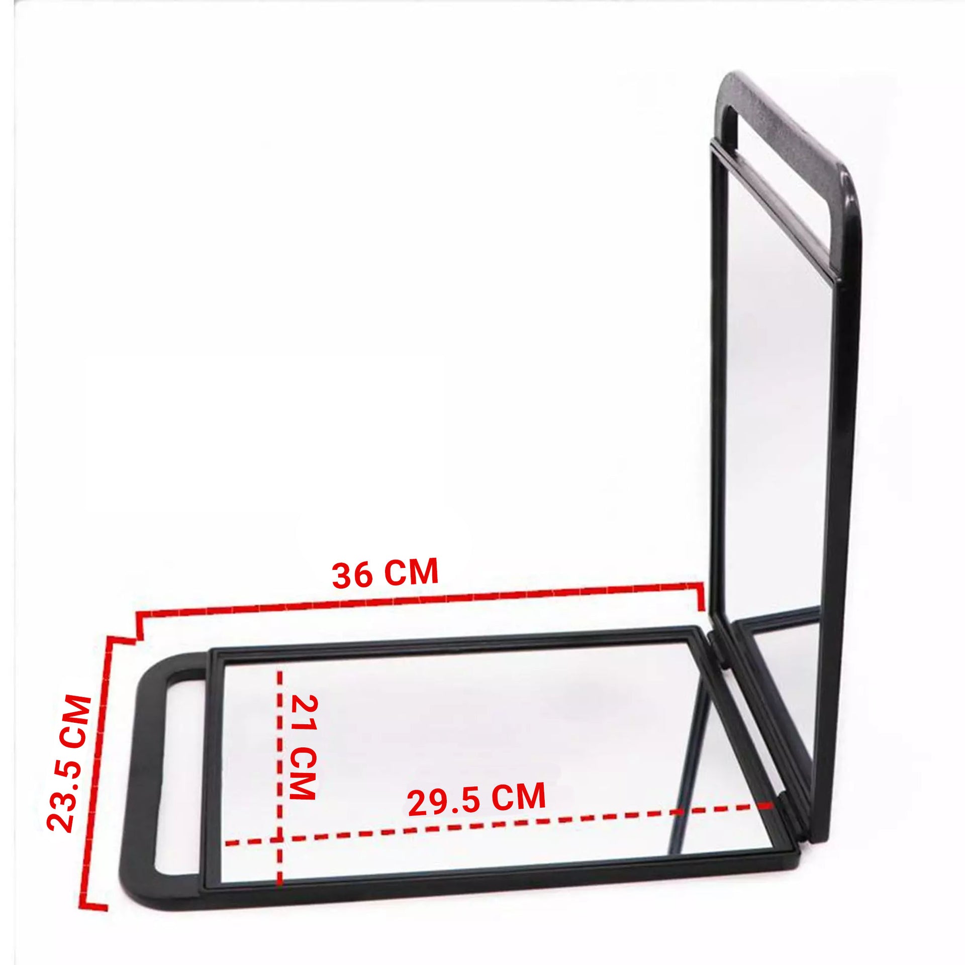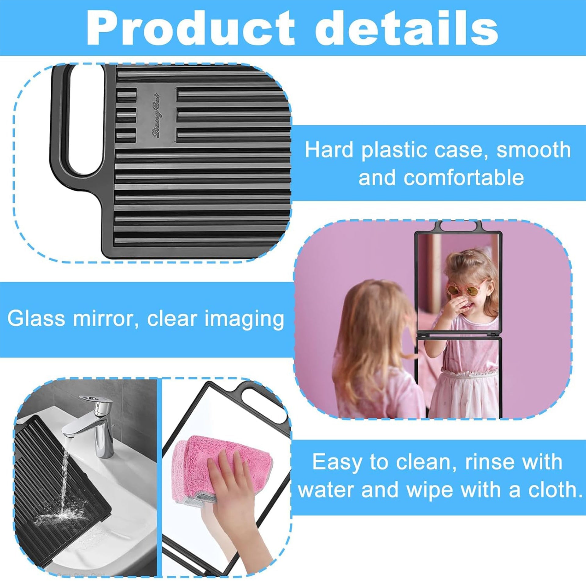Unfold mirror completely before use, grip firmly using designated handle, and angle as needed for optimal viewing. Fold carefully after use for storage.